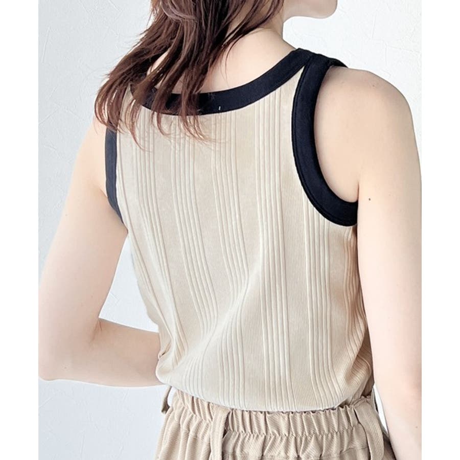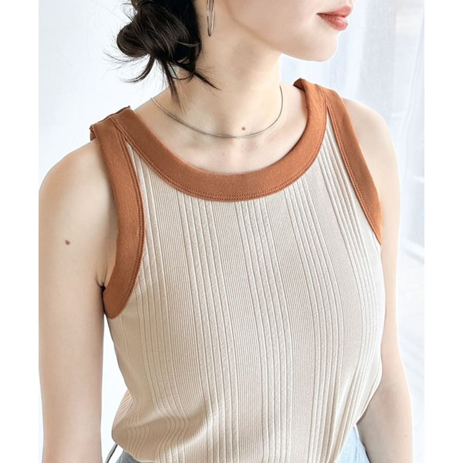 オーガニックコットン製の、配色ランダムリブのアメスリタンクトップ。