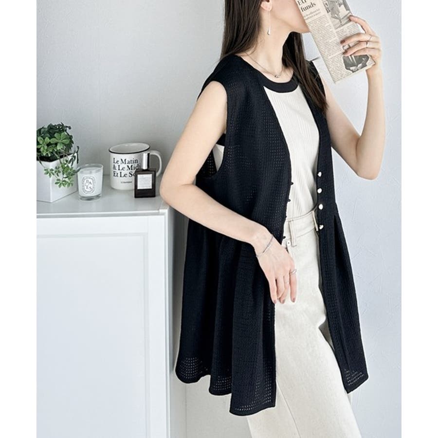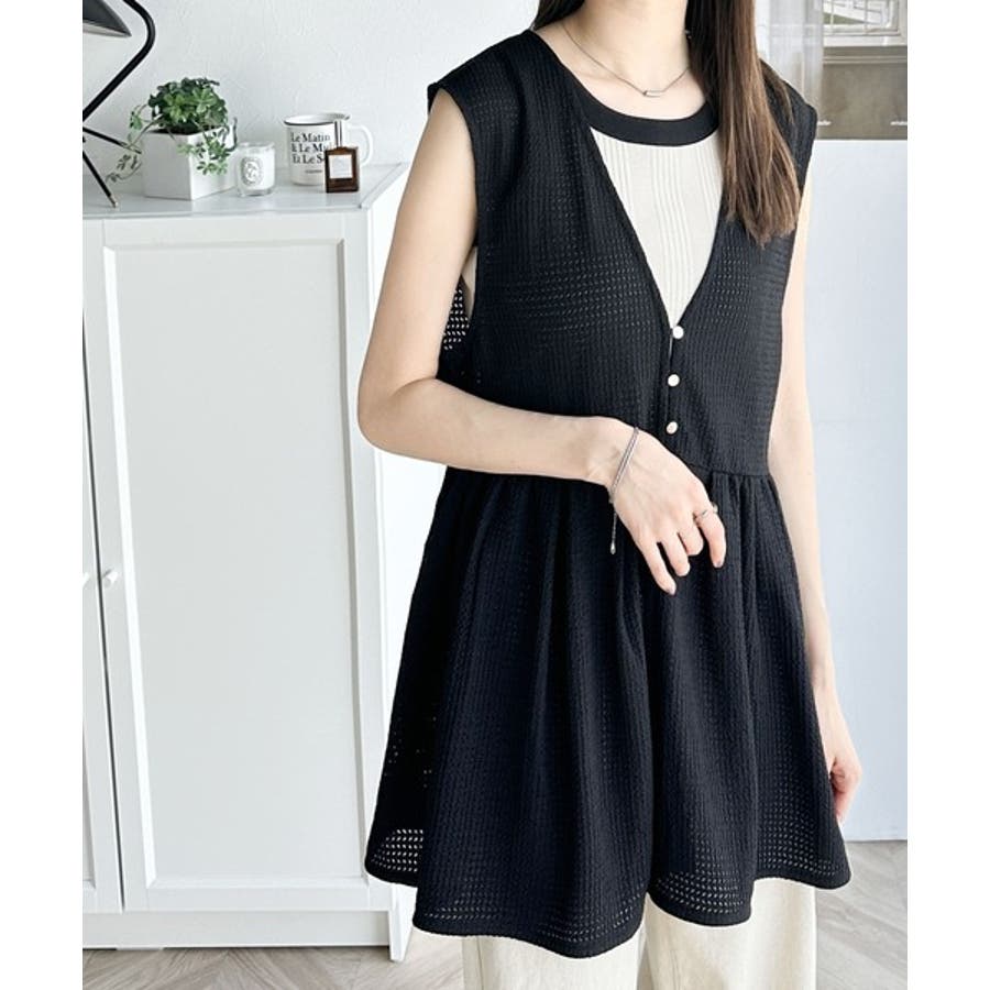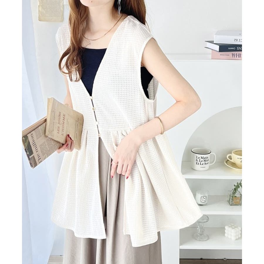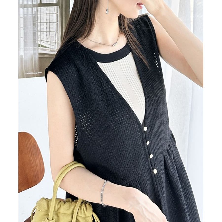 前後着用可能でトップスとしてはもちろん、ベストとして羽織っても◎