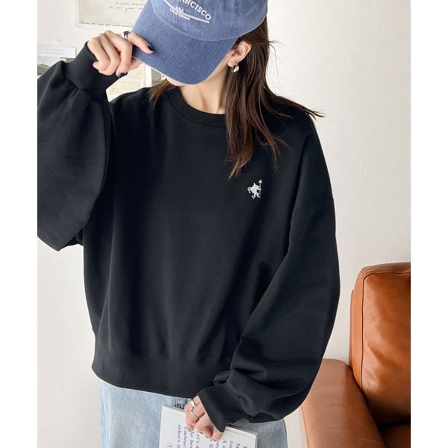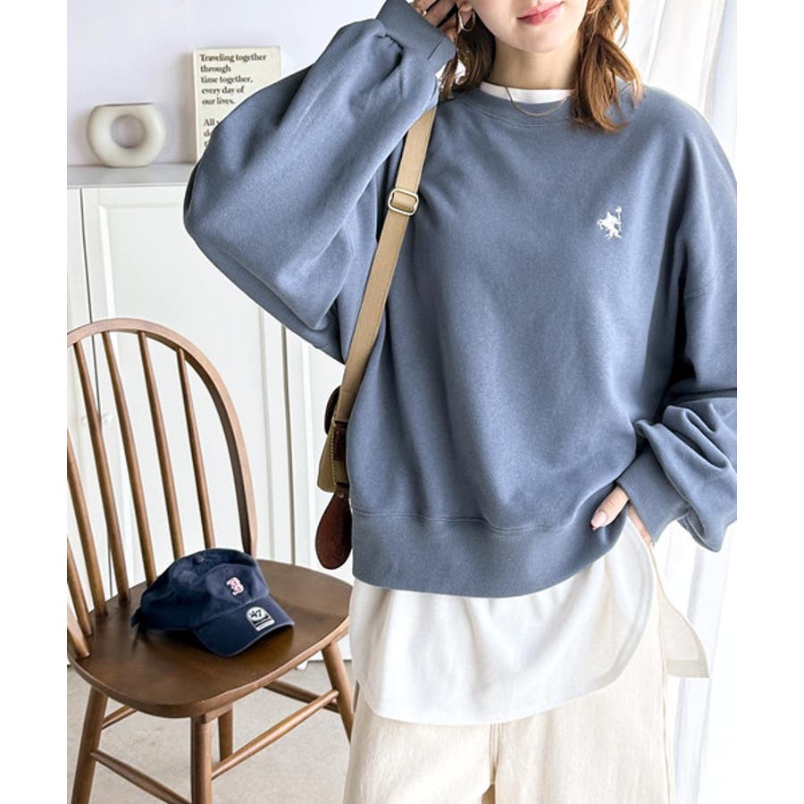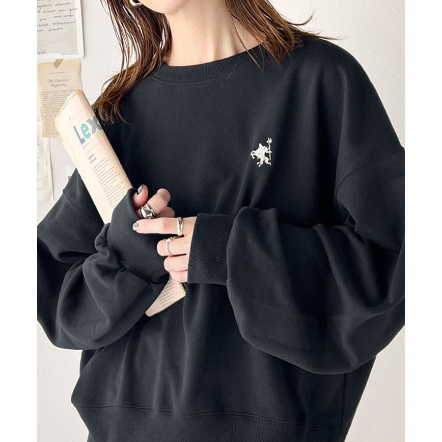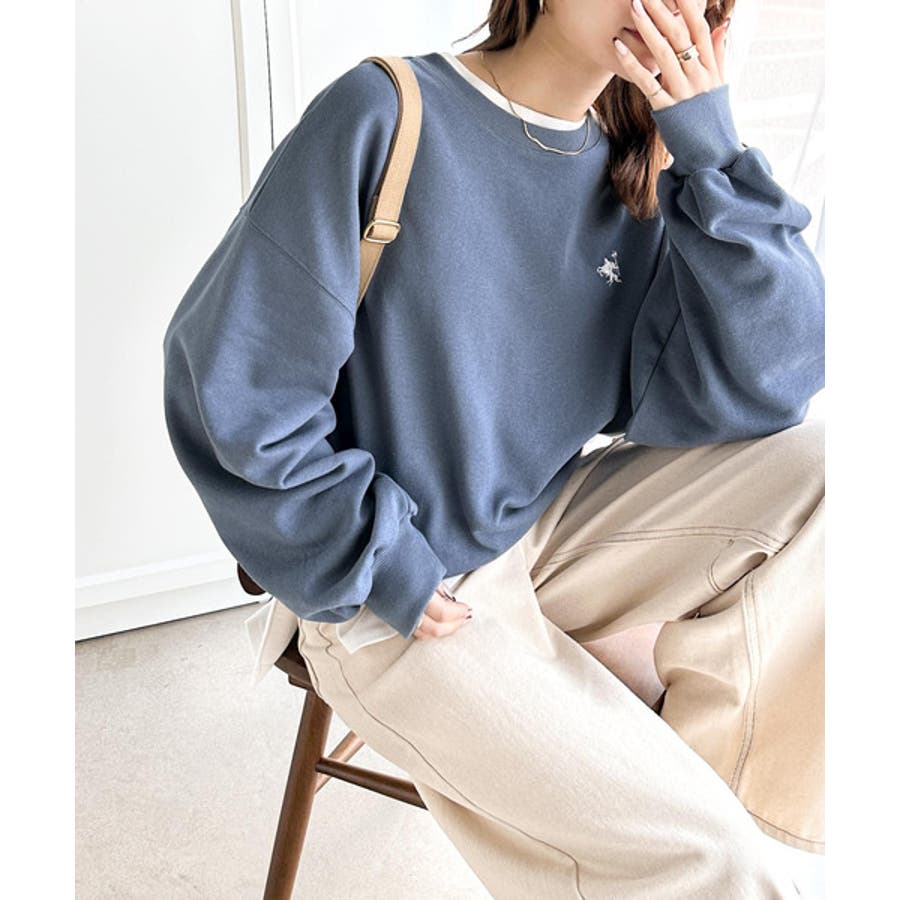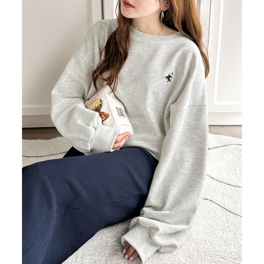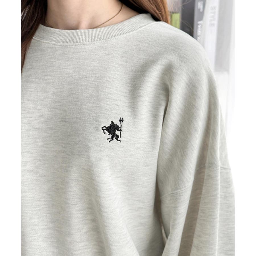 バランスの良いシルエットが旬なスタイリングを演出する胸刺繍入りスウェット。