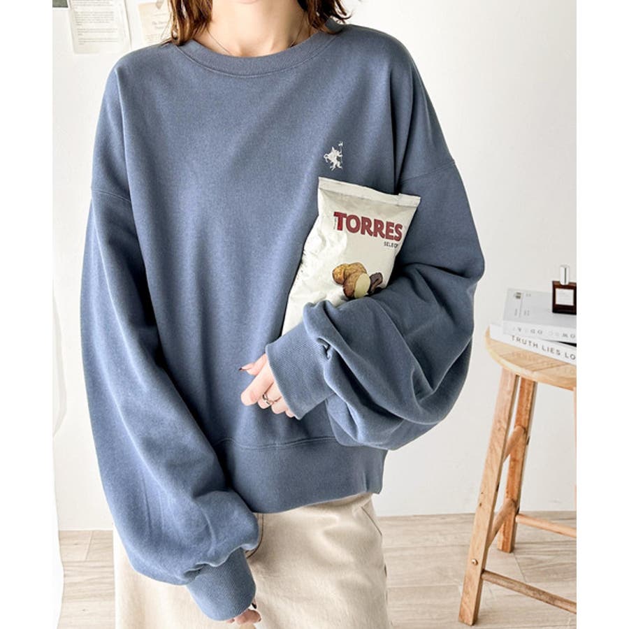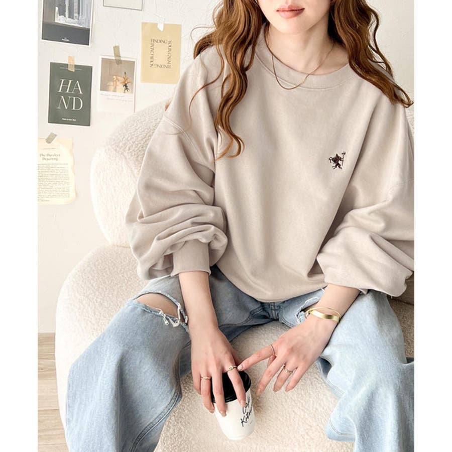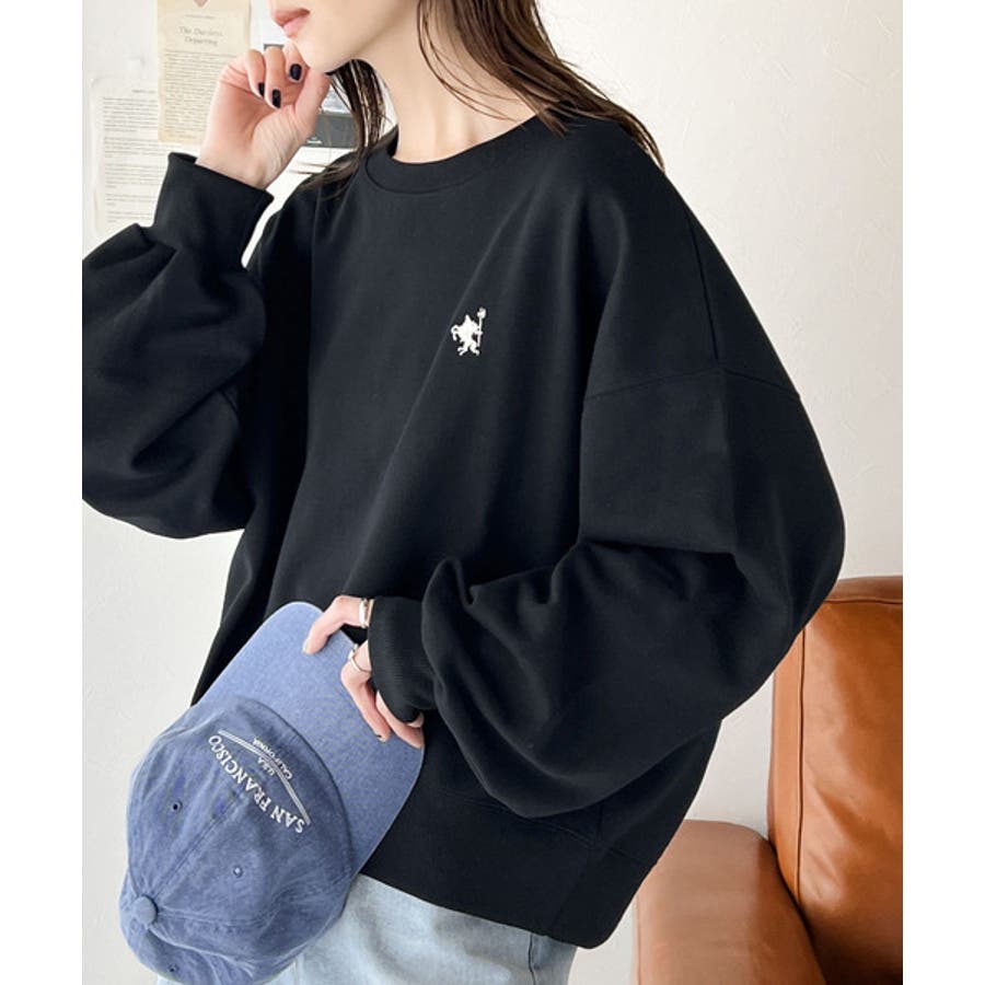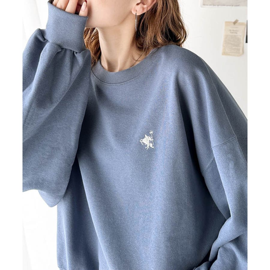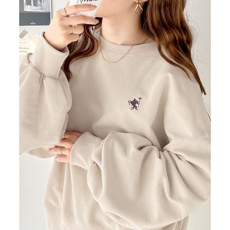 バランスの良いシルエットが旬なスタイリングを演出する胸刺繍入りスウェット。