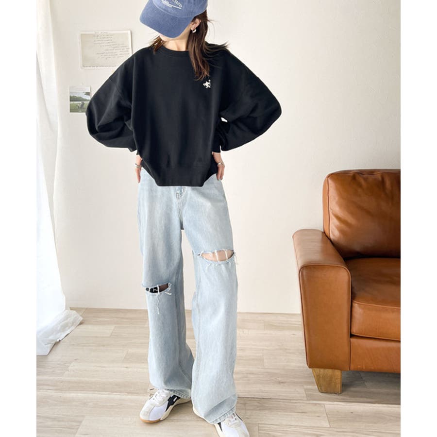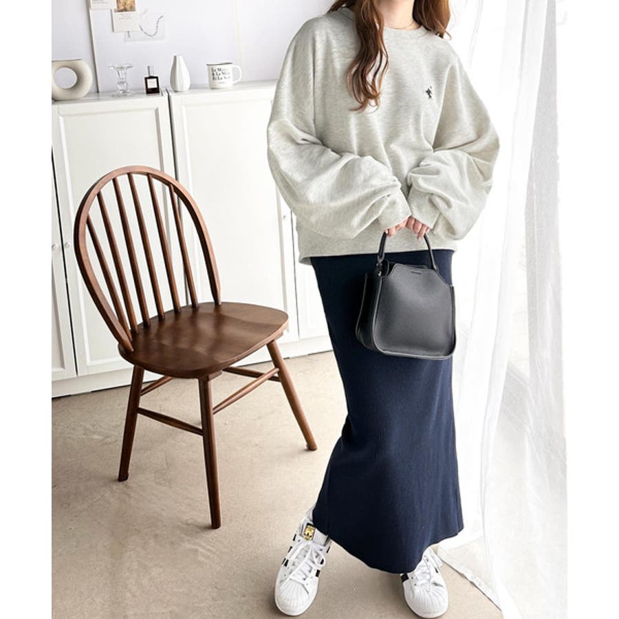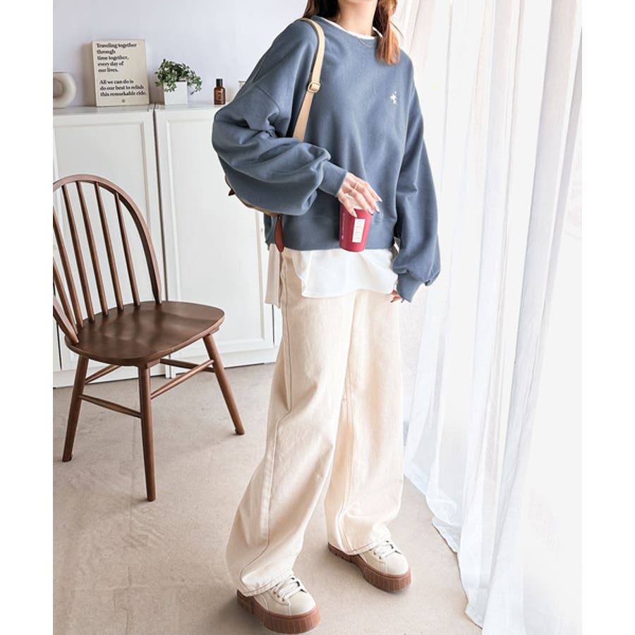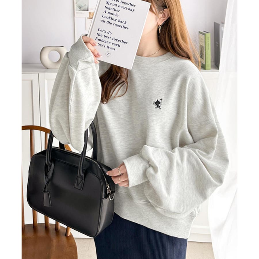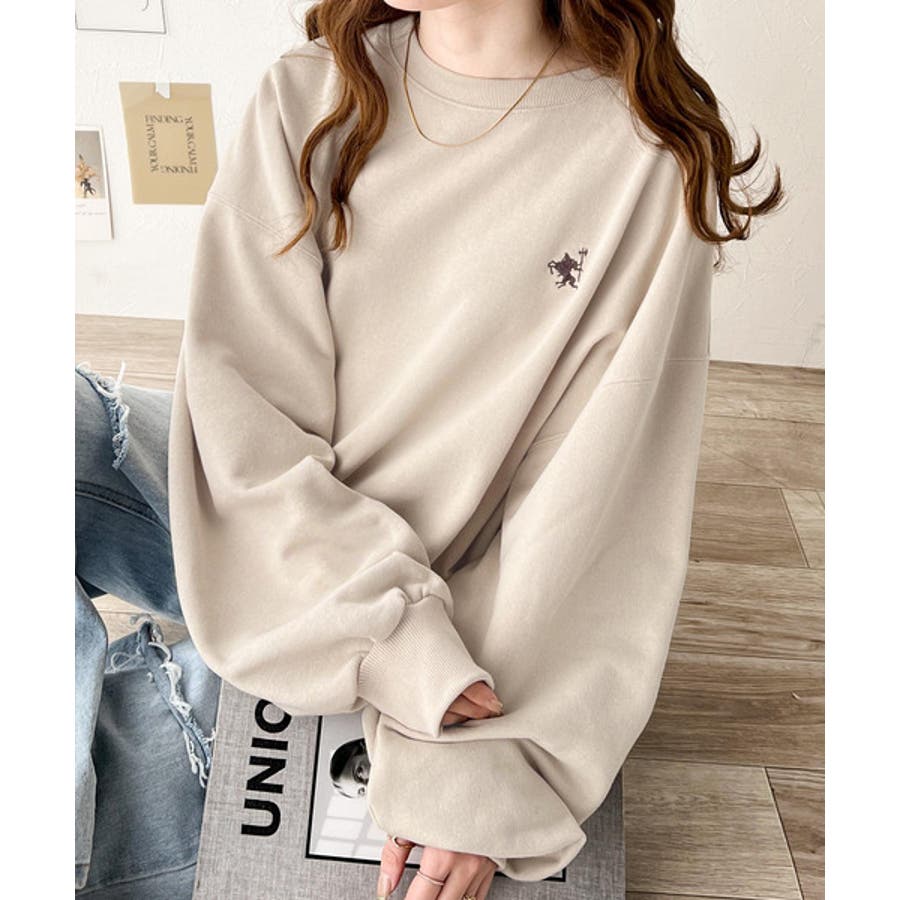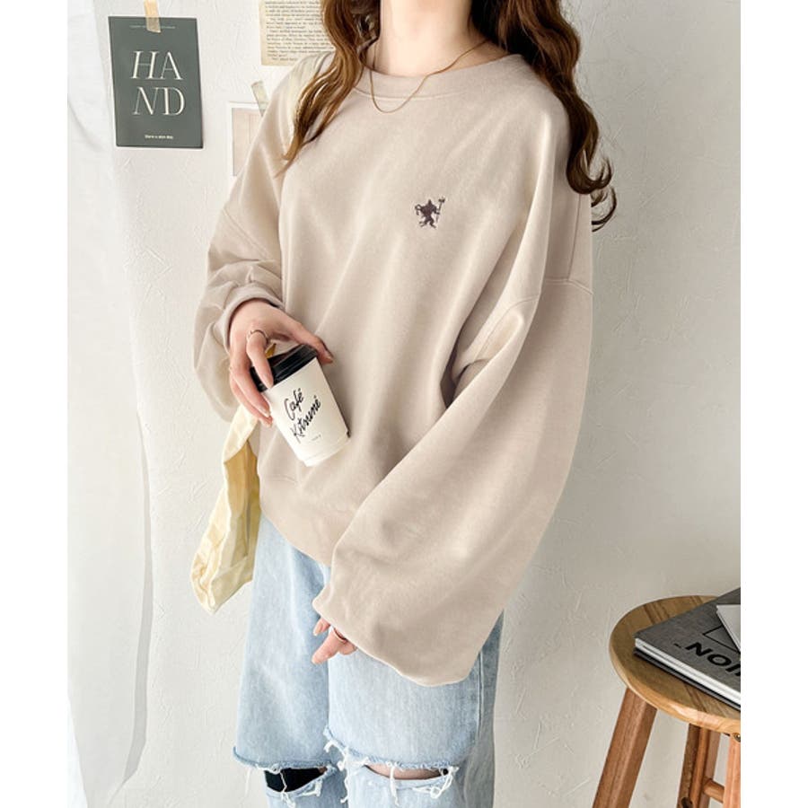 バランスの良いシルエットが旬なスタイリングを演出する胸刺繍入りスウェット。