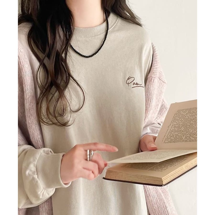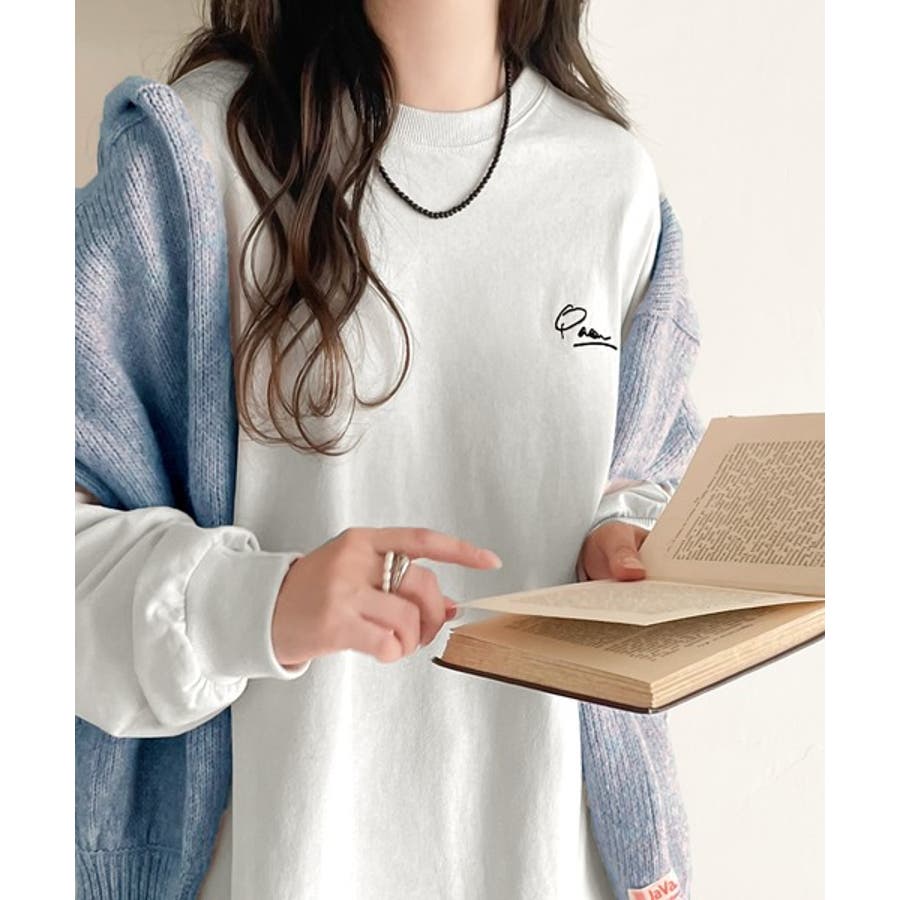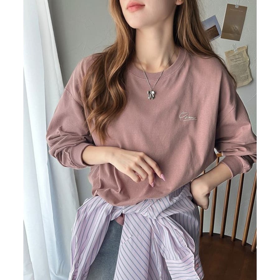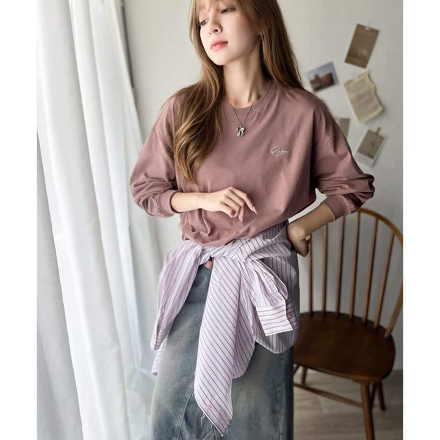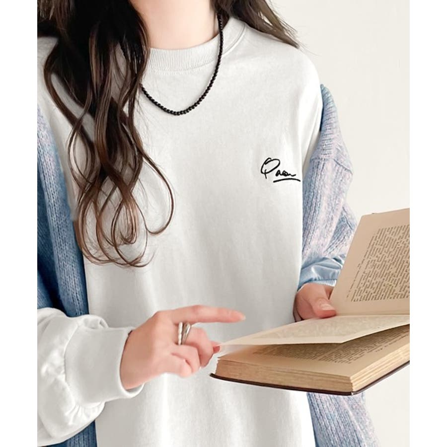 シンプルカジュアルを格上げ。綿100%ワンポイント胸刺繍シンプルロンTee