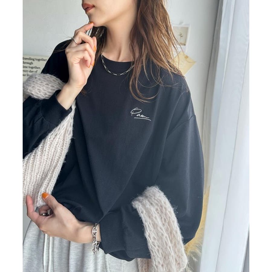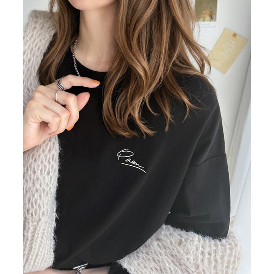 左胸のワンポイント刺繍がコーデのアクセントに。