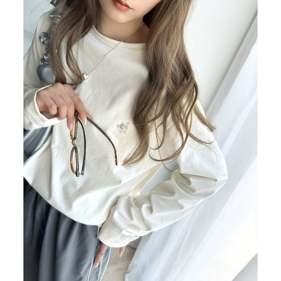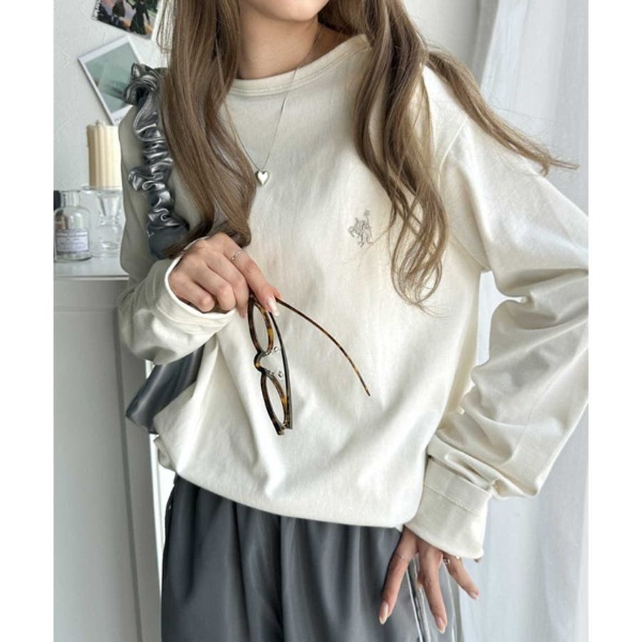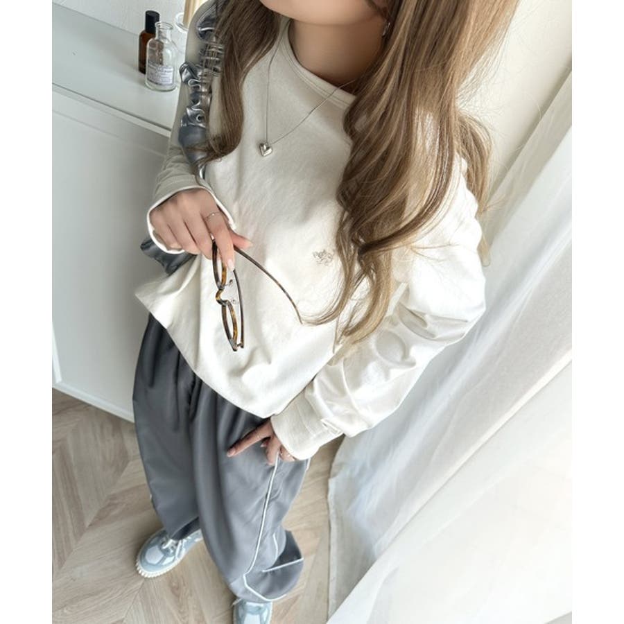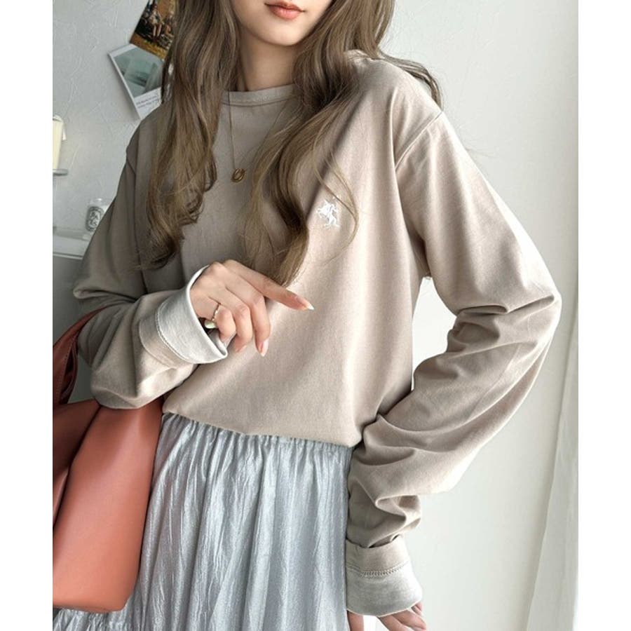 胸に入ったワンポイントのカラー刺繍がアクセントに。