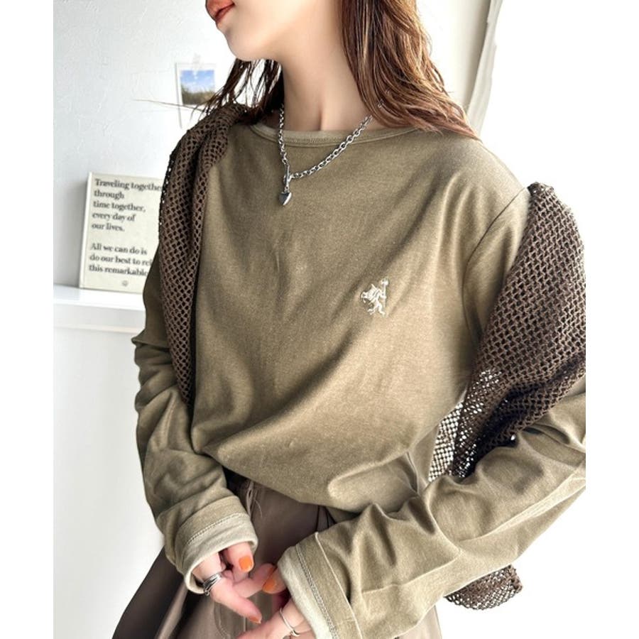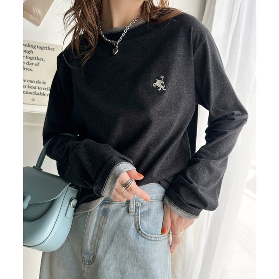 ヴィンテージ感をプラス。綿100%衿バイカラーワンポイント刺繍ロンTシャツ