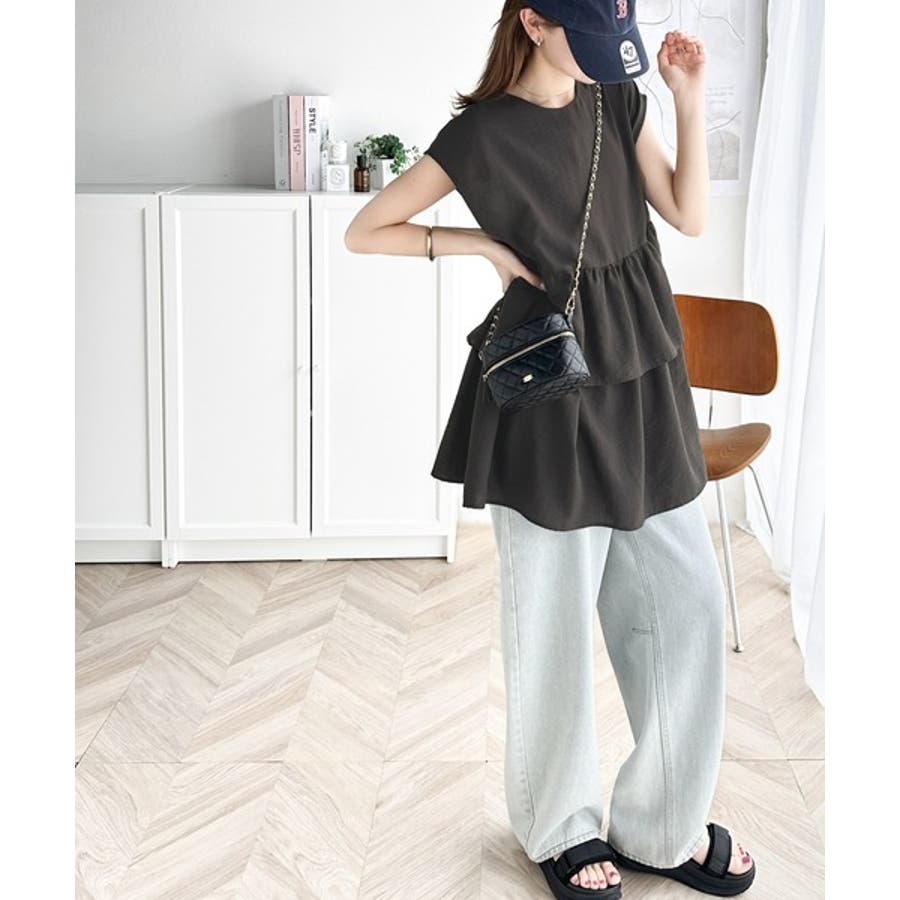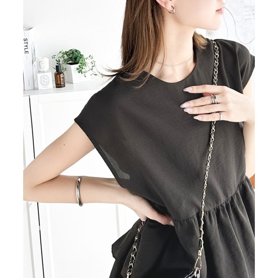 シボのある素材感やフレンチスリーブが抜け感のあるアイテム。