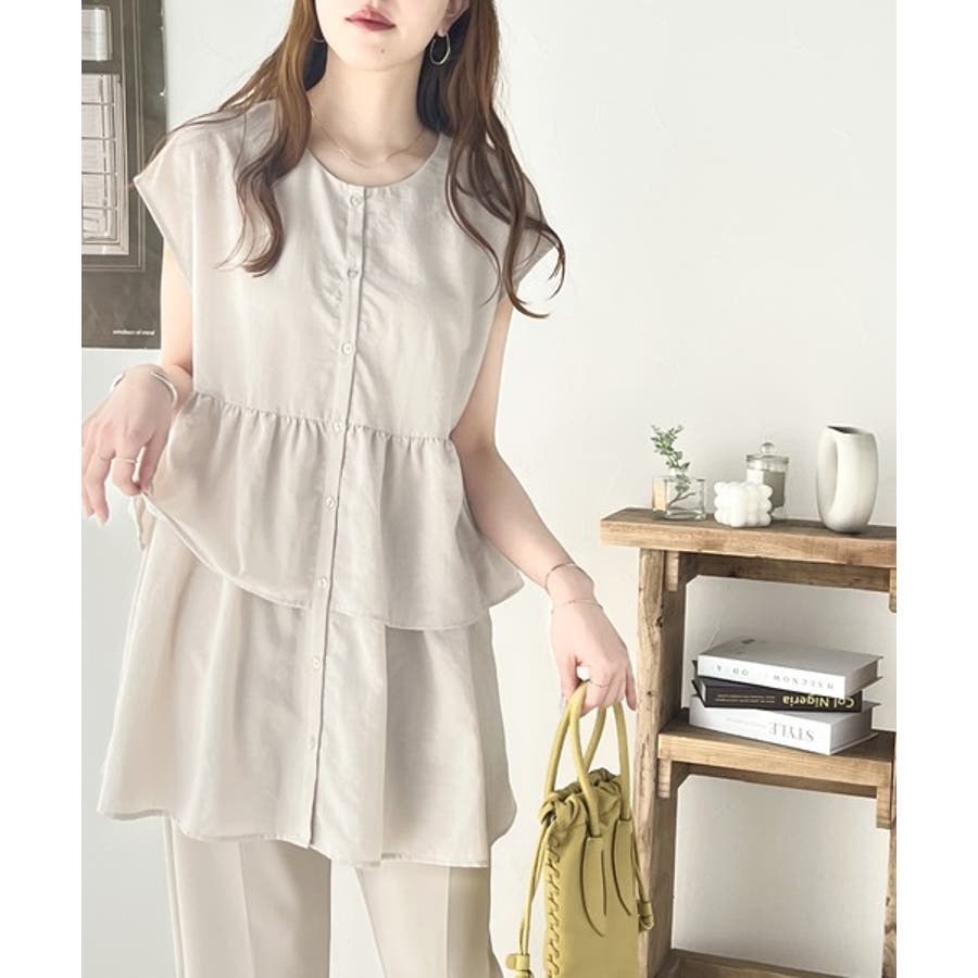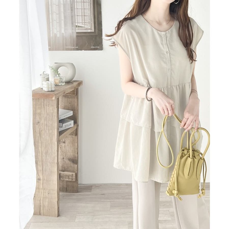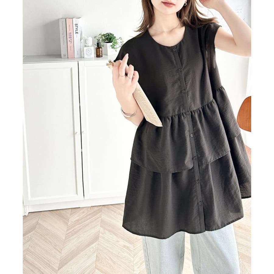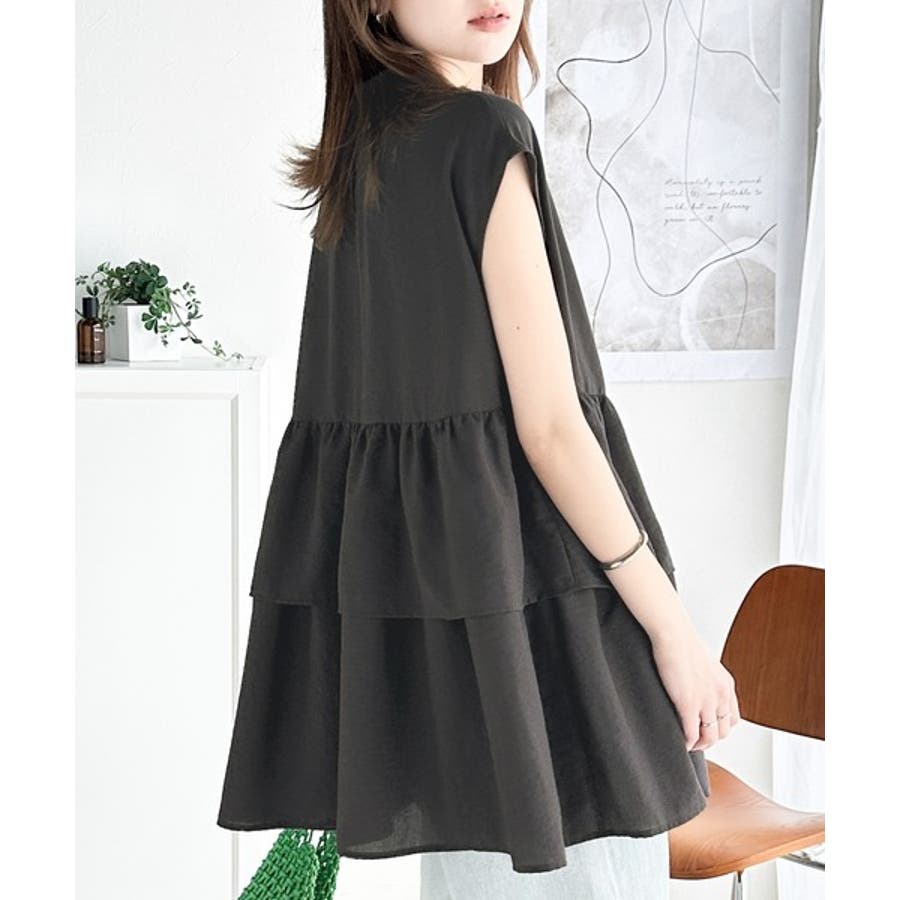 エアリータッチのふんわりトップス。前後2wayティアードチュニックブラウス