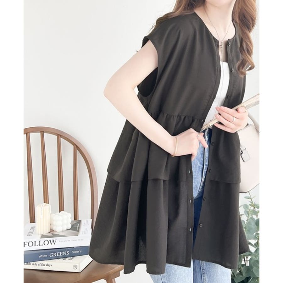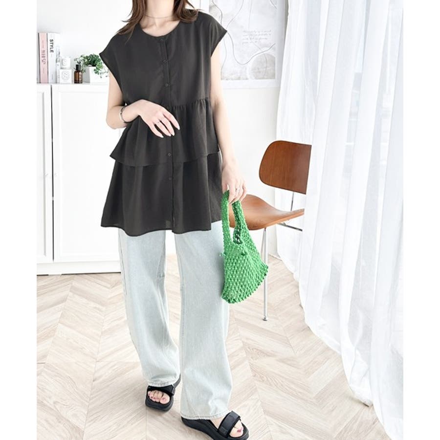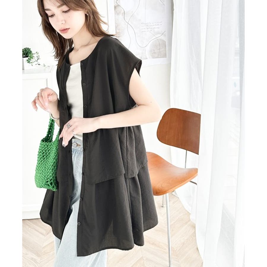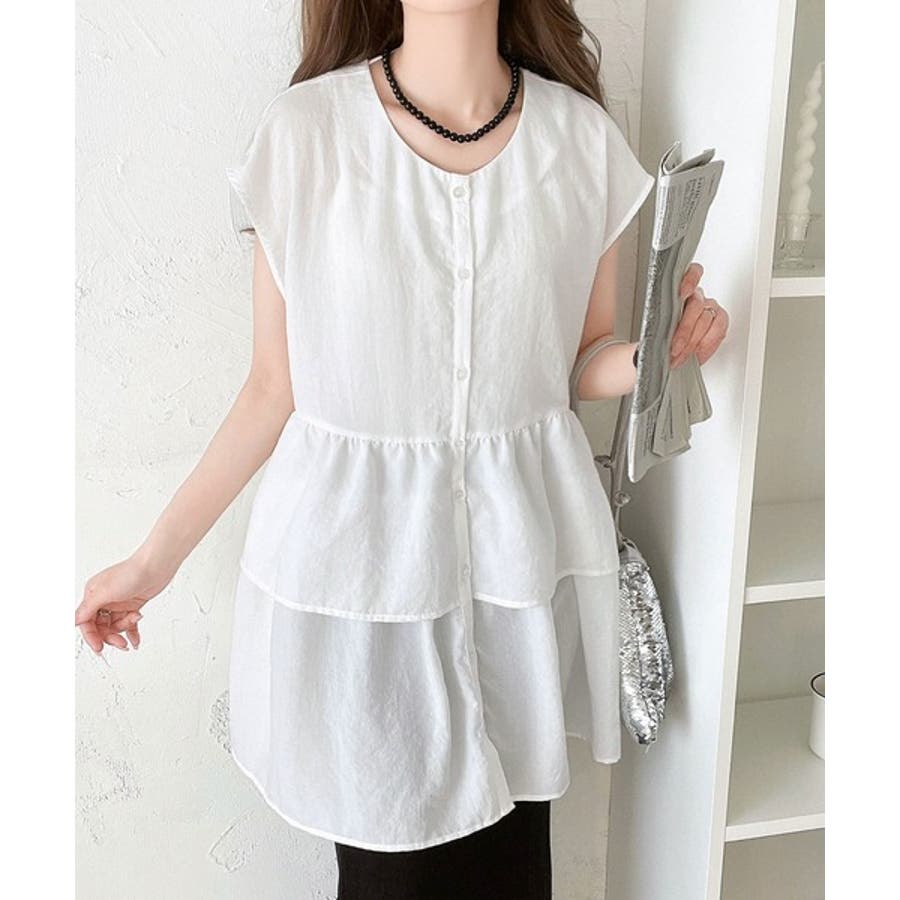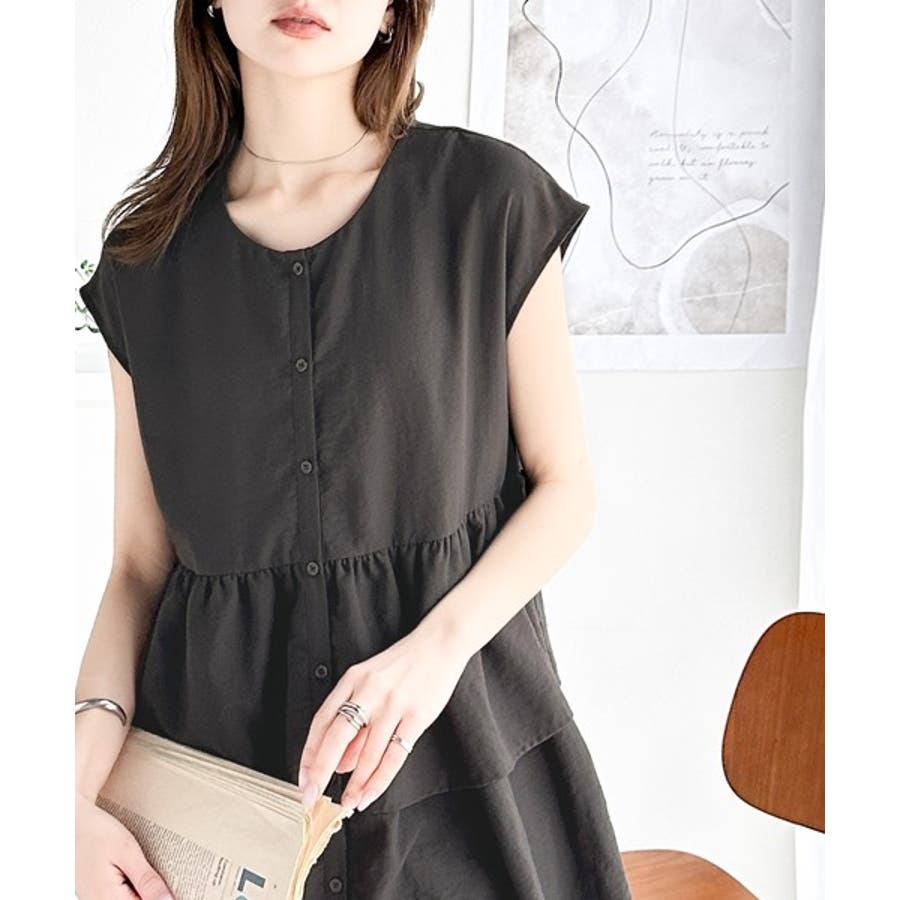 エアリータッチのふんわりトップス。前後2wayティアードチュニックブラウス