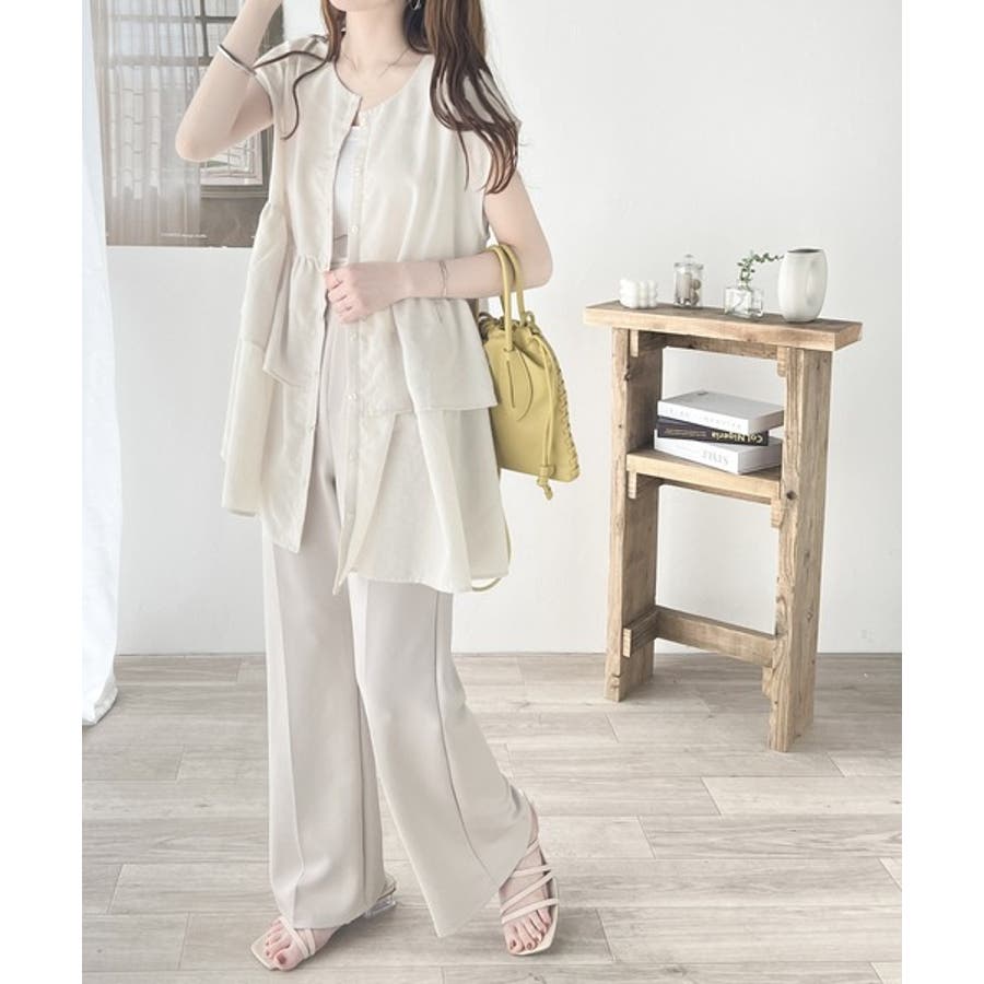 体型カバーも叶いつつ抜け感のある大人のガーリー感をプラス。