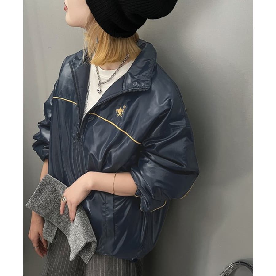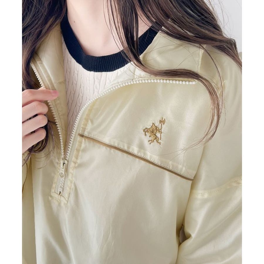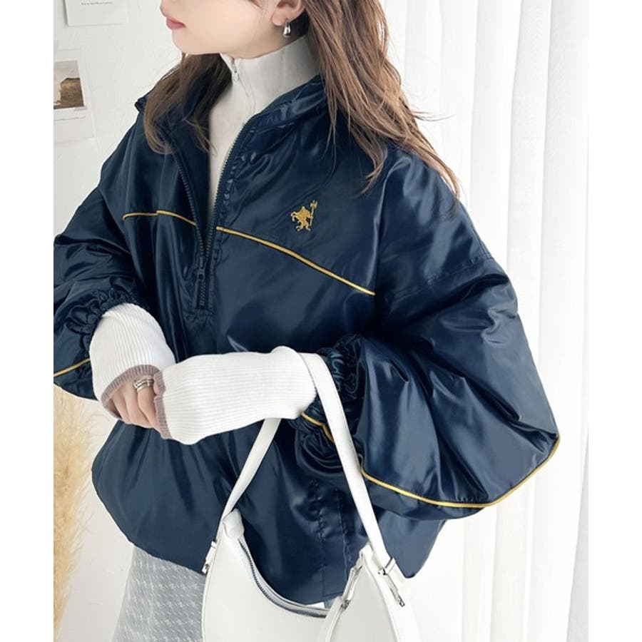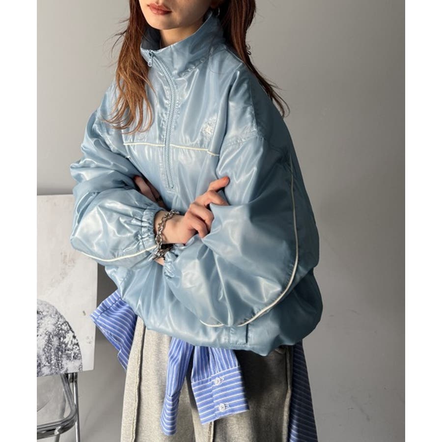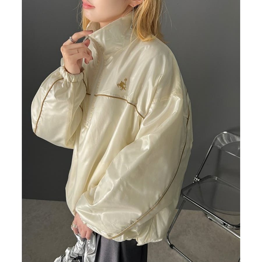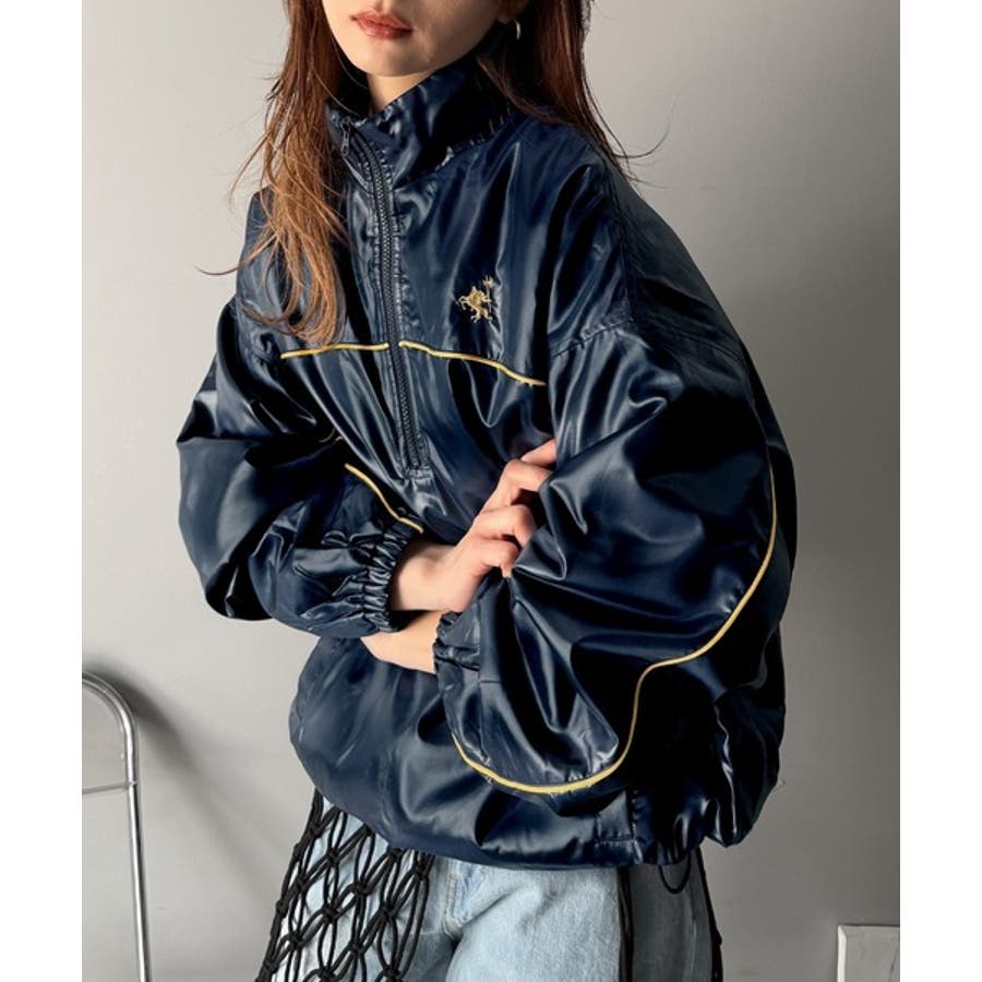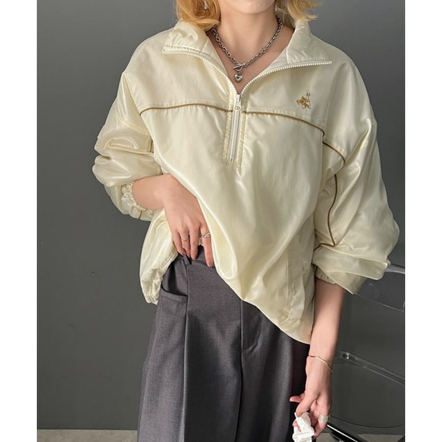 旬なスポーティMIXに。軽量胸刺繍×配色パイピングハーフジッププルオーバー