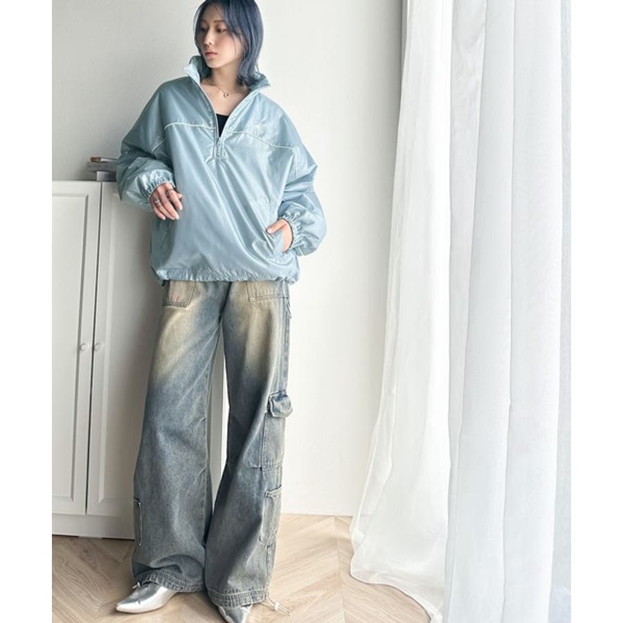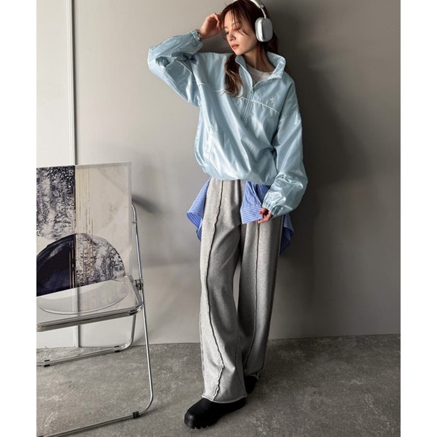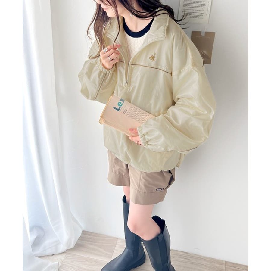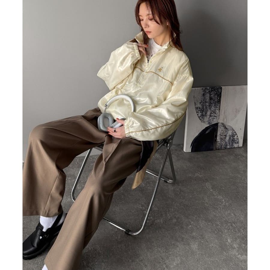 オーバーサイズで着こなすカジュアルなハーフジッププルオーバー。