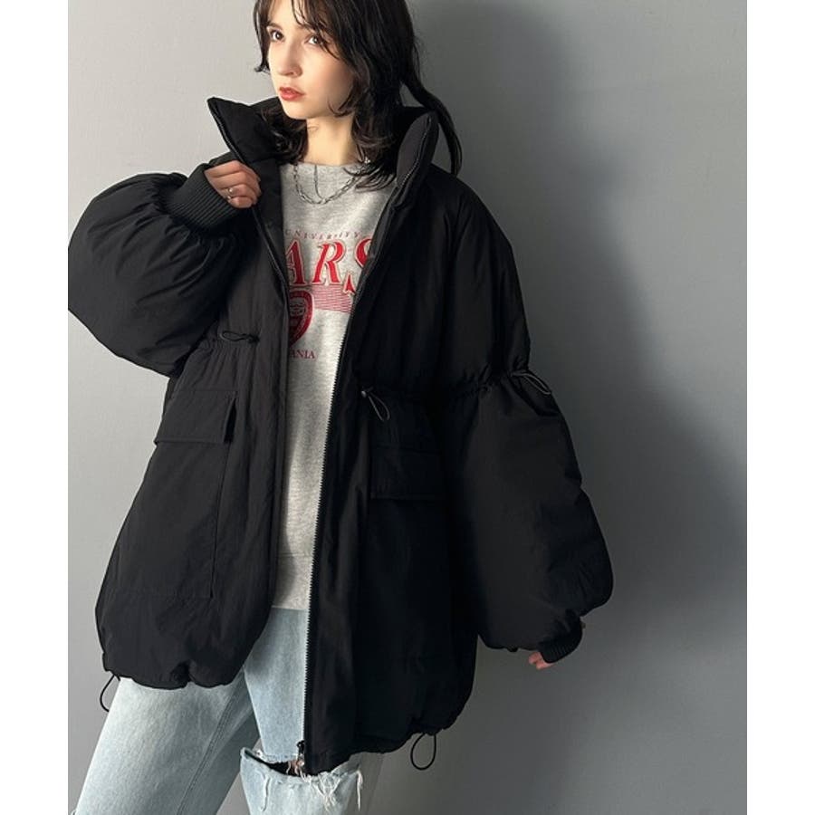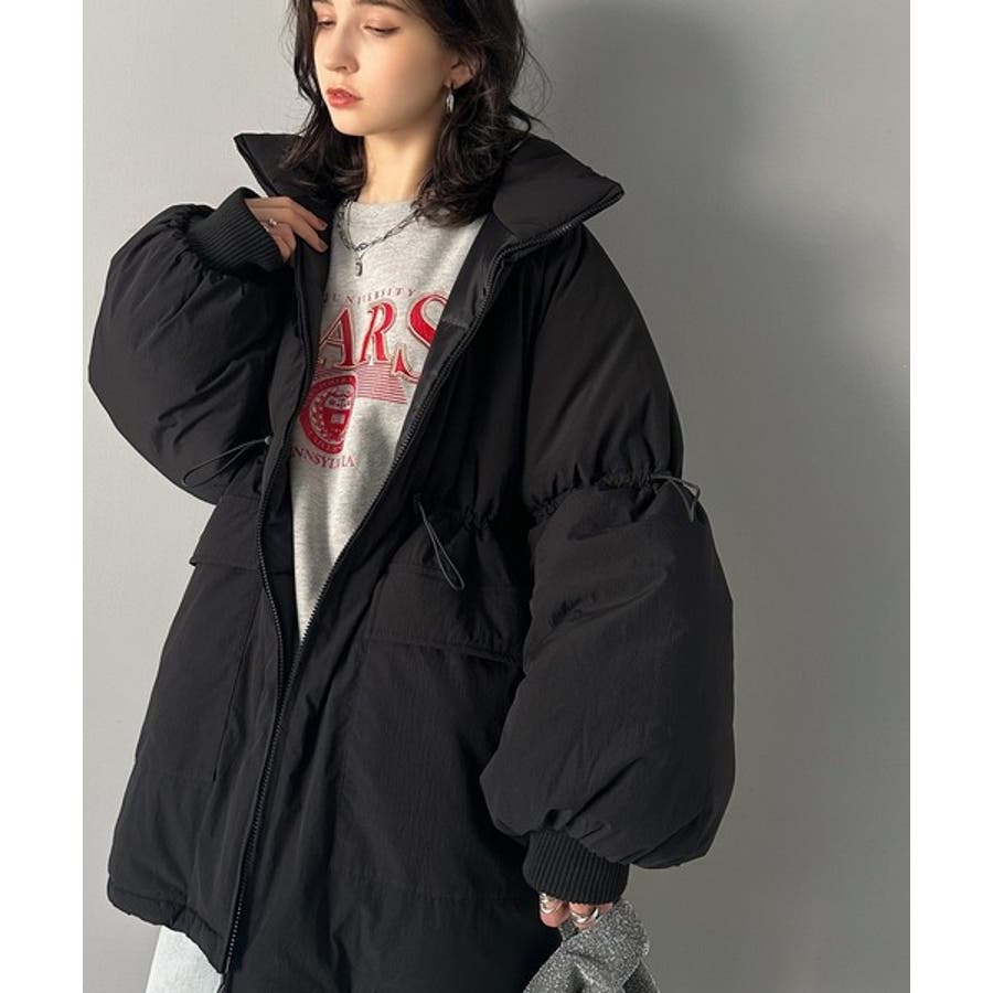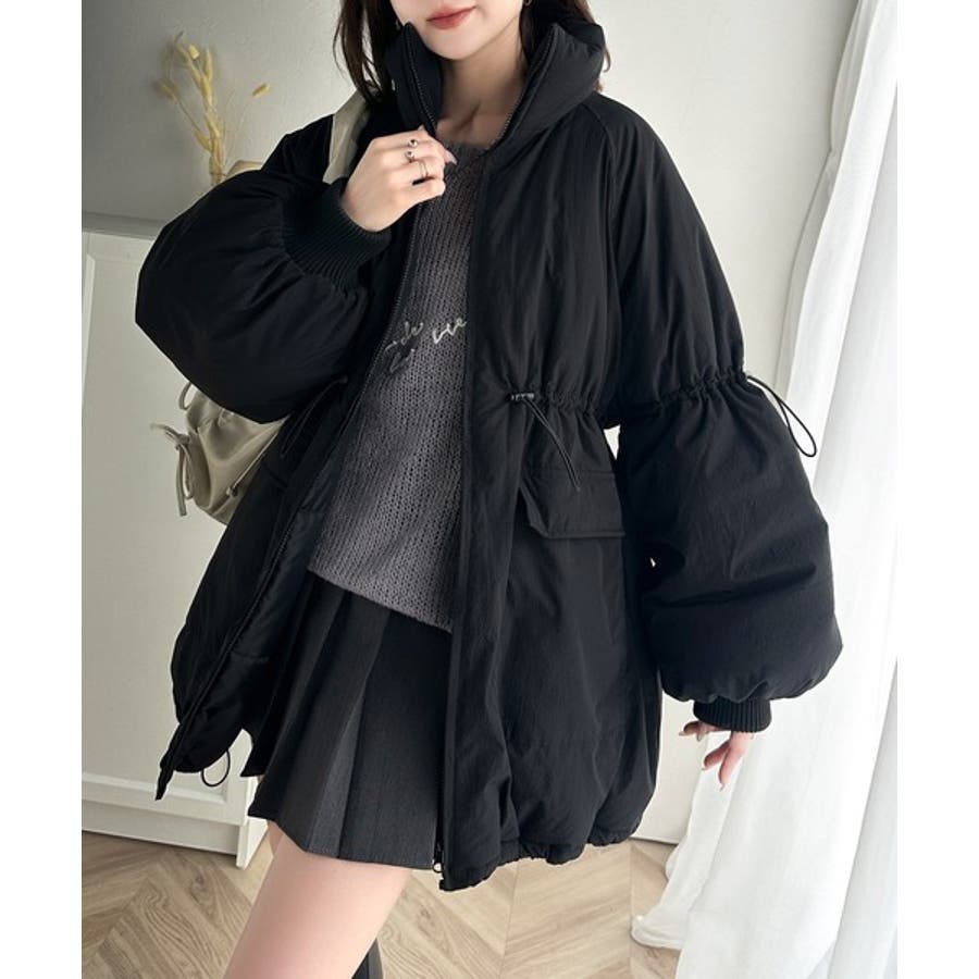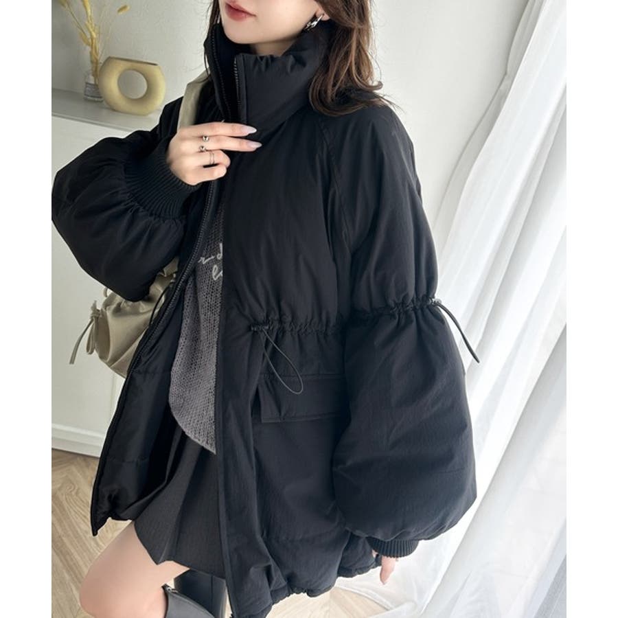 【ブラック】この冬最旬。スタンドドロスト袖ボリューム中綿ブルゾン