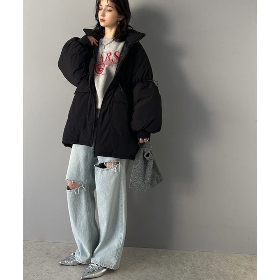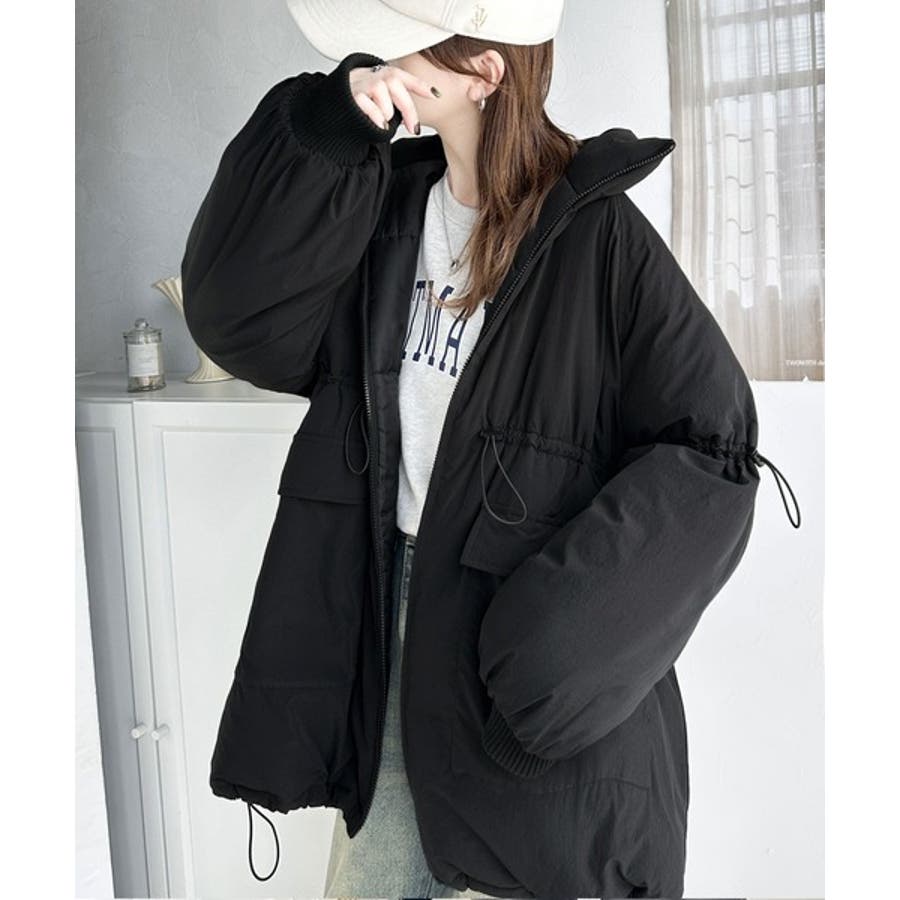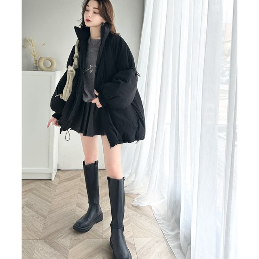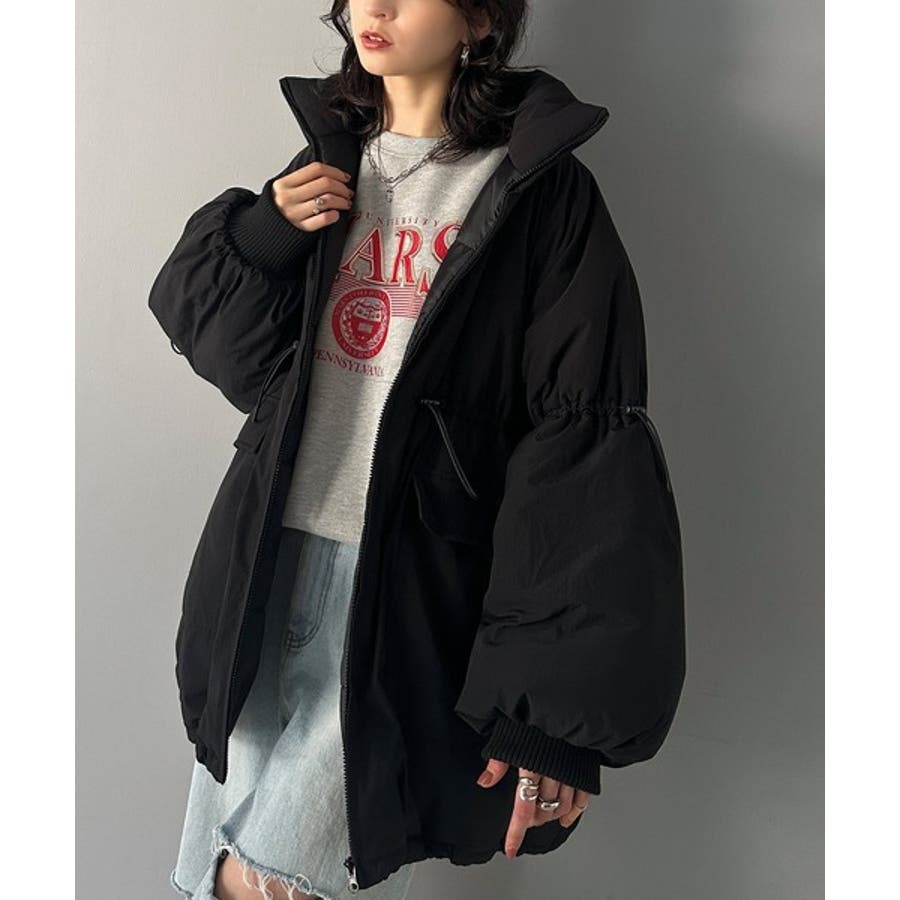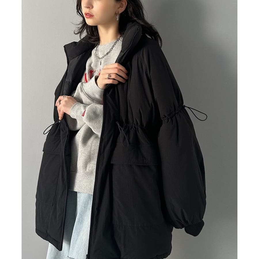 【ブラック】この冬最旬。スタンドドロスト袖ボリューム中綿ブルゾン