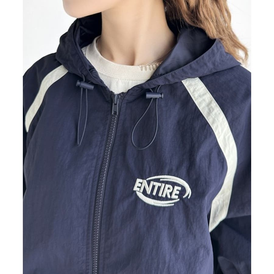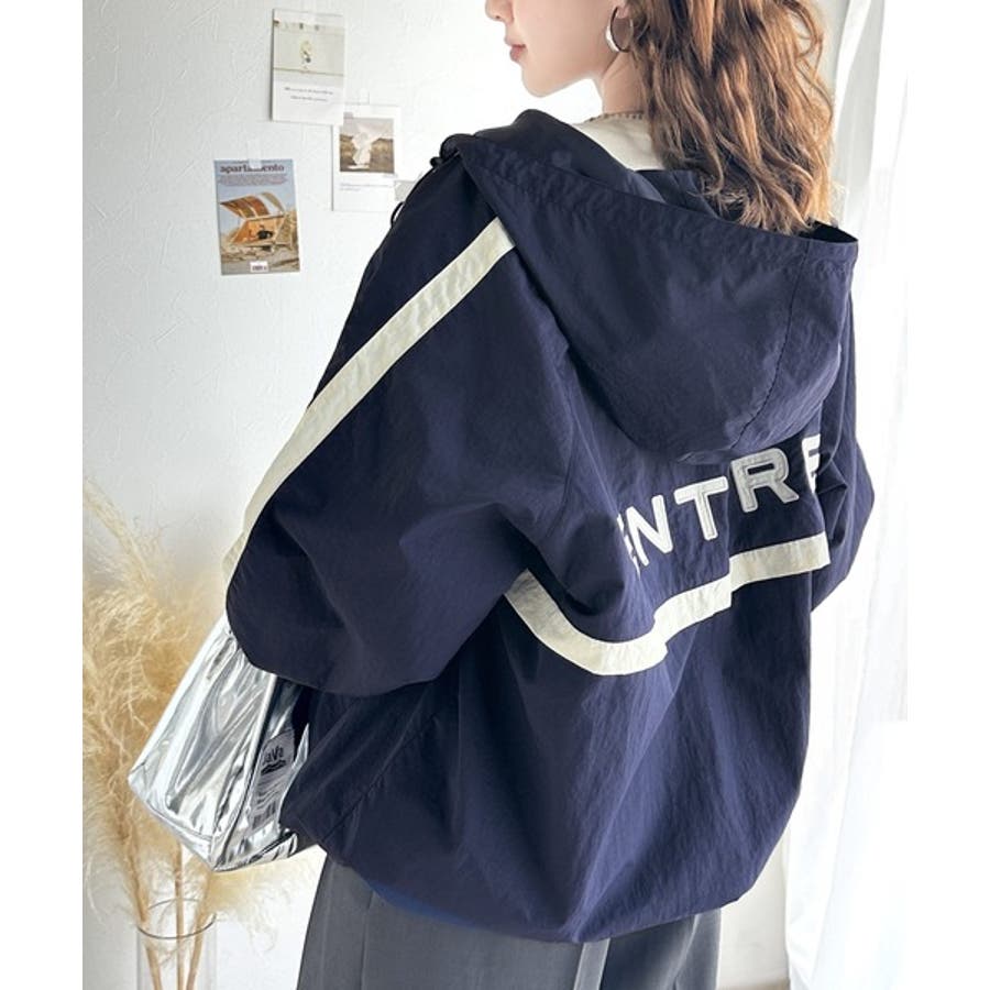 レトロムードで大人可愛い。バックロゴ刺繍配色ラインウィンドブレーカー