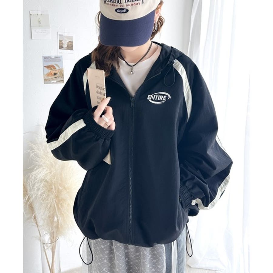 さっと羽織れるオーバーサイスのシャカシャカナイロン素材。