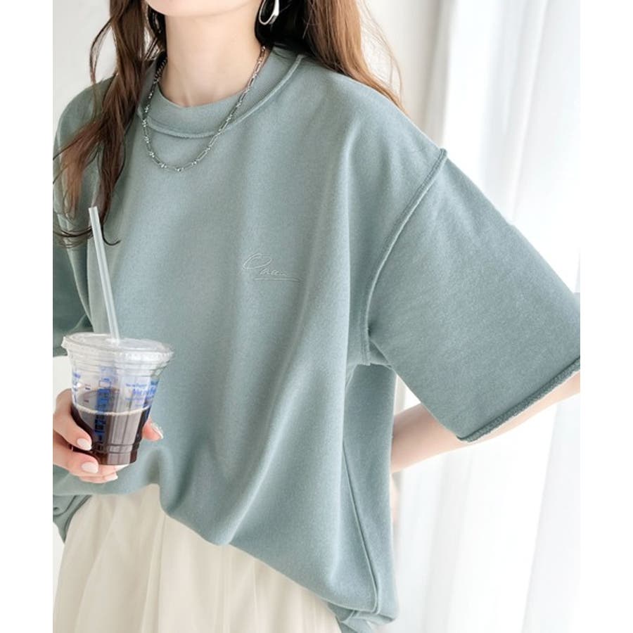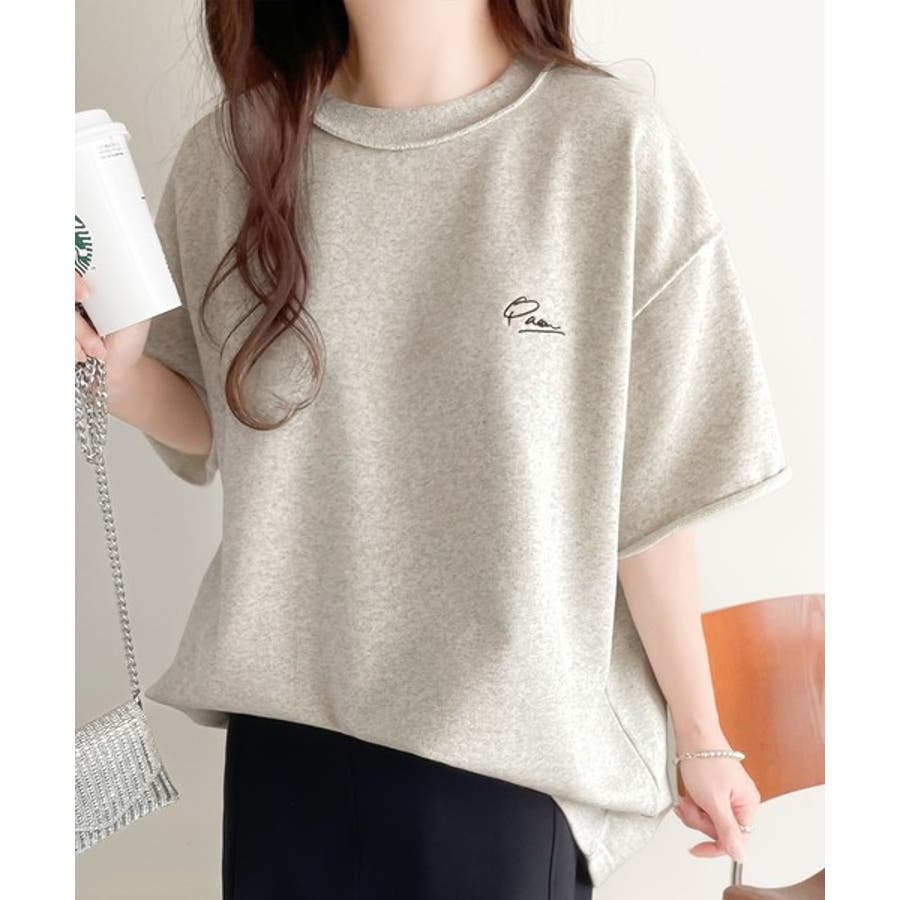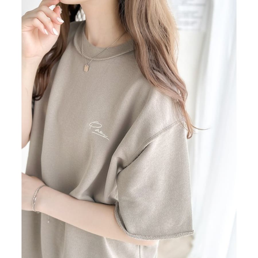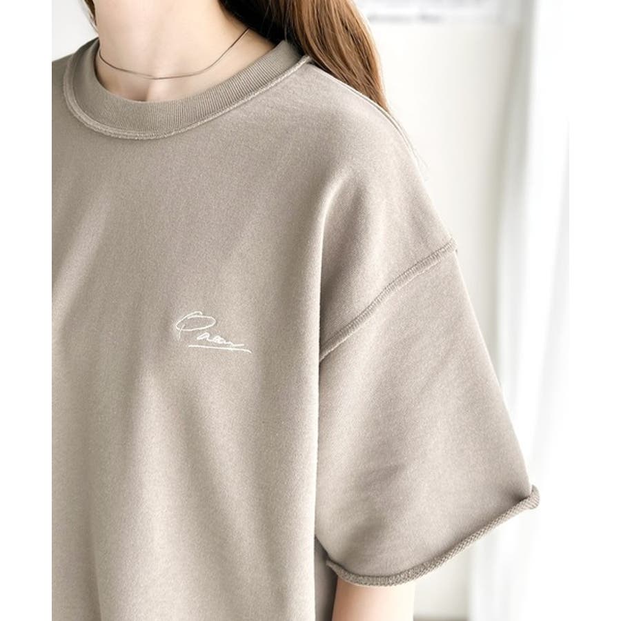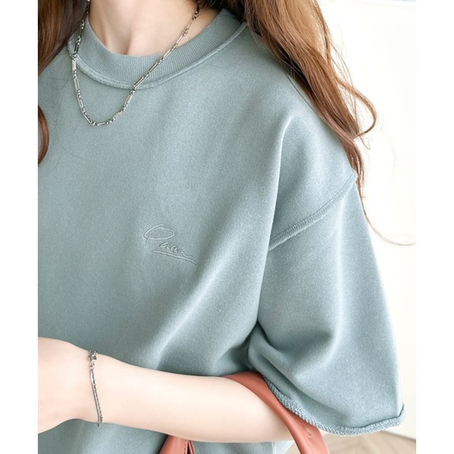 袖口くるりん。ワンポイント刺繍ハーフスリーブ裏毛Tシャツ