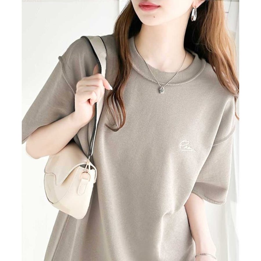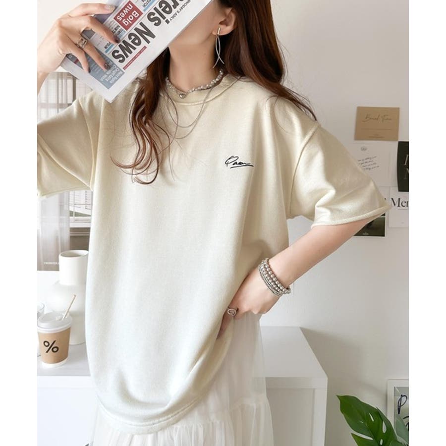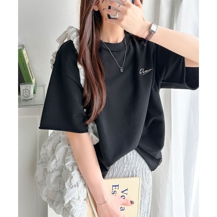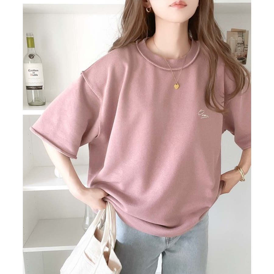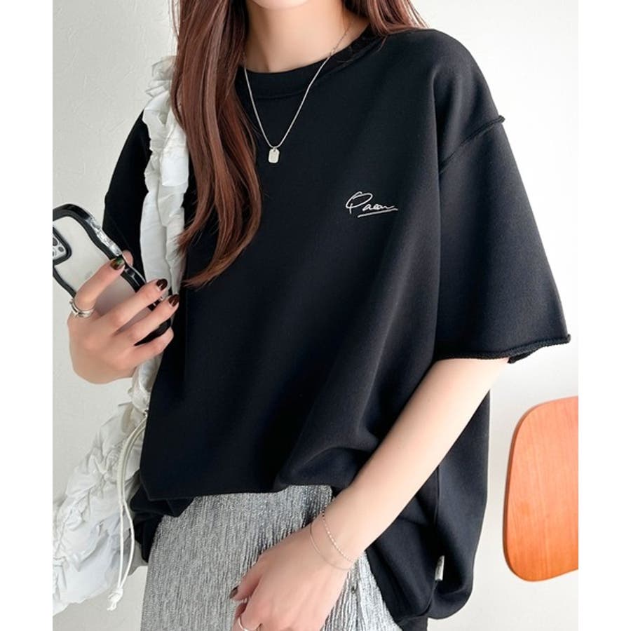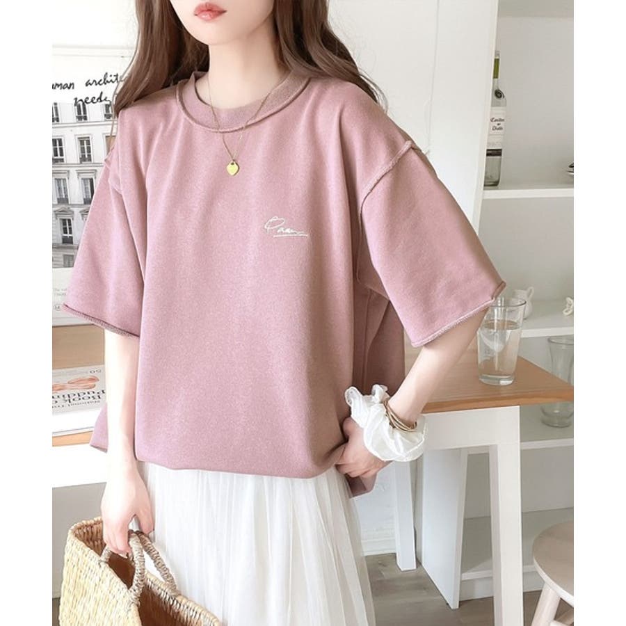 袖口くるりん。ワンポイント刺繍ハーフスリーブ裏毛Tシャツ