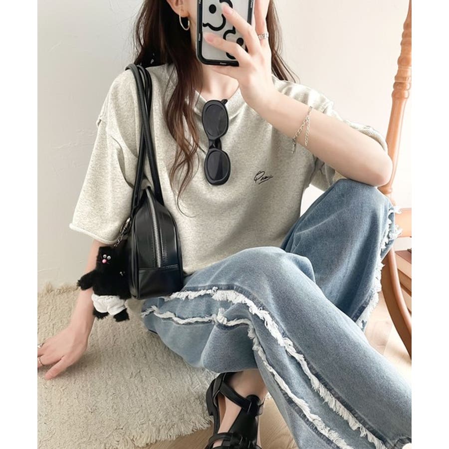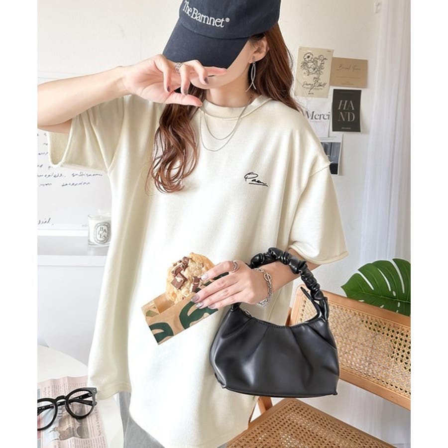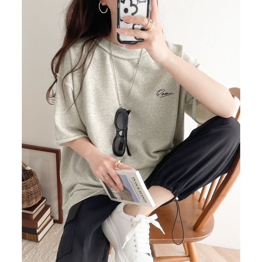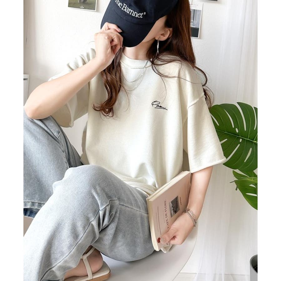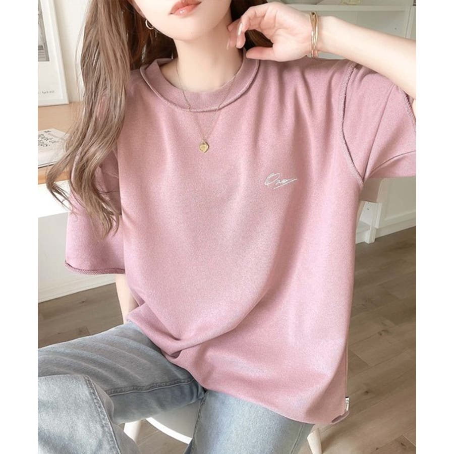 袖口くるりん。ワンポイント刺繍ハーフスリーブ裏毛Tシャツ