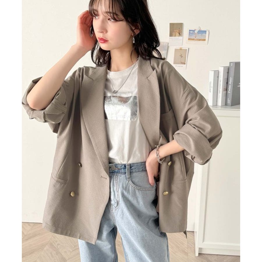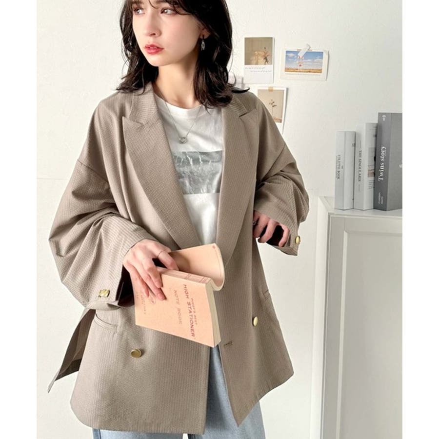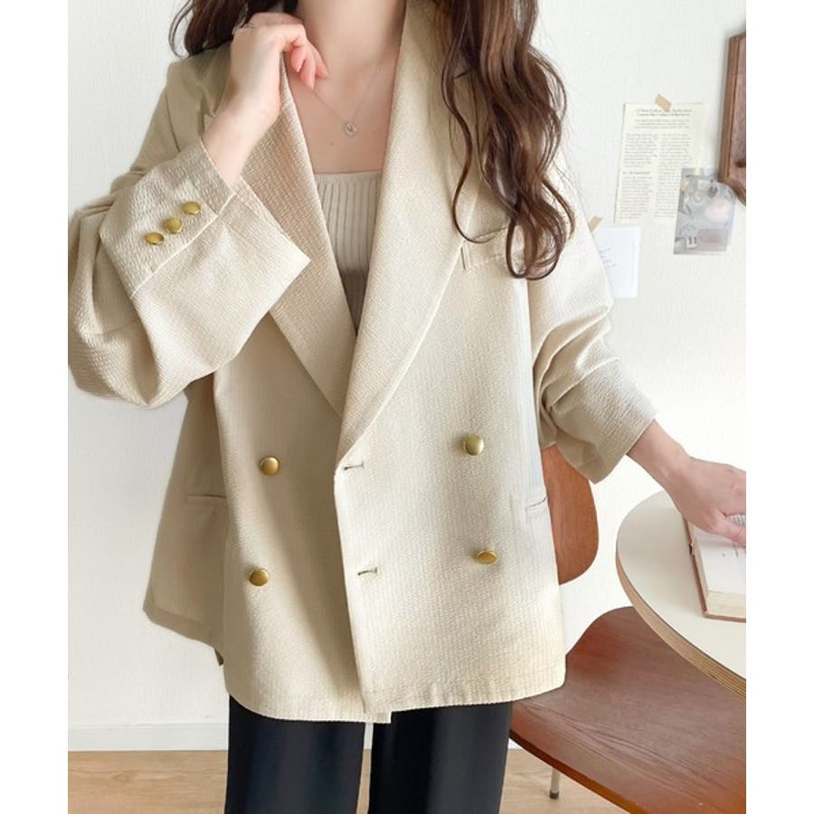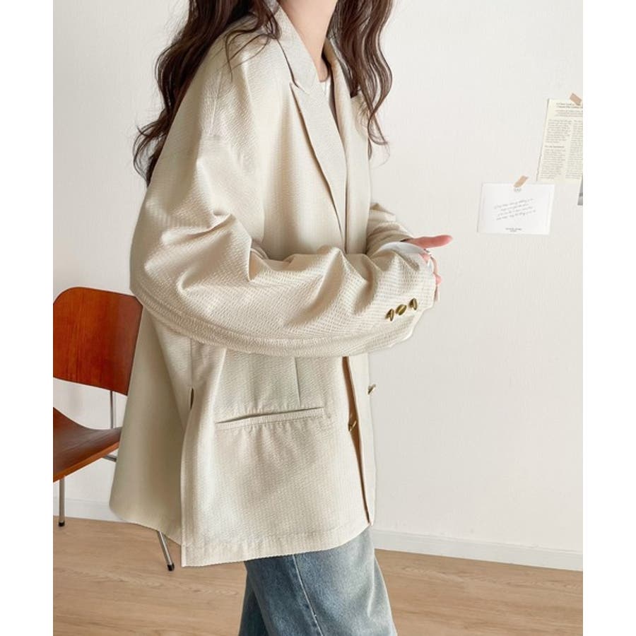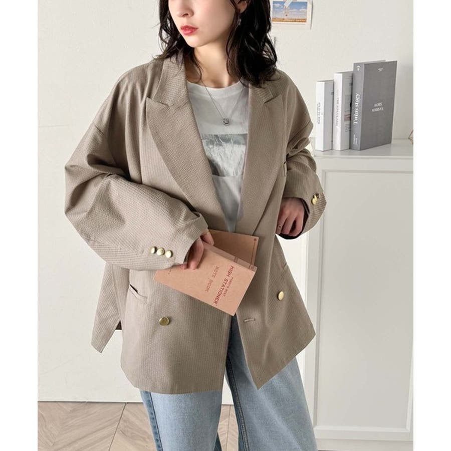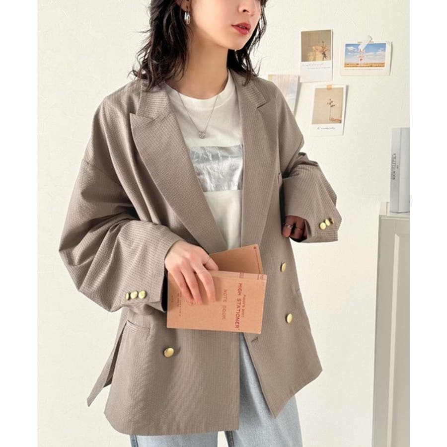 トレンドのオーバーサイズシルエット♪サッカー素材長袖ビッグジャケット(ダブル)