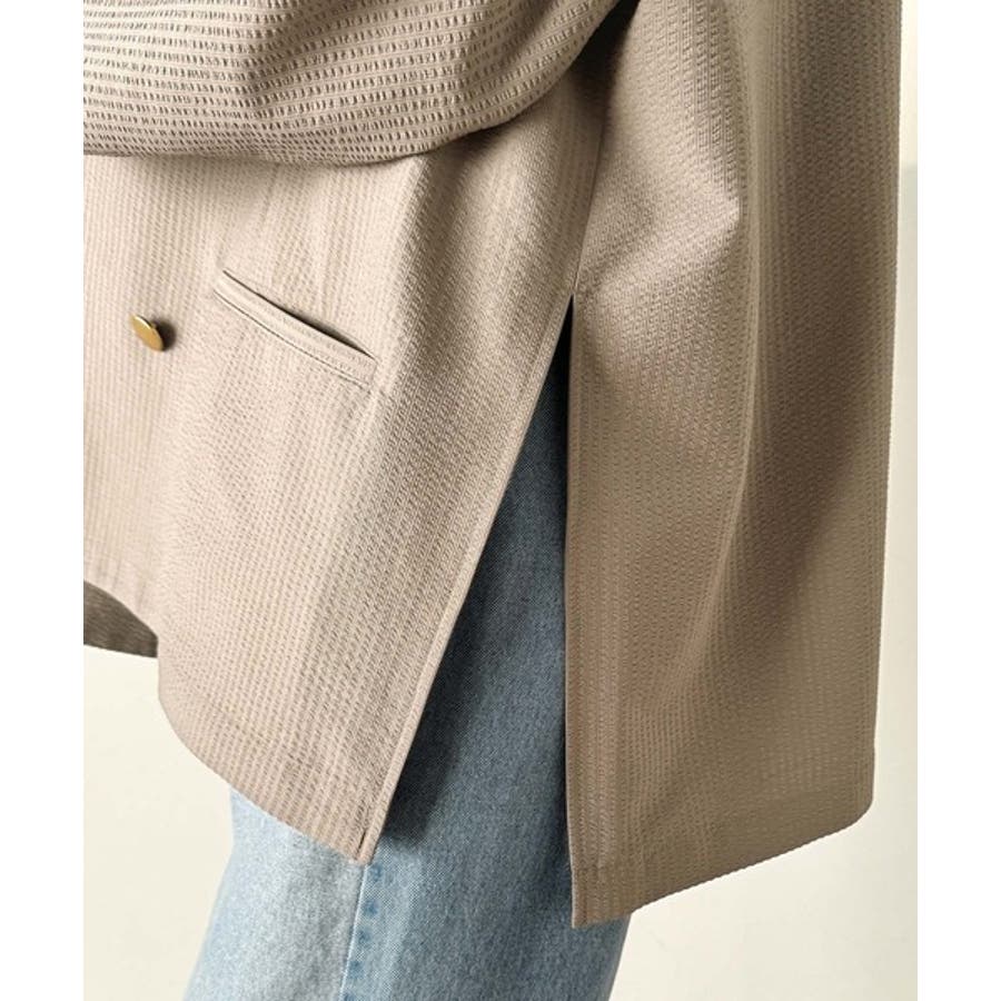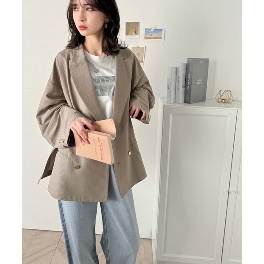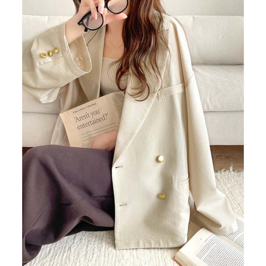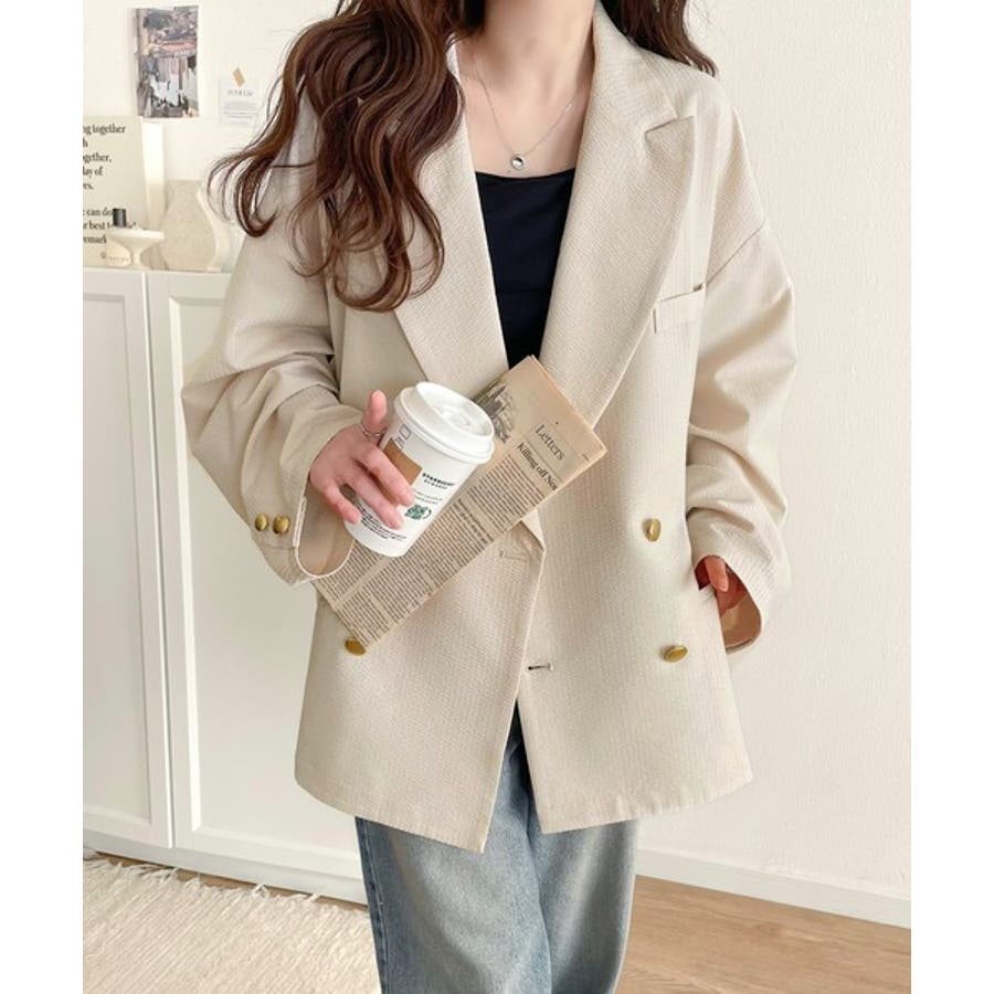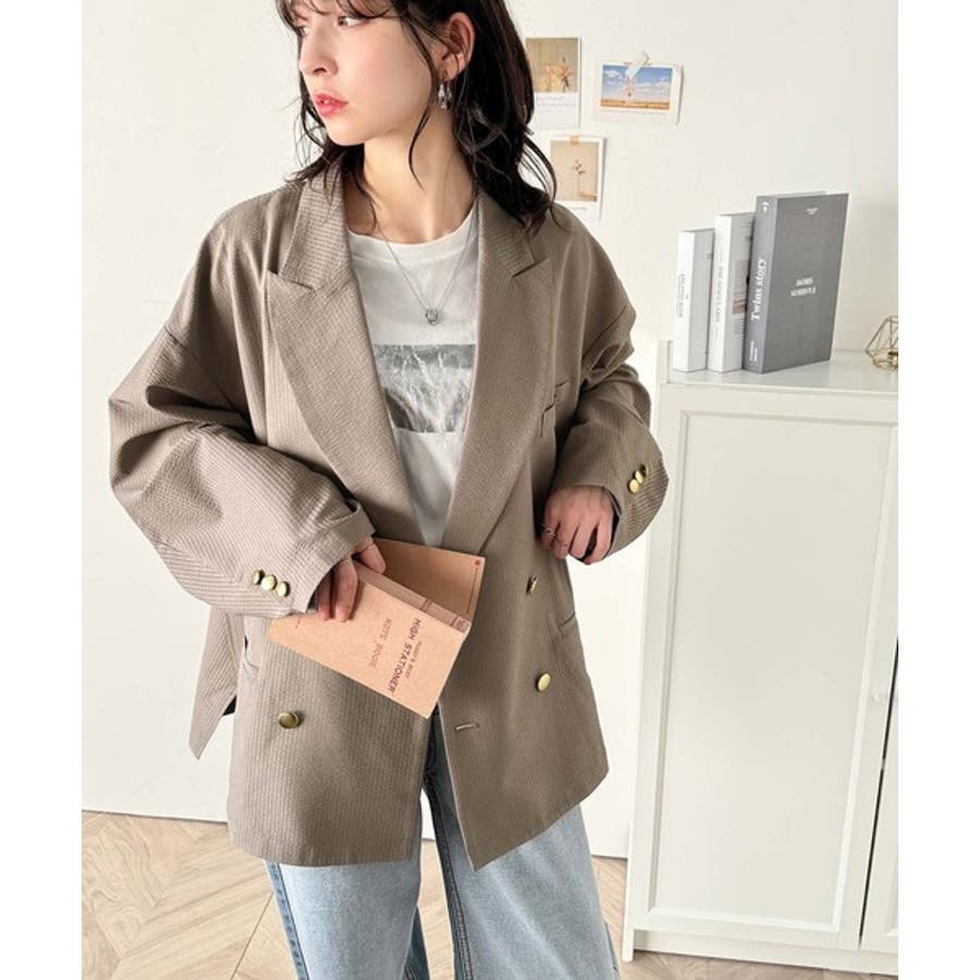 トレンドのオーバーサイズシルエット♪サッカー素材長袖ビッグジャケット(ダブル)