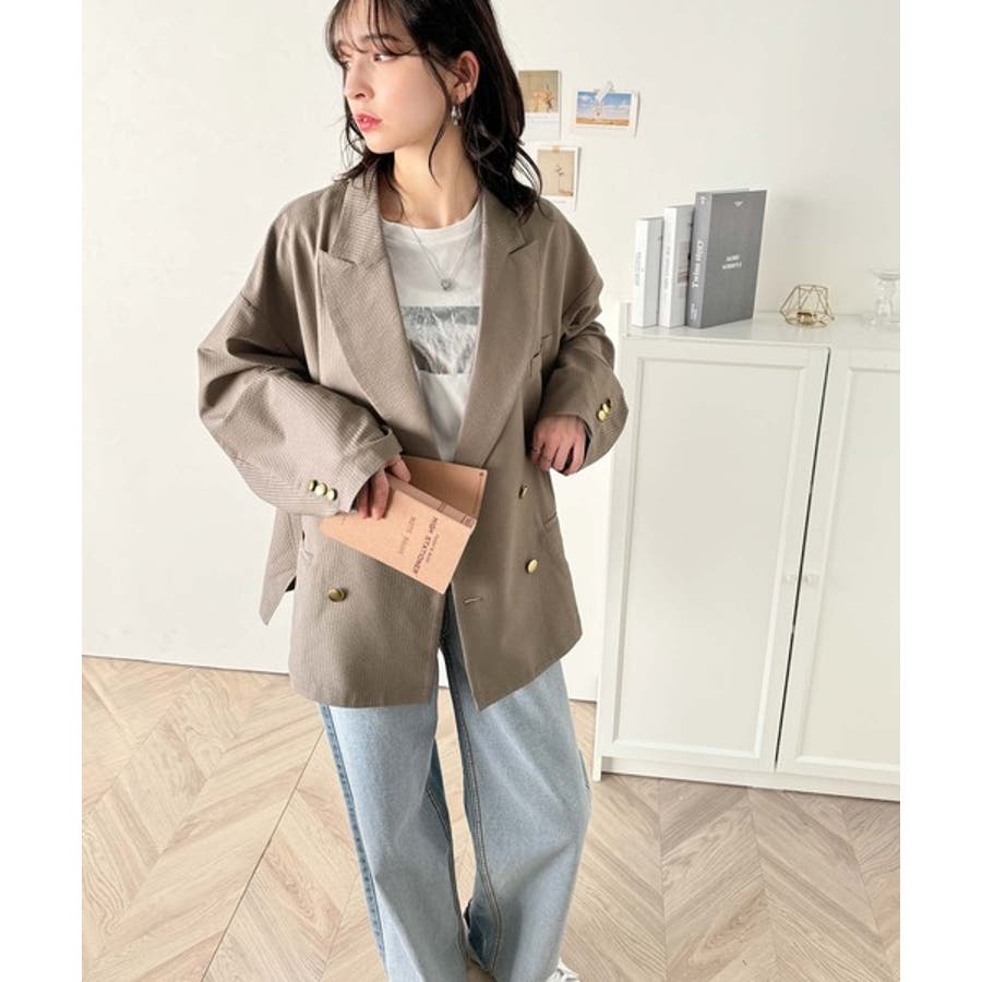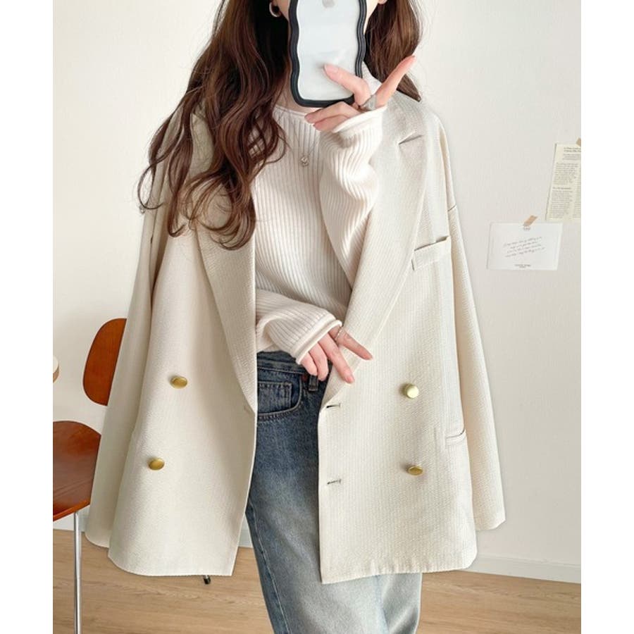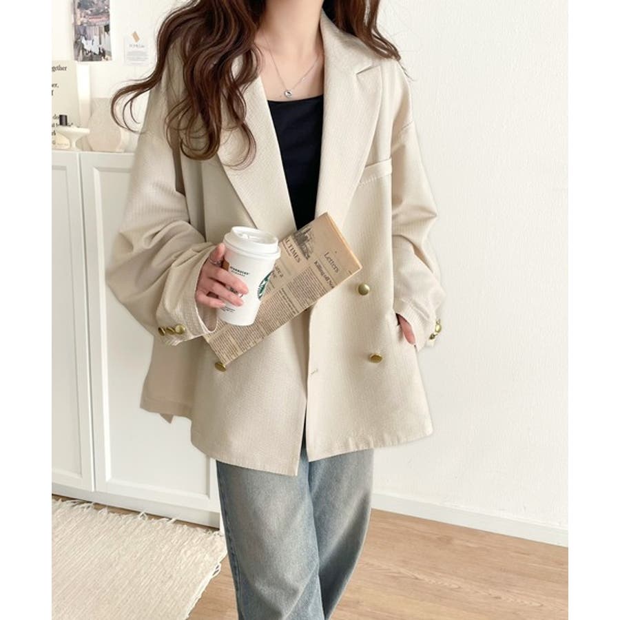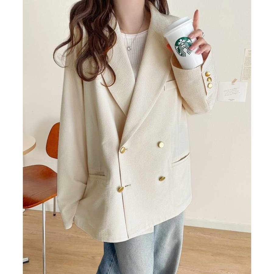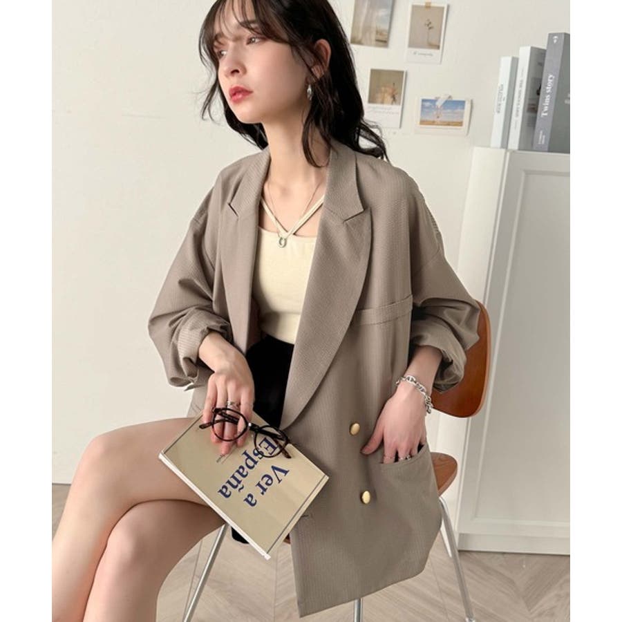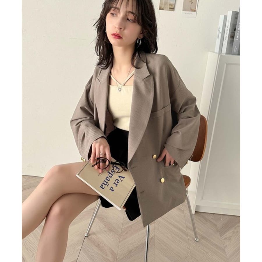 トレンドのオーバーサイズシルエット♪サッカー素材長袖ビッグジャケット(ダブル)