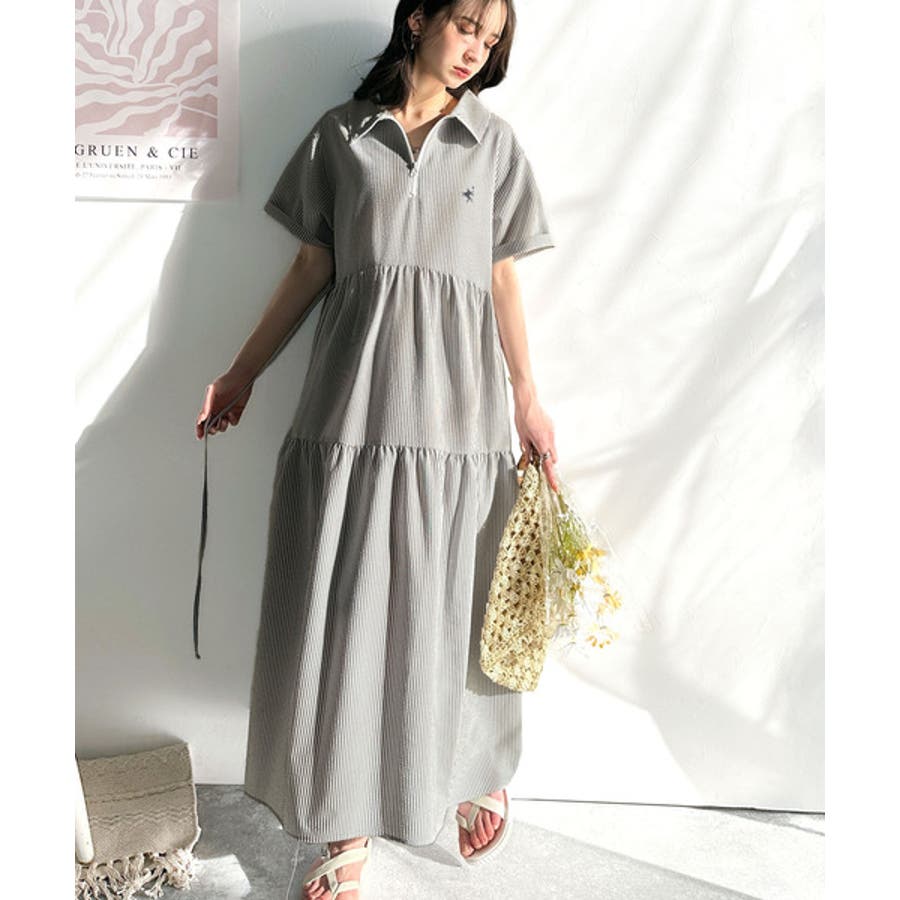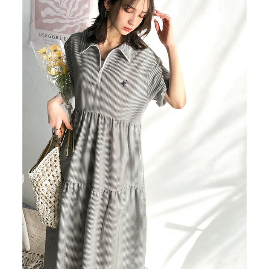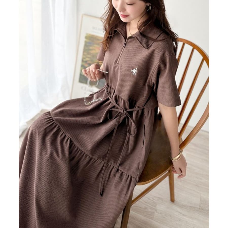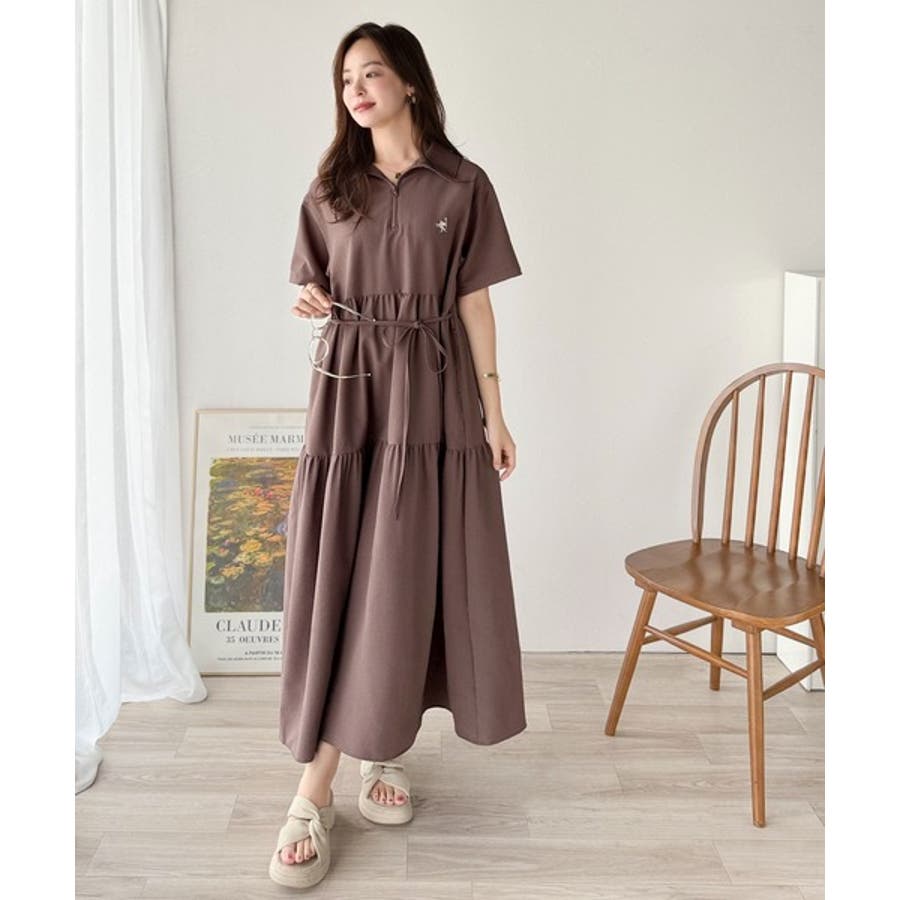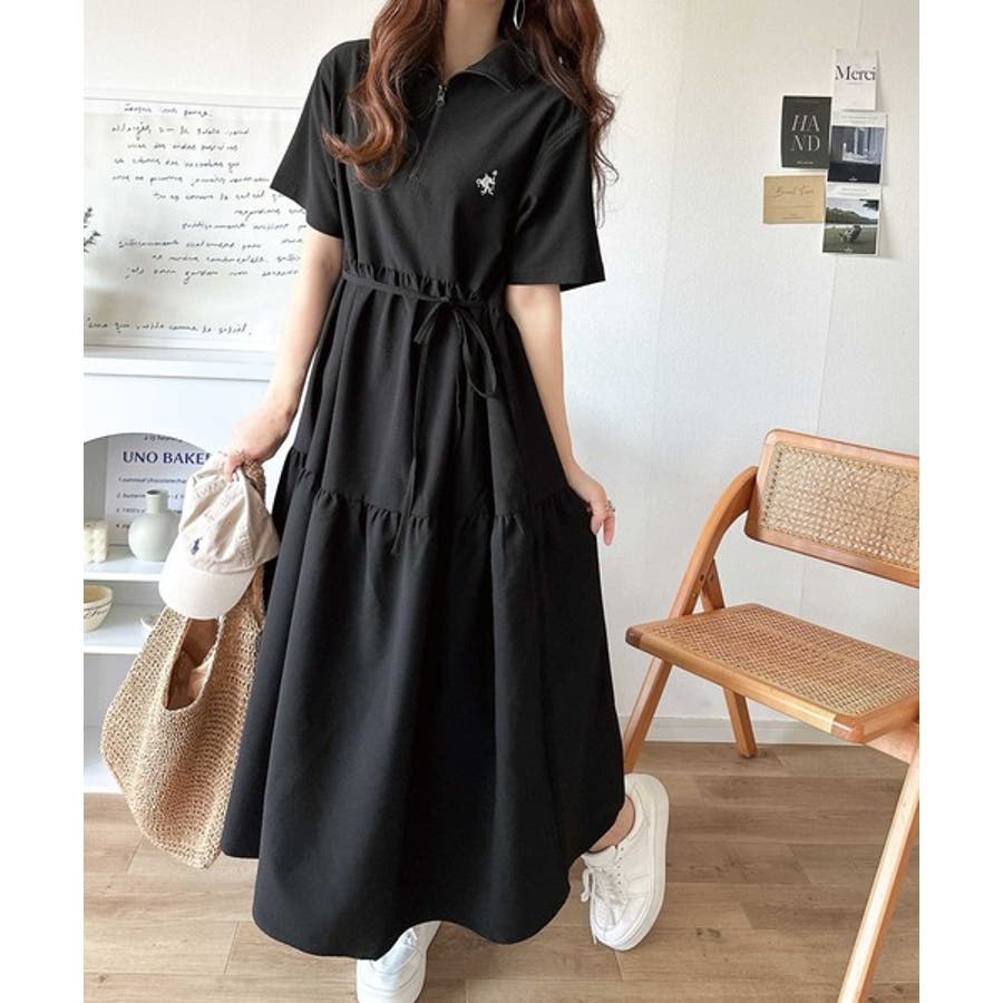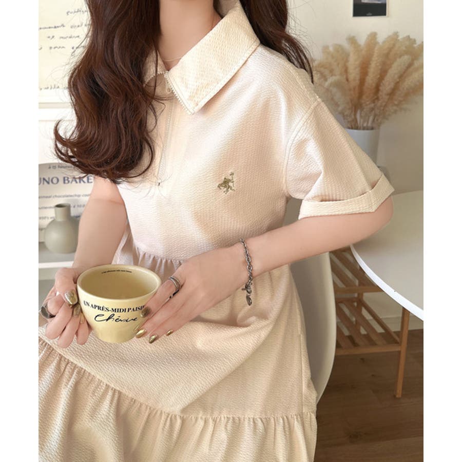 トレンドのティアード♪胸刺繍サッカーハーフZIPワンピース(ロング)
