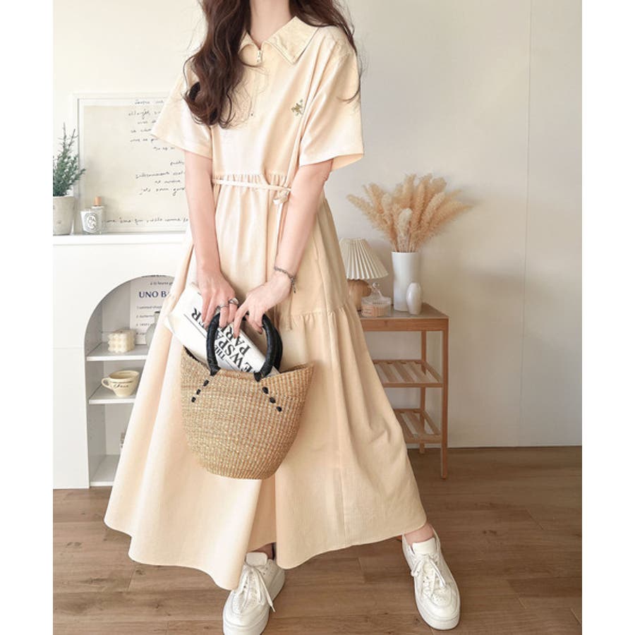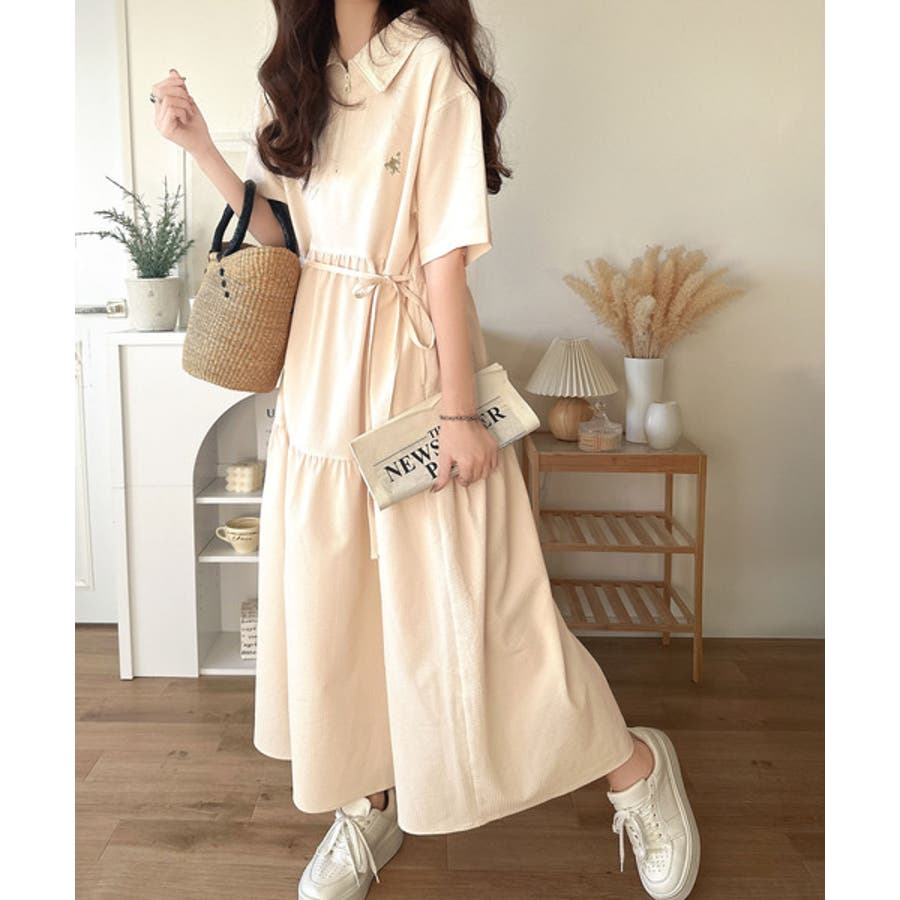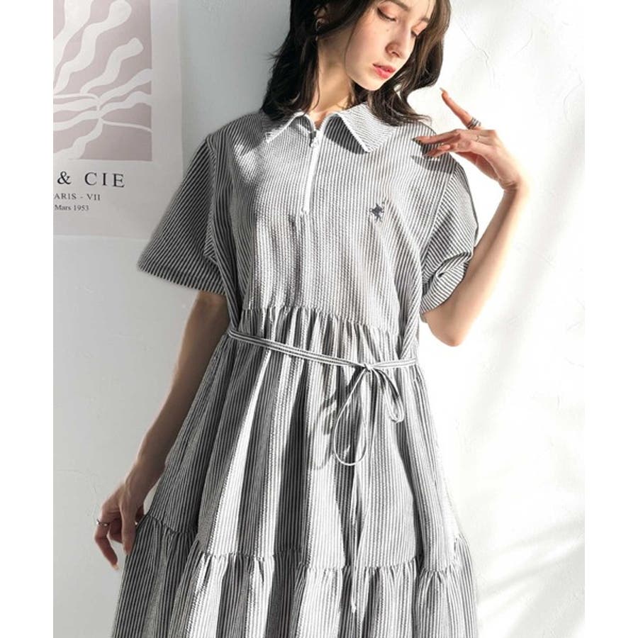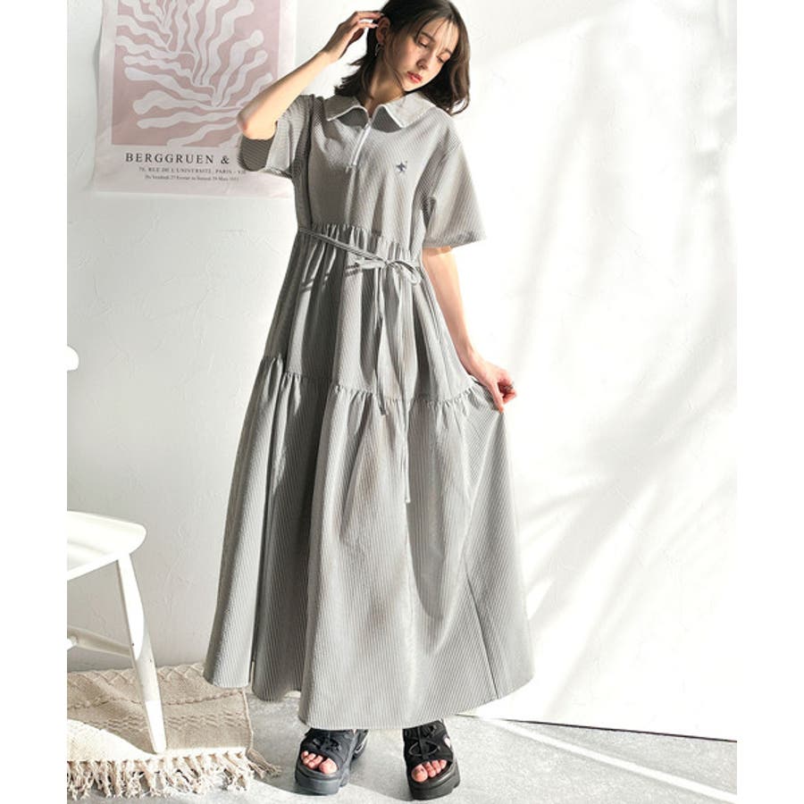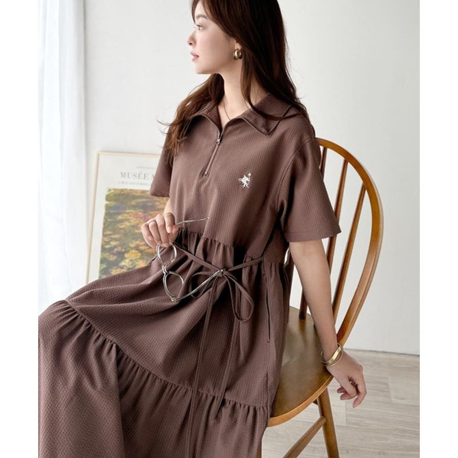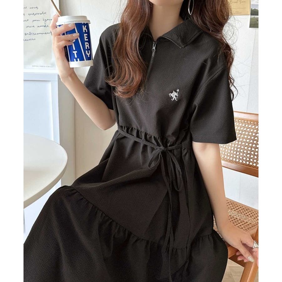 トレンドのティアード♪胸刺繍サッカーハーフZIPワンピース(ロング)