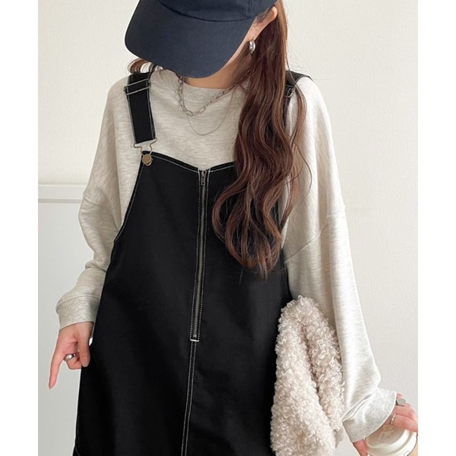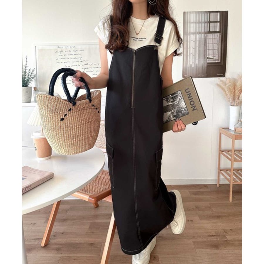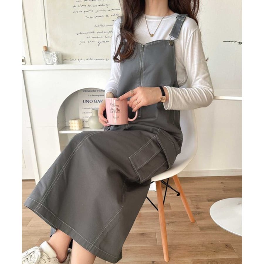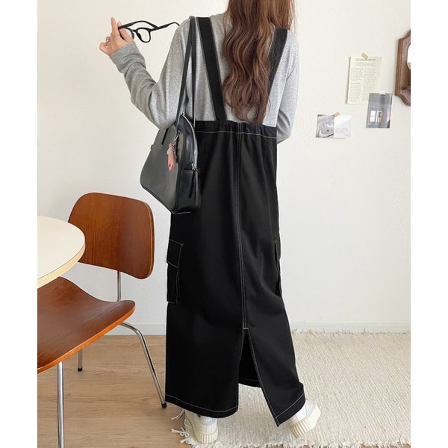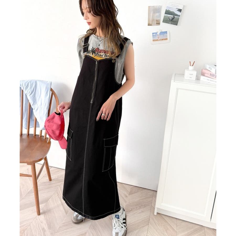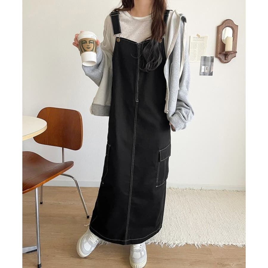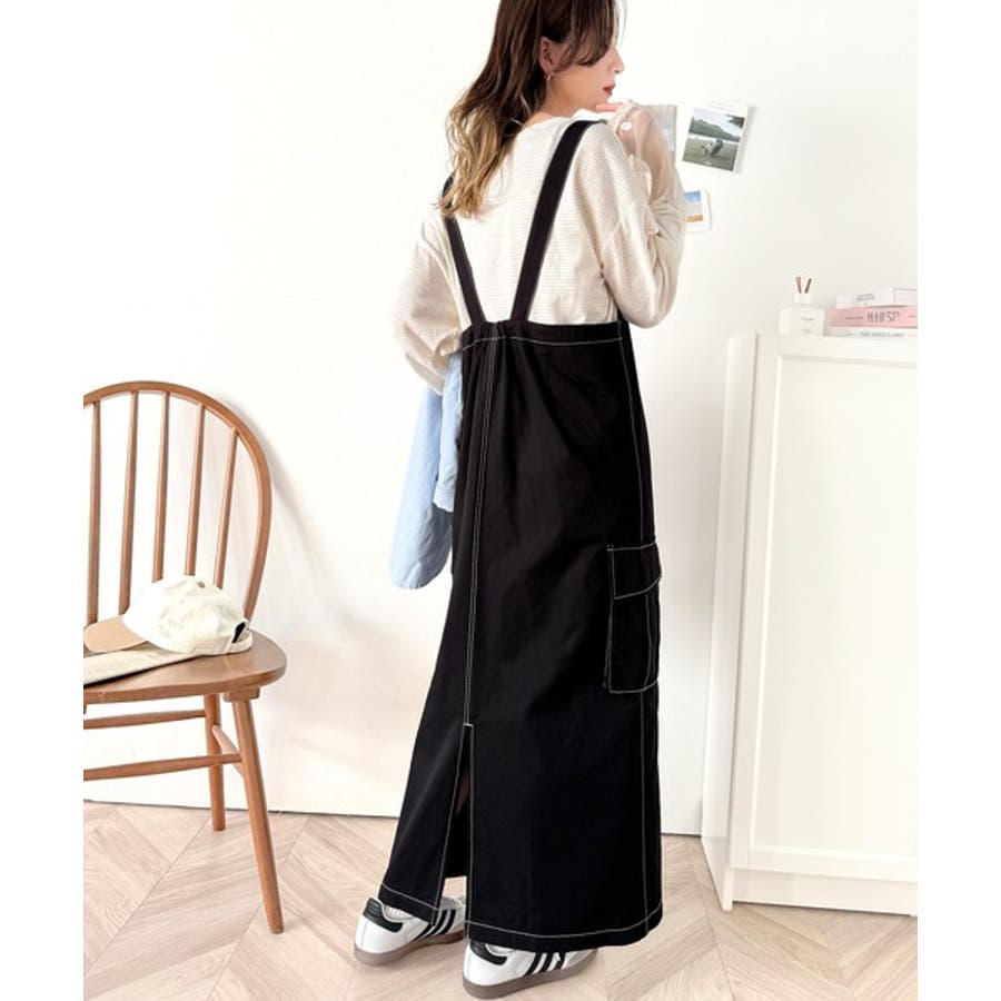 大人が着るカジュアル新定番!綿100%配色ステッチロング丈ジャンパースカート