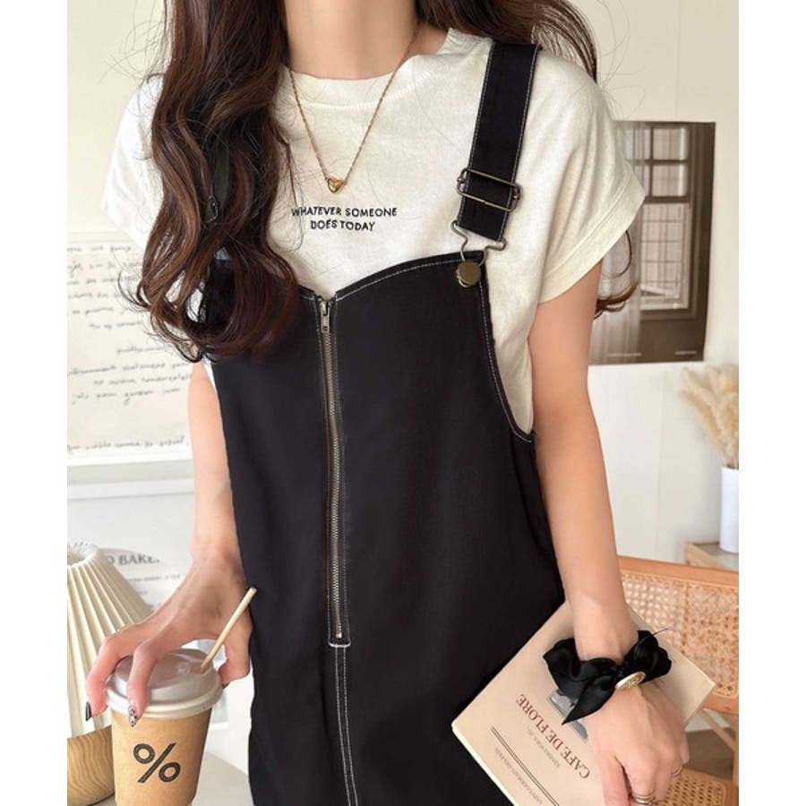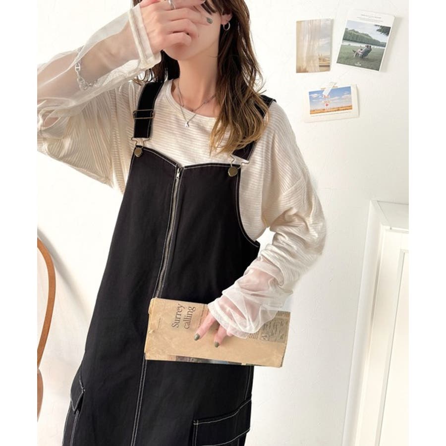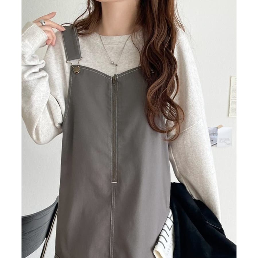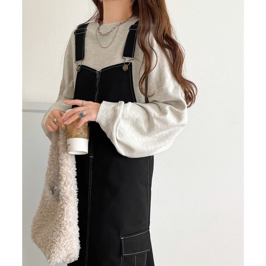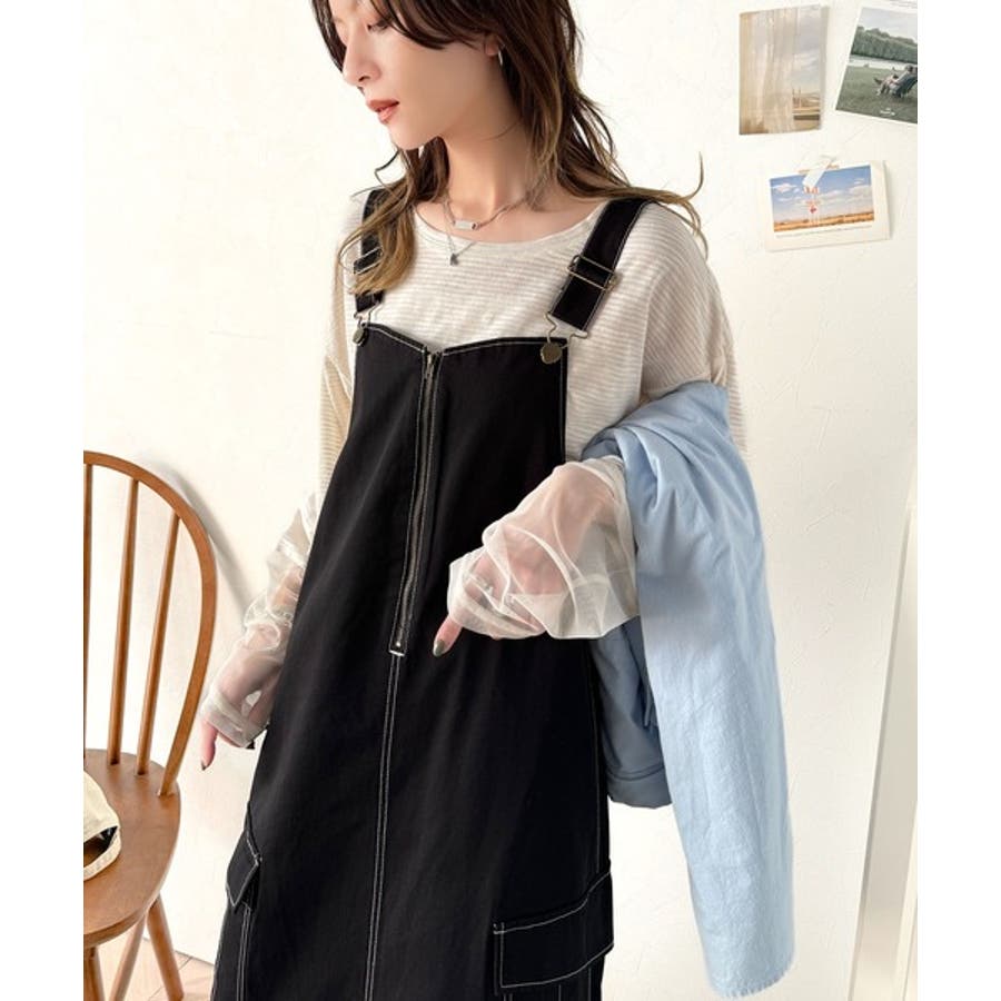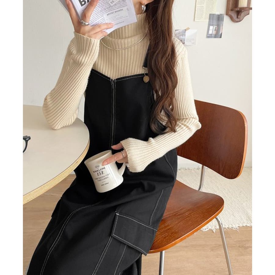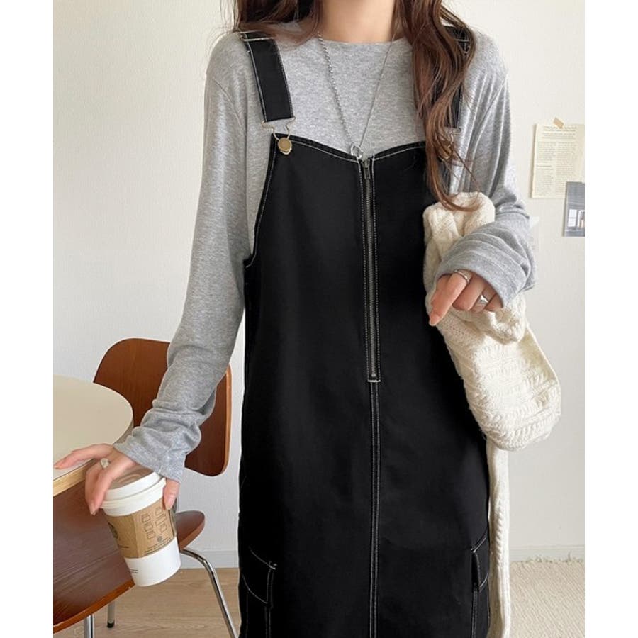 大人が着るカジュアル新定番!綿100%配色ステッチロング丈ジャンパースカート