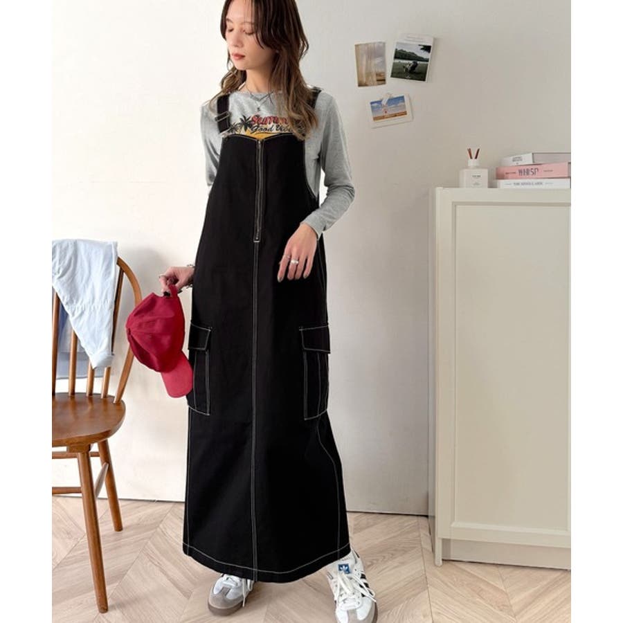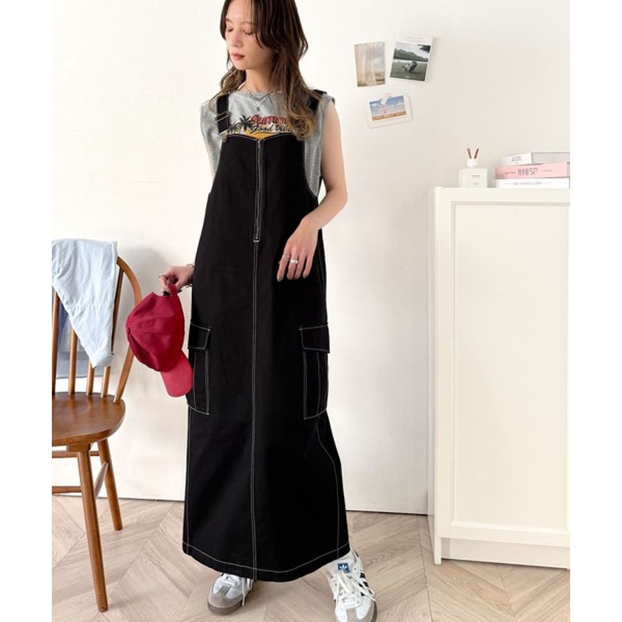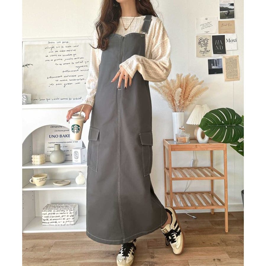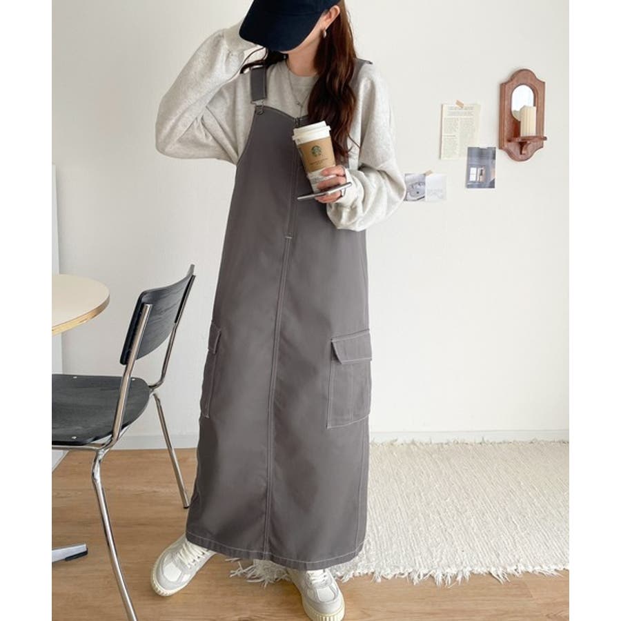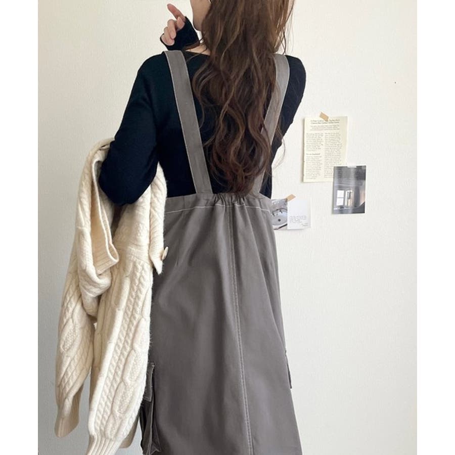 大人カジュアルに仕上げるカーゴデザインジャンパースカート。