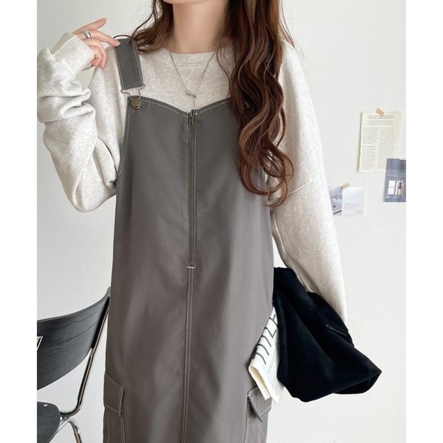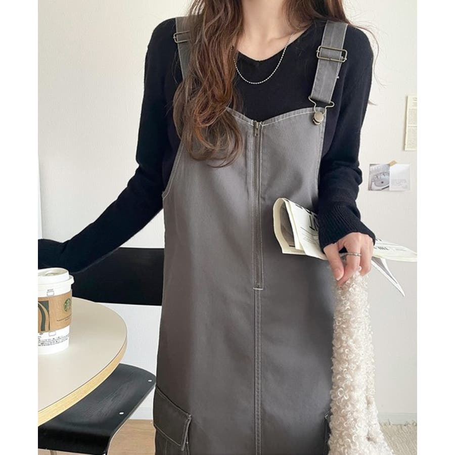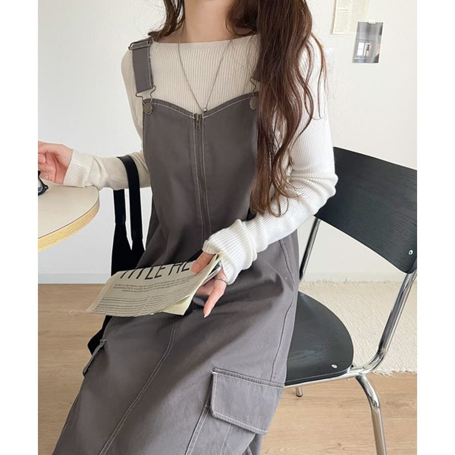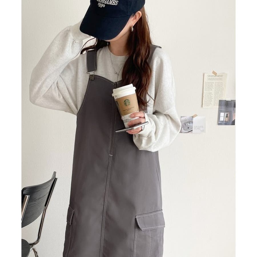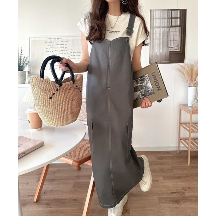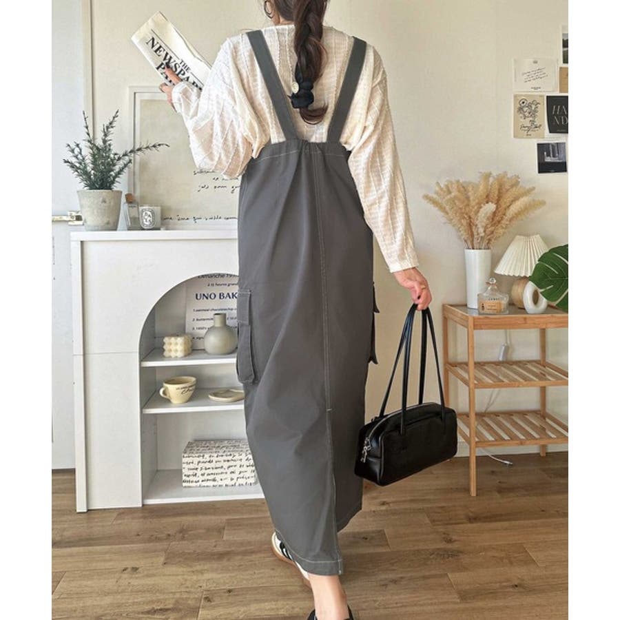 大人カジュアルに仕上げるカーゴデザインジャンパースカート。