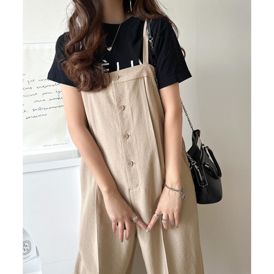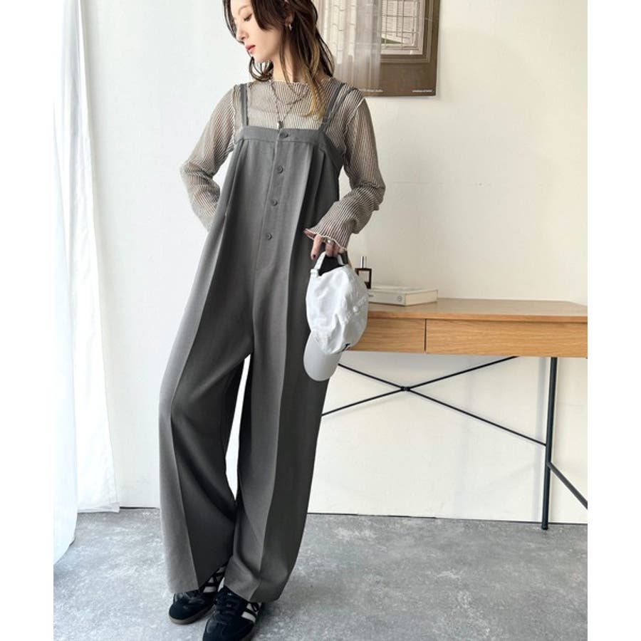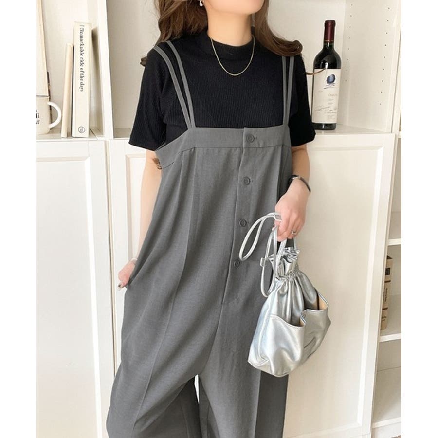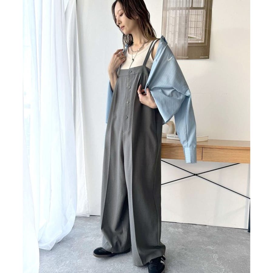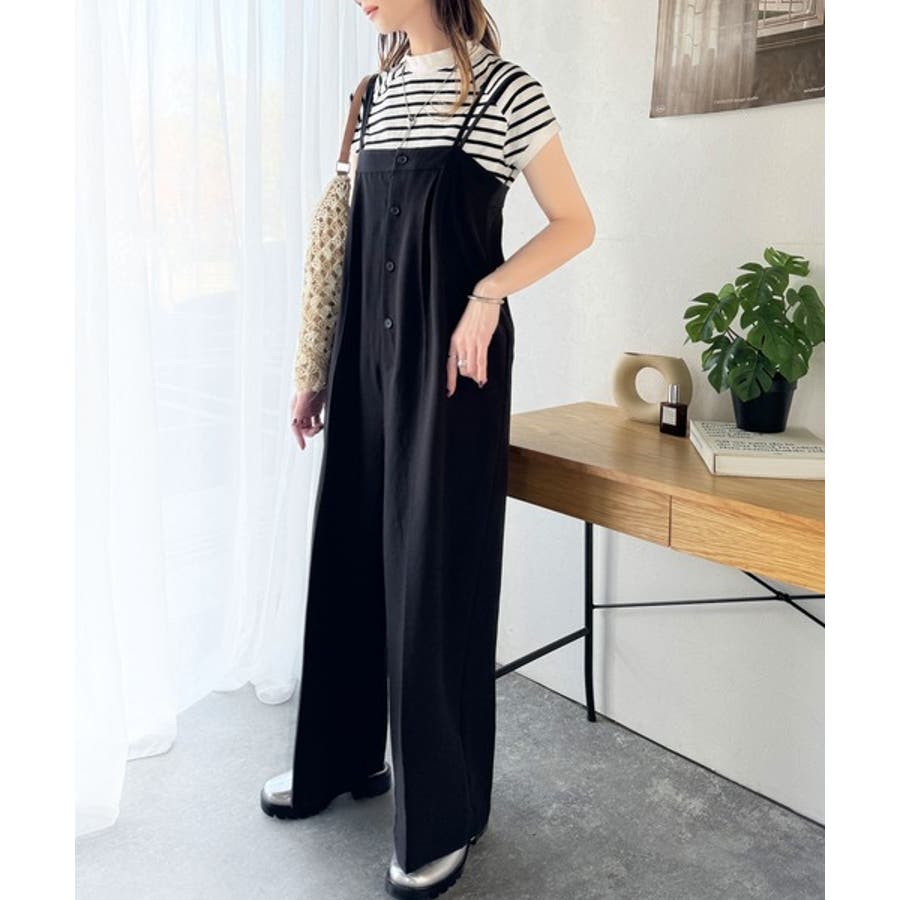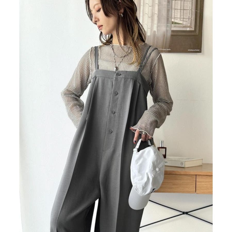大人のこなれカジュアル。フロントボタン使いサロペットパンツ