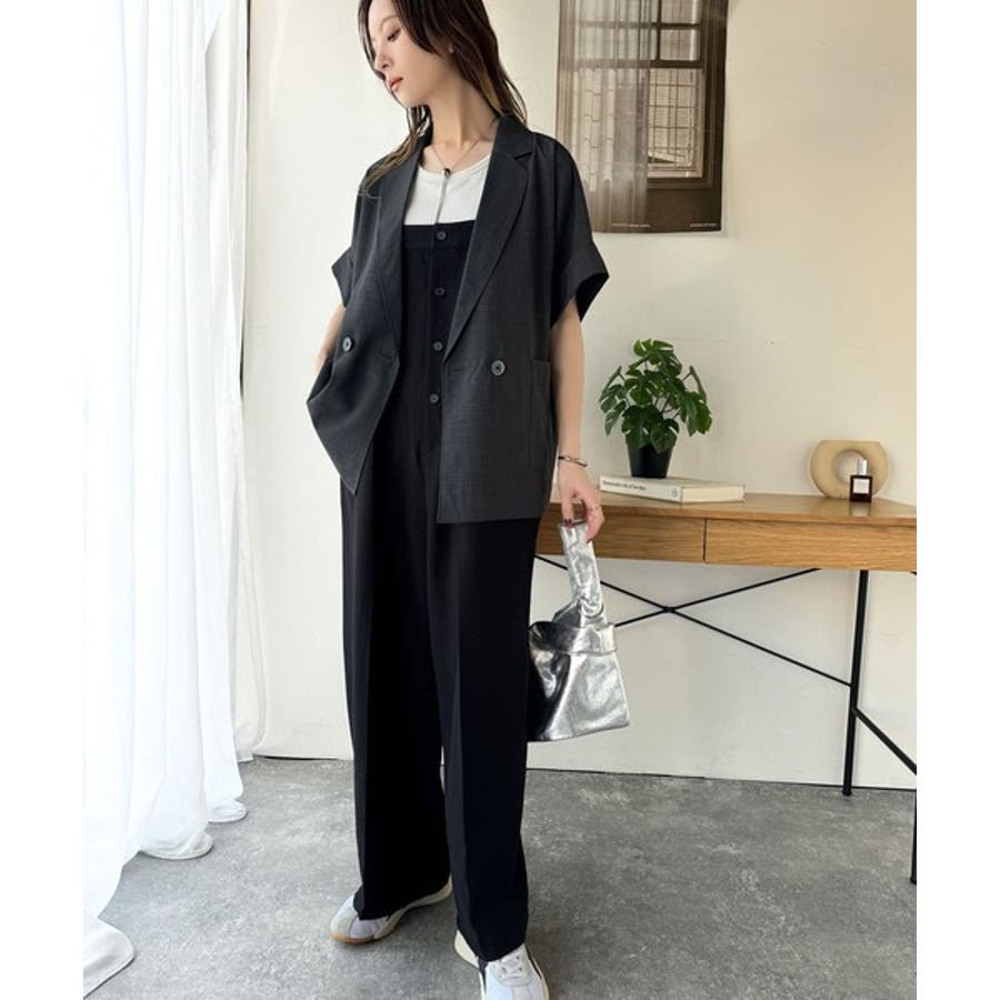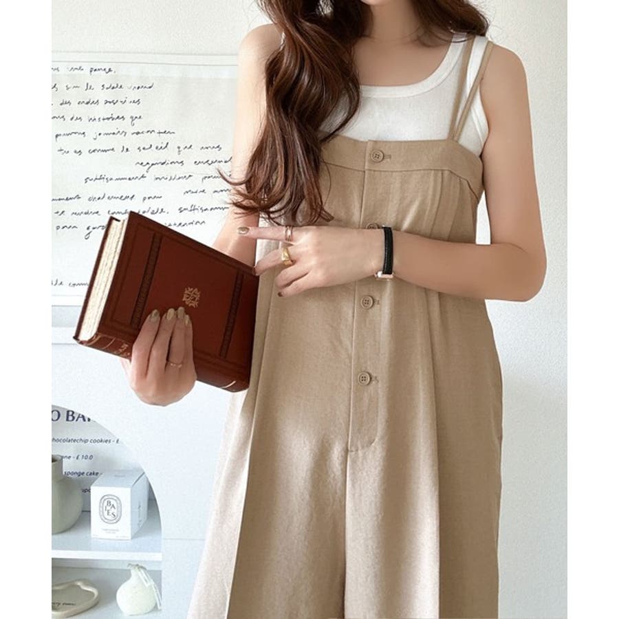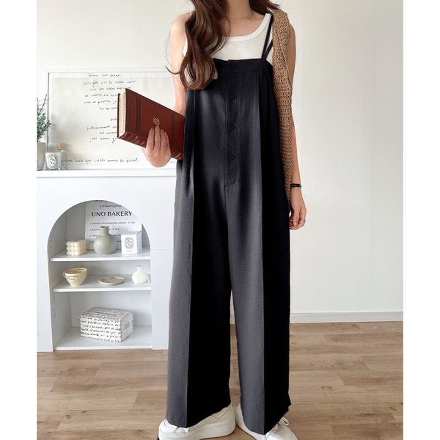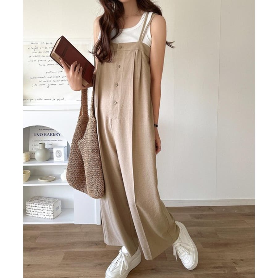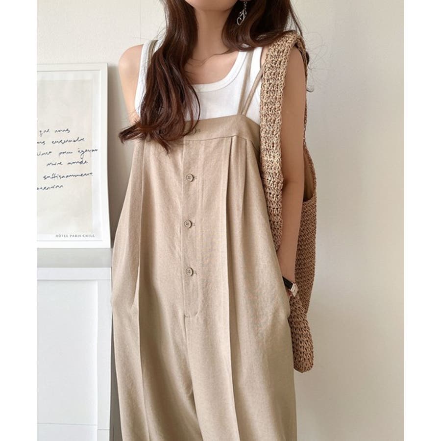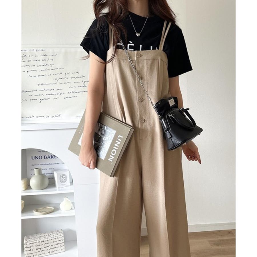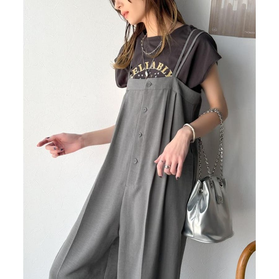 大人のこなれカジュアル。フロントボタン使いサロペットパンツ