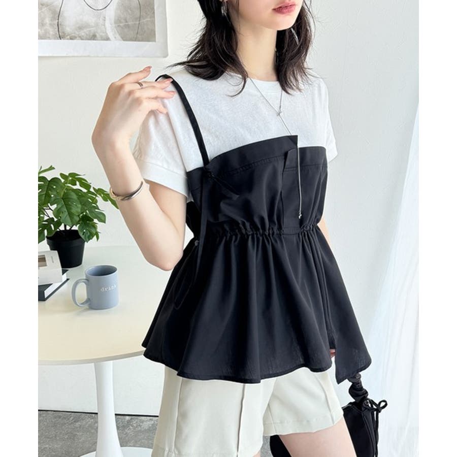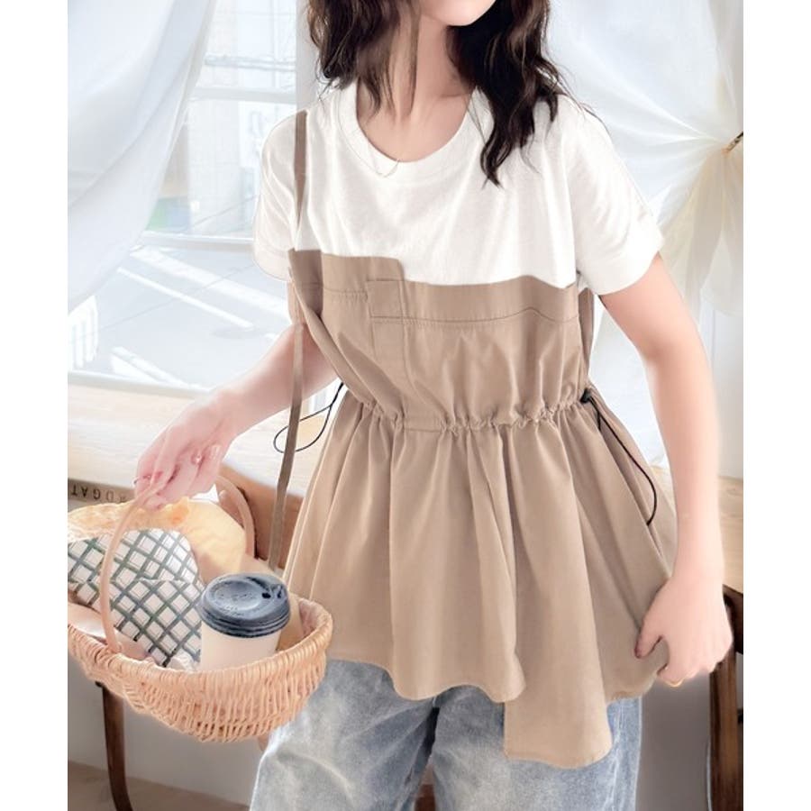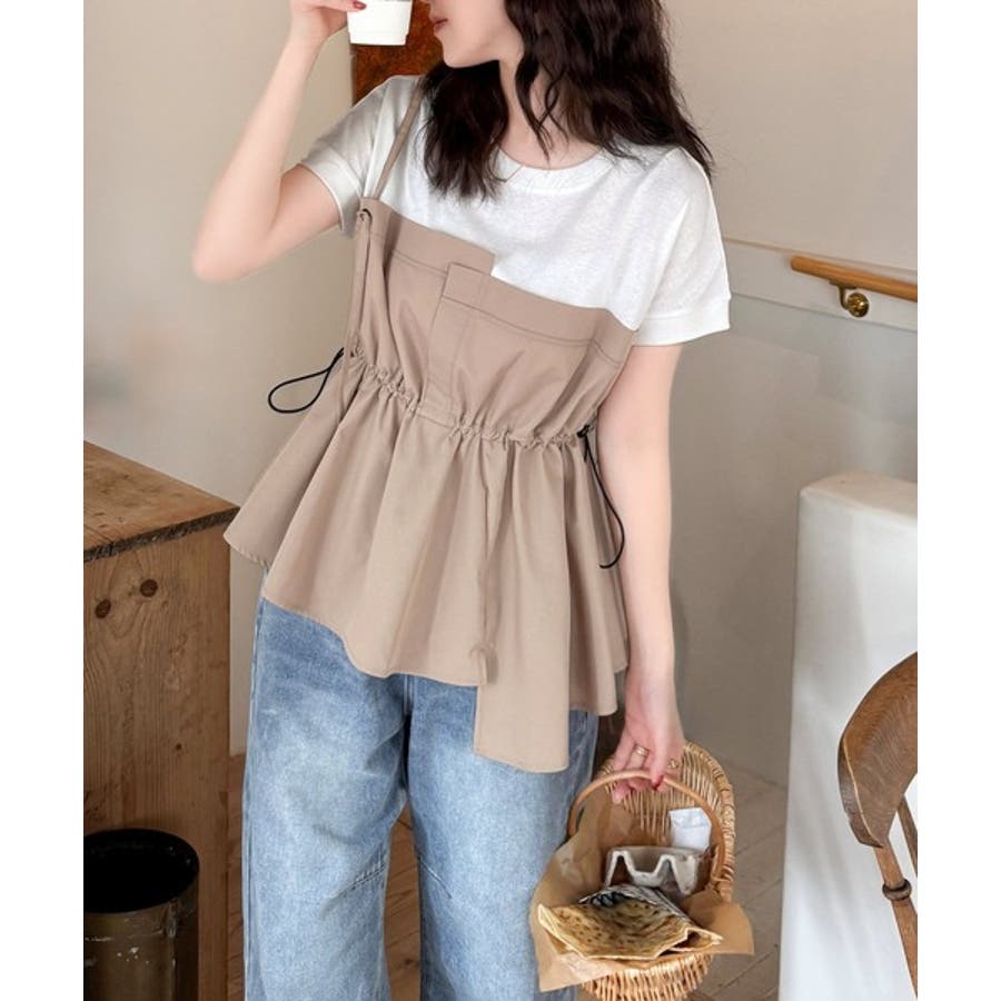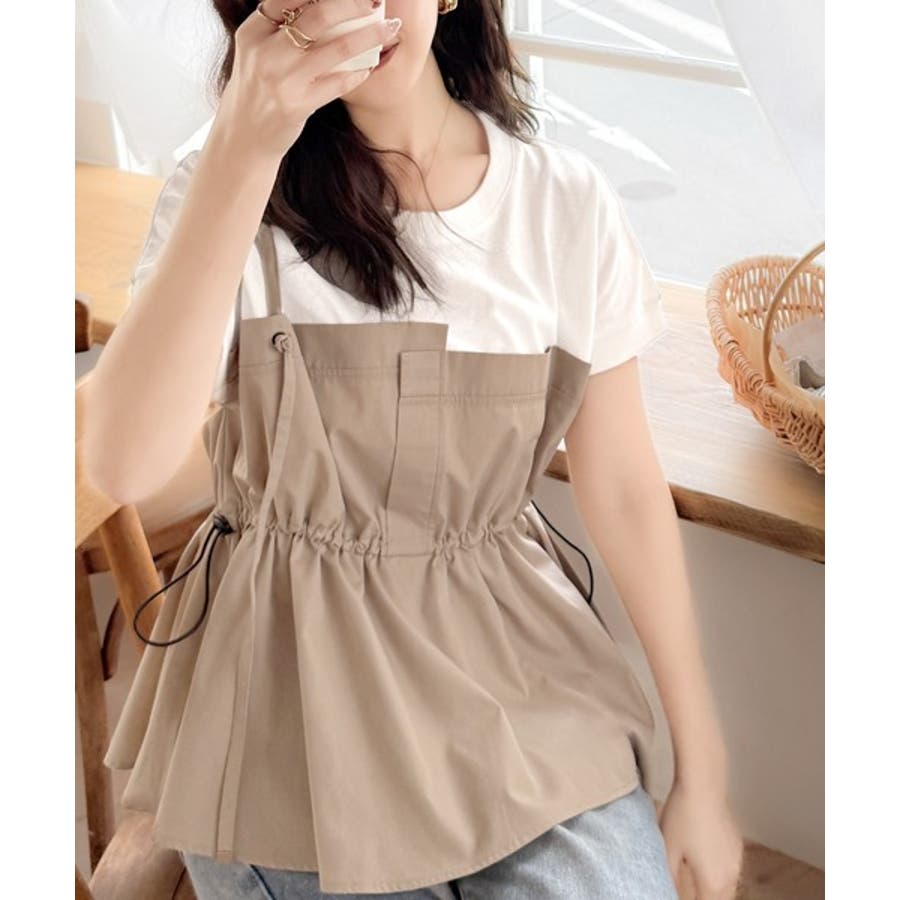 重ね着風のトップス可愛いですビスチェ部分はシャカシャカした生地ですおしりにかかる丈がスタイル良く見えます
