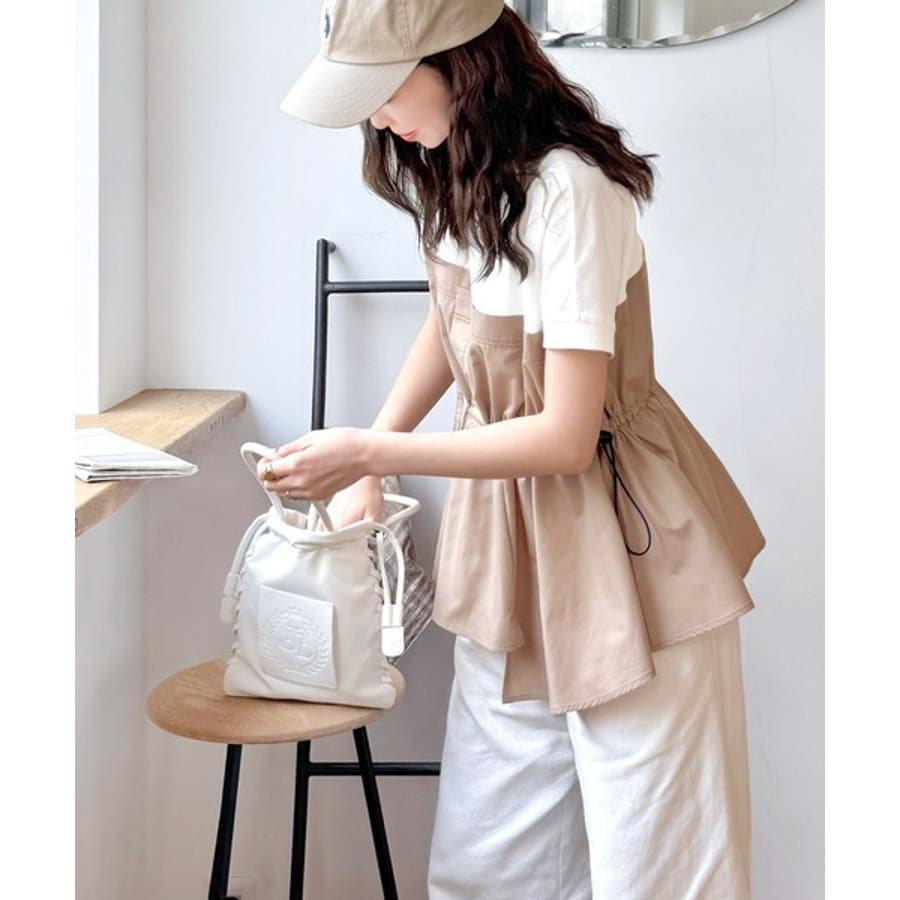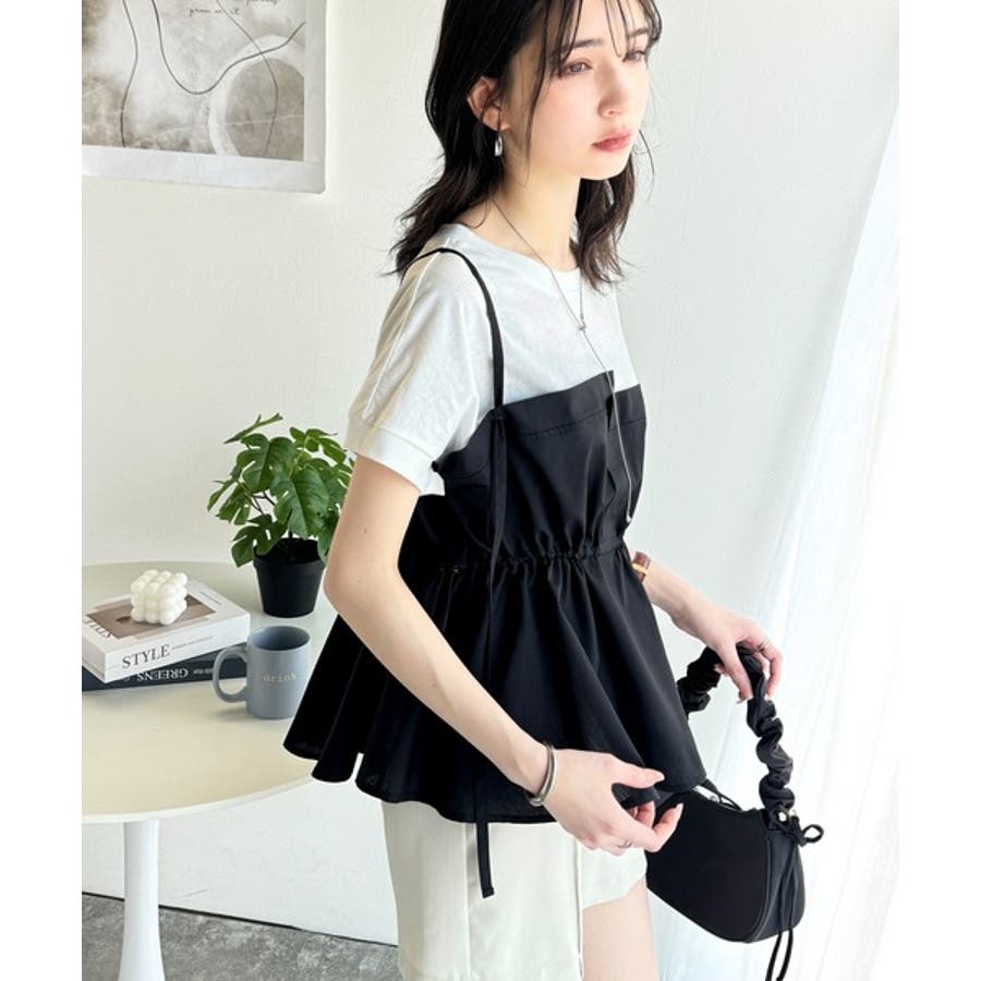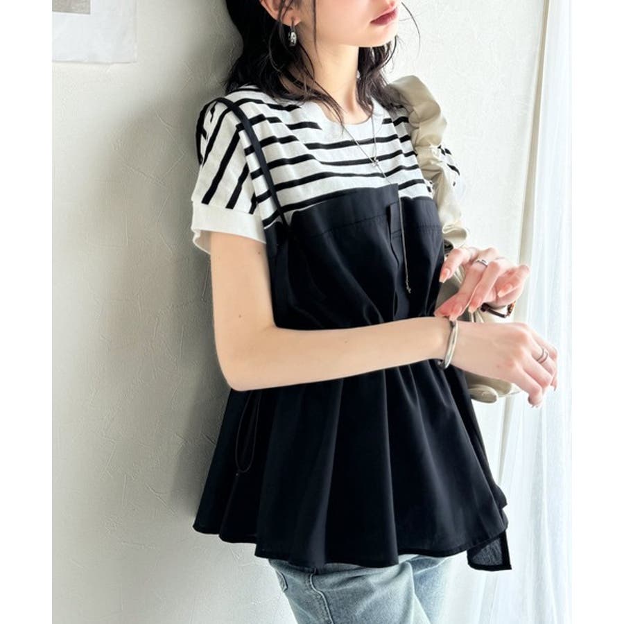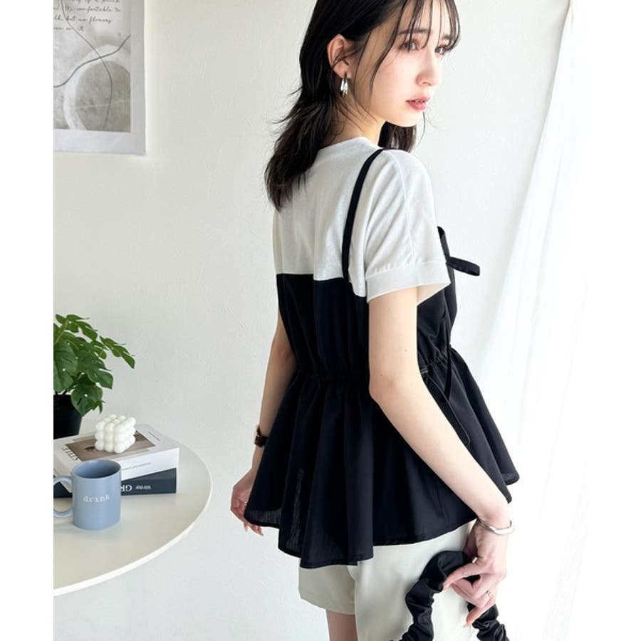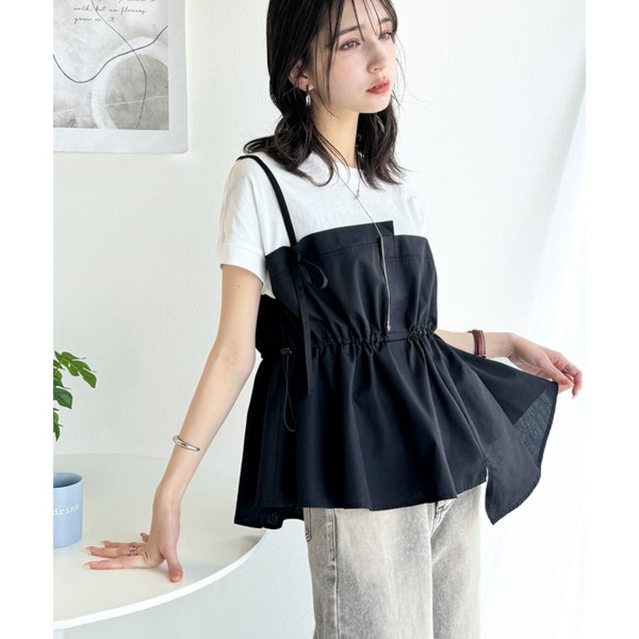 重ね着風のトップス可愛いですビスチェ部分はシャカシャカした生地ですおしりにかかる丈がスタイル良く見えます