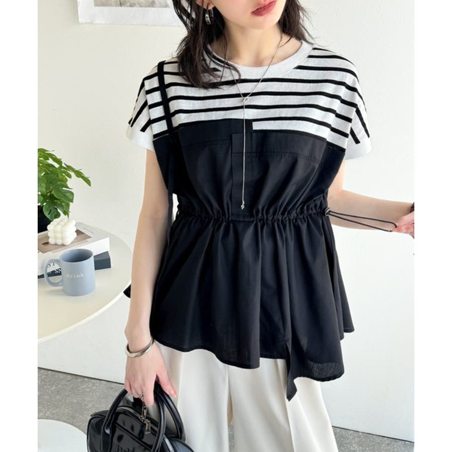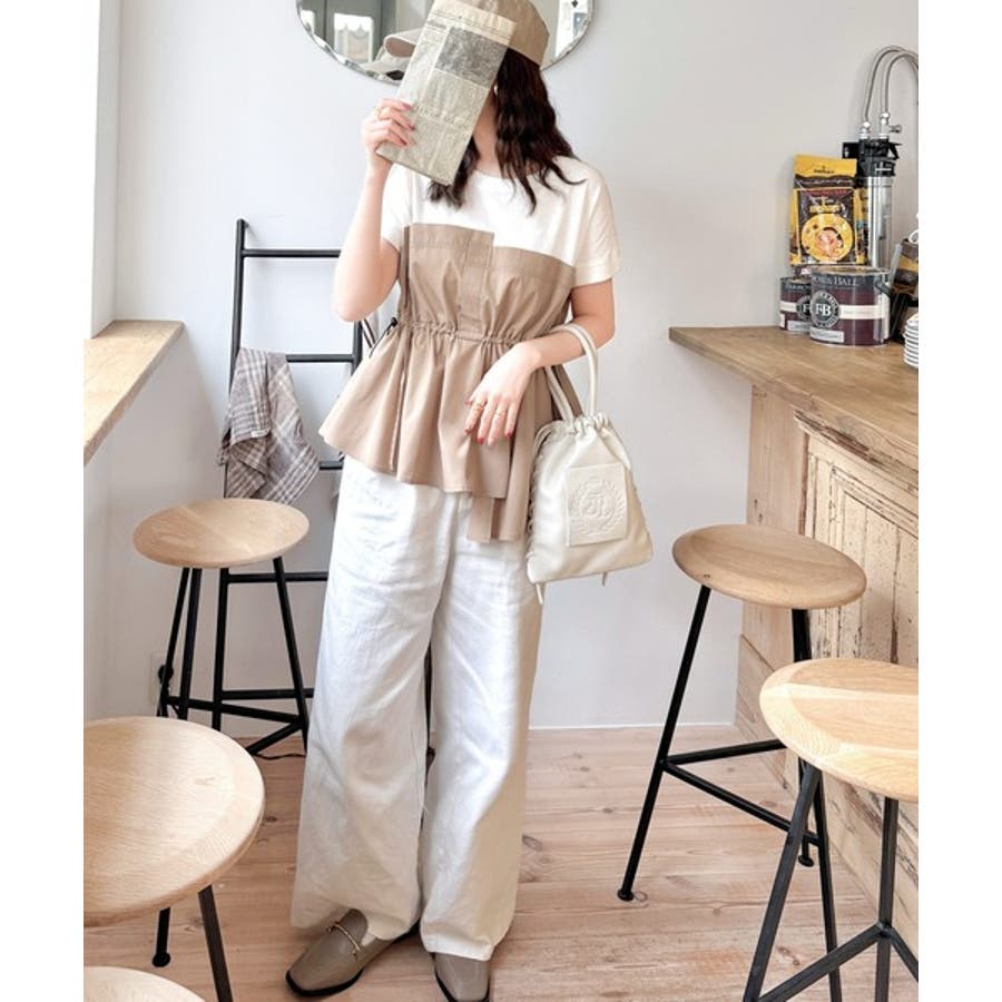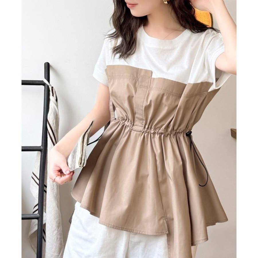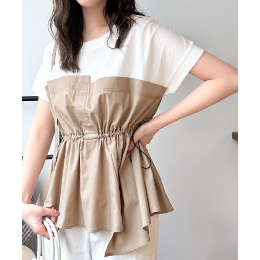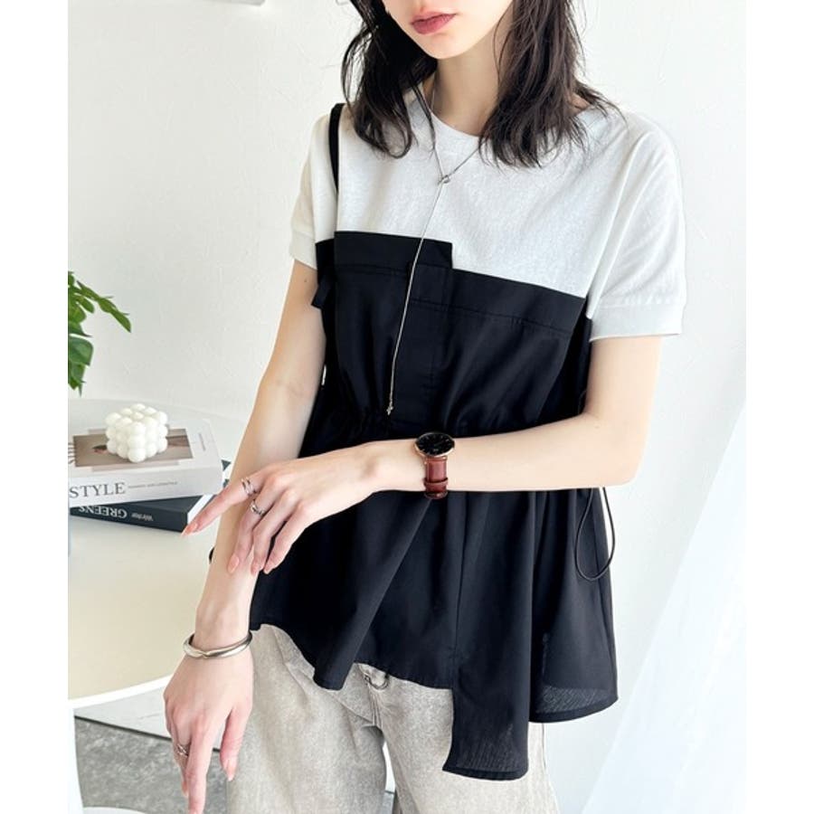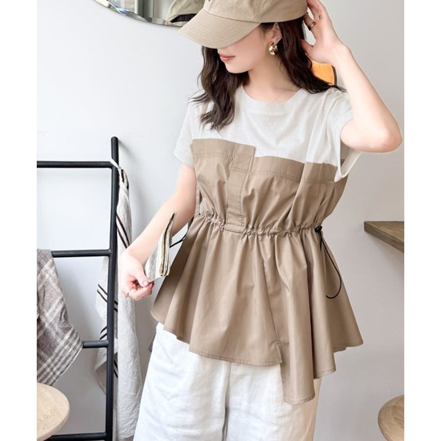 上部はさらりとした綿100%のTシャツ、下部は軽やかな布帛素材で作られ、異素材の組み合わせが新鮮。