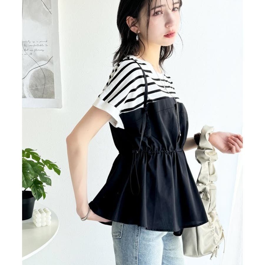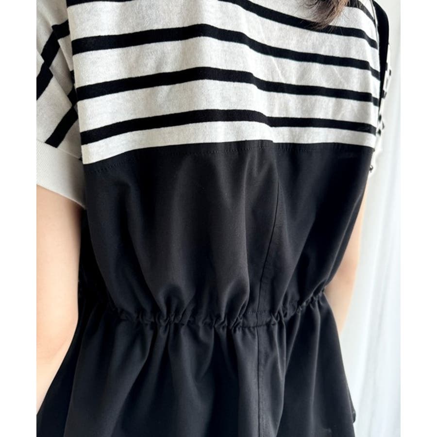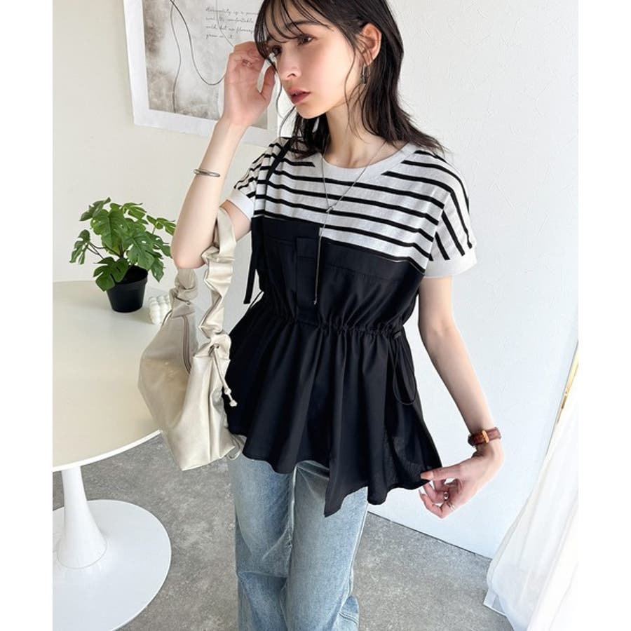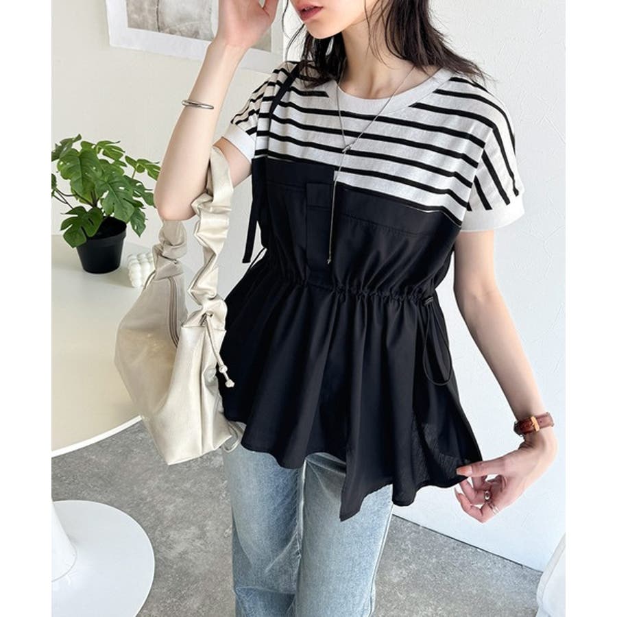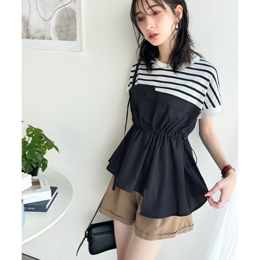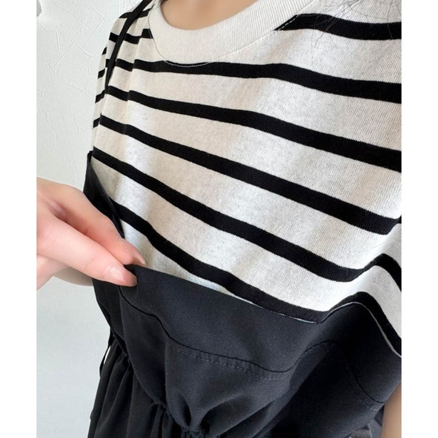 上部はさらりとした綿100%のTシャツ、下部は軽やかな布帛素材で作られ、異素材の組み合わせが新鮮。