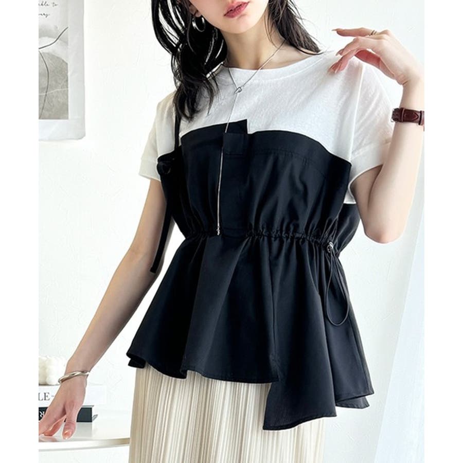 大人の女性のためにデザインされたアシメトリーのレイヤード風トップス。
