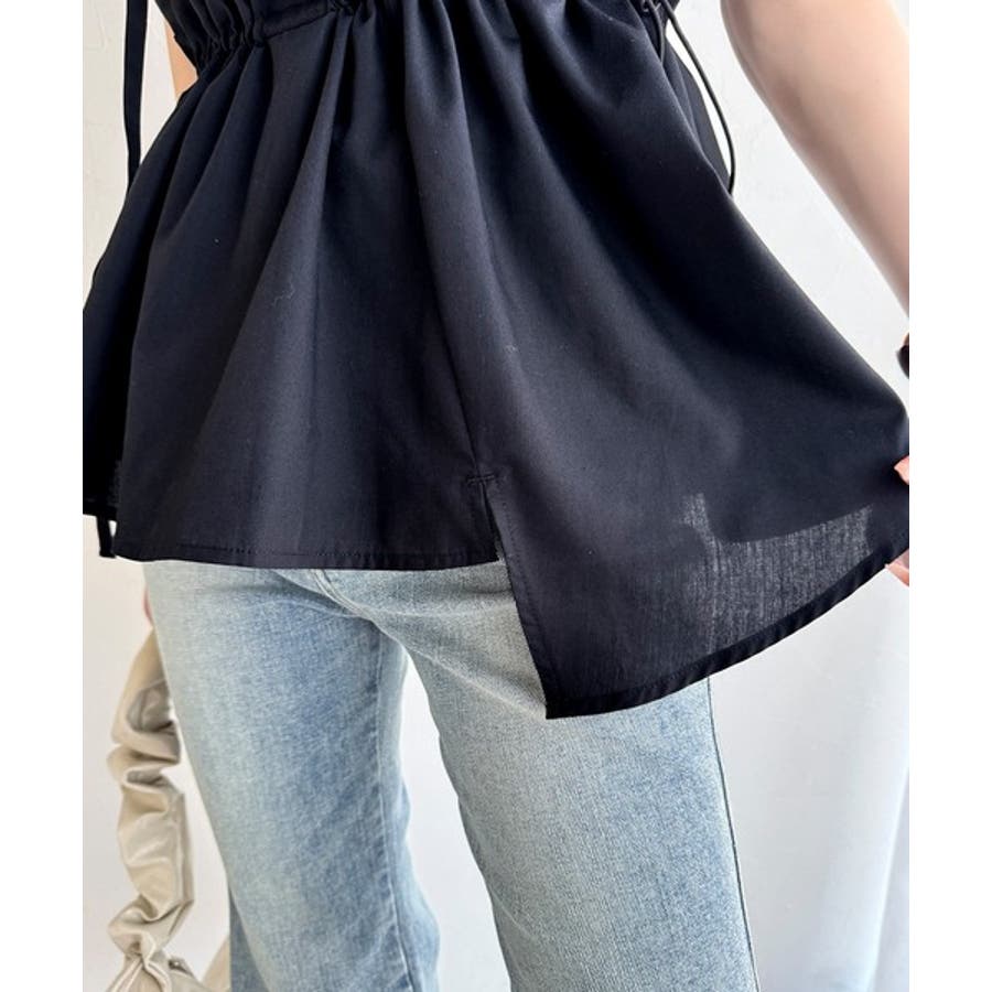 前面にはドローストリングが施されており、ウエストラインを自由に調節して、より女性らしいシルエットに♪