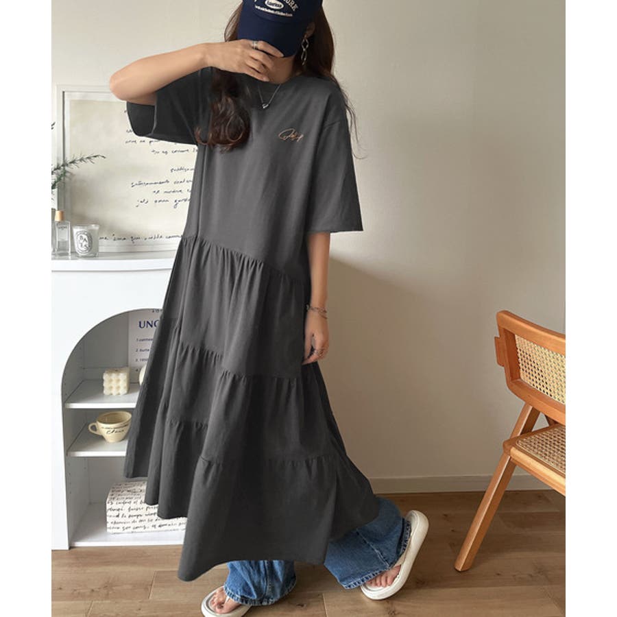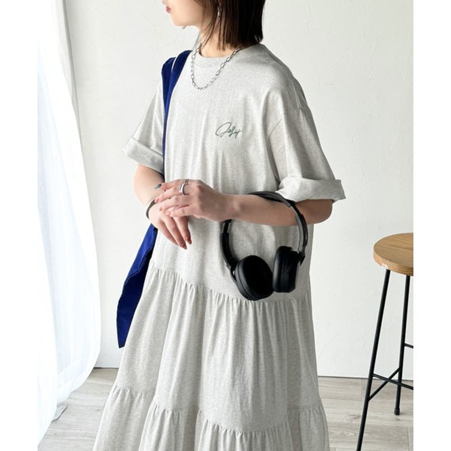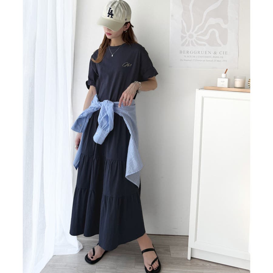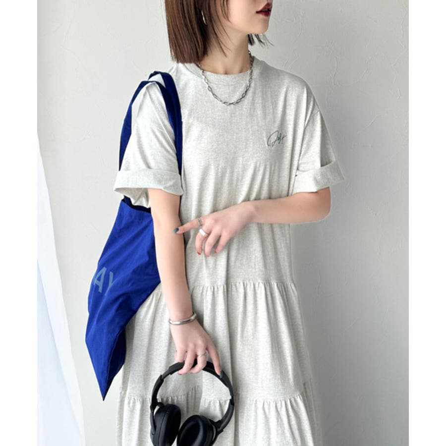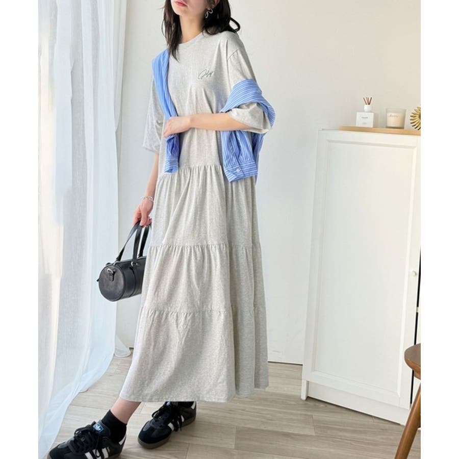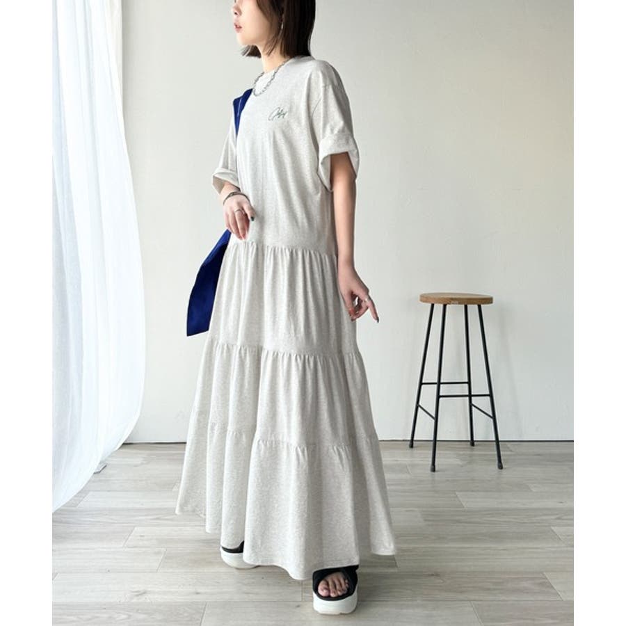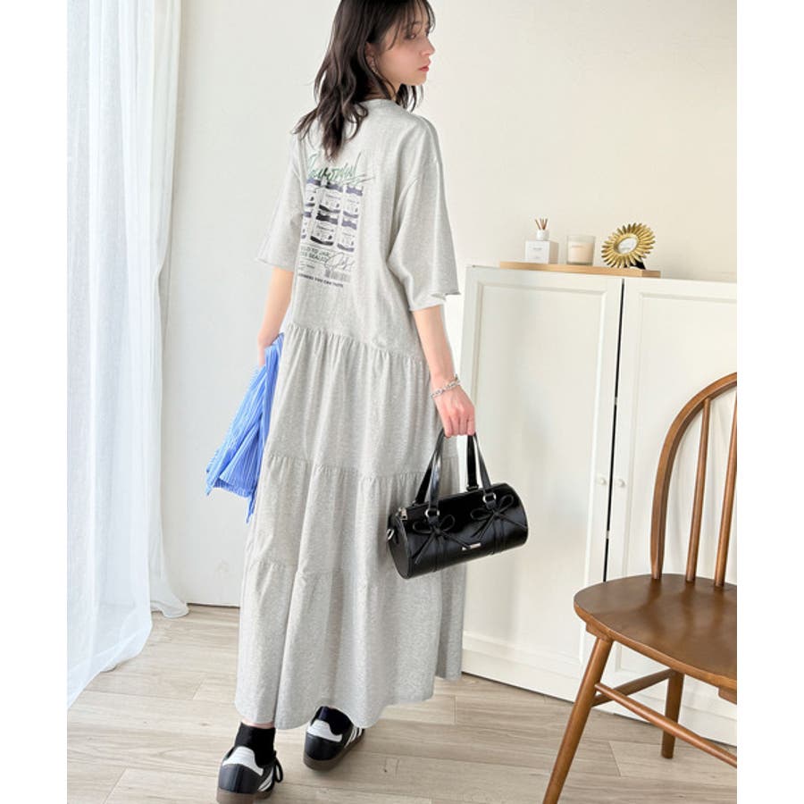 やさしい着心地◎綿100%バックロゴプリントティアードワンピース(ロング丈)