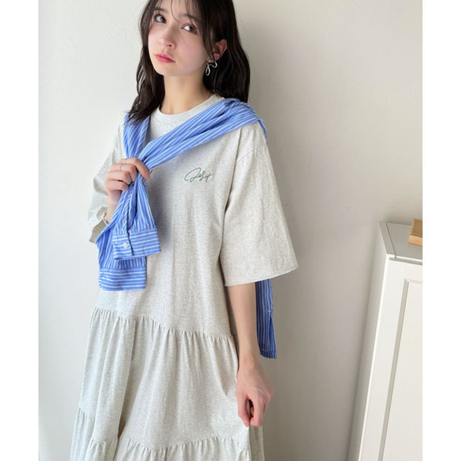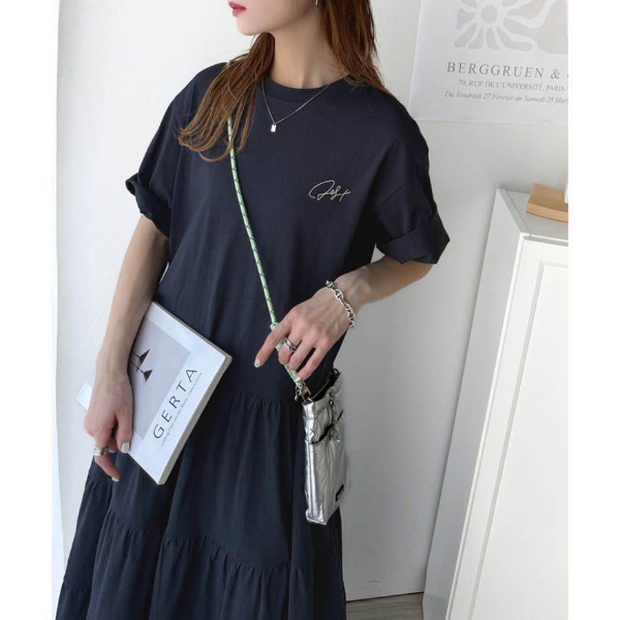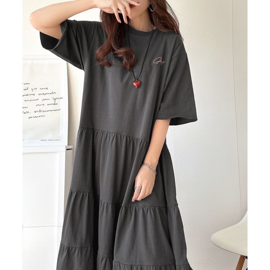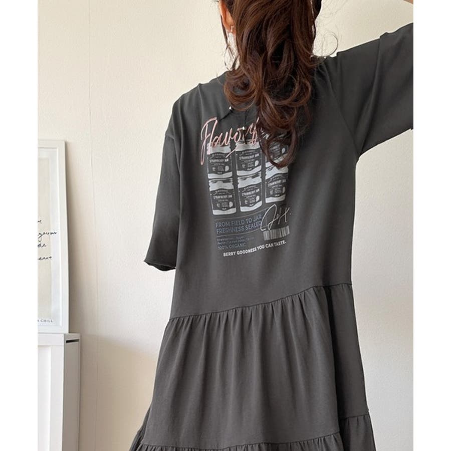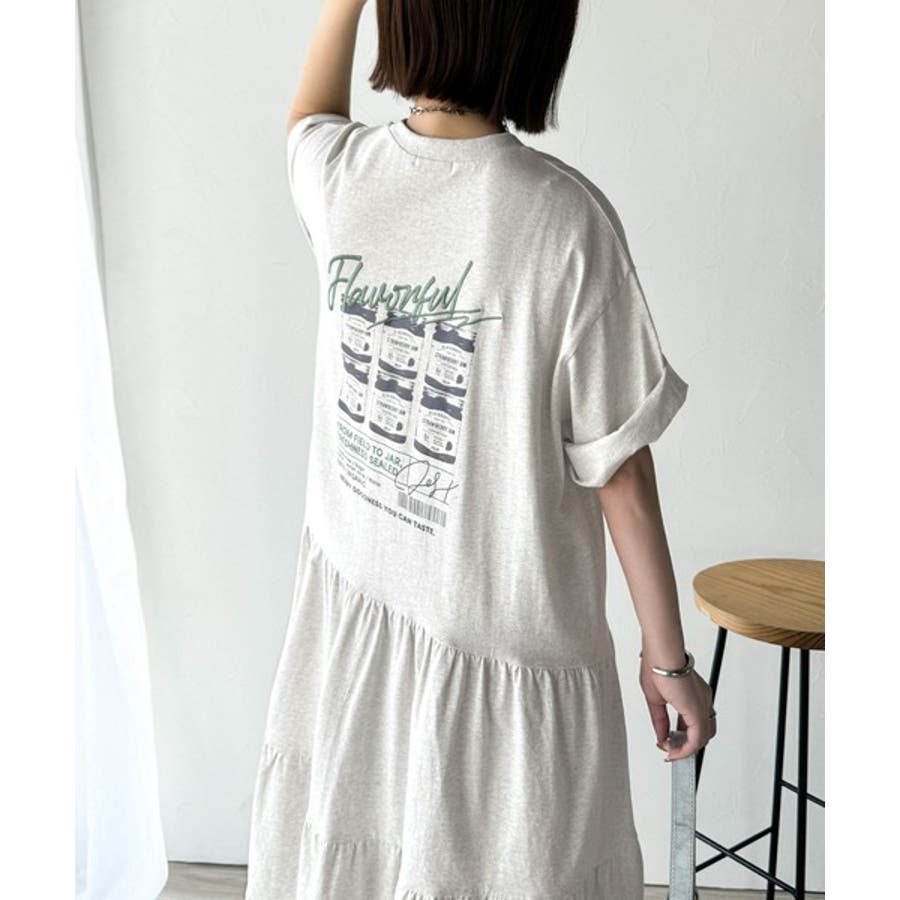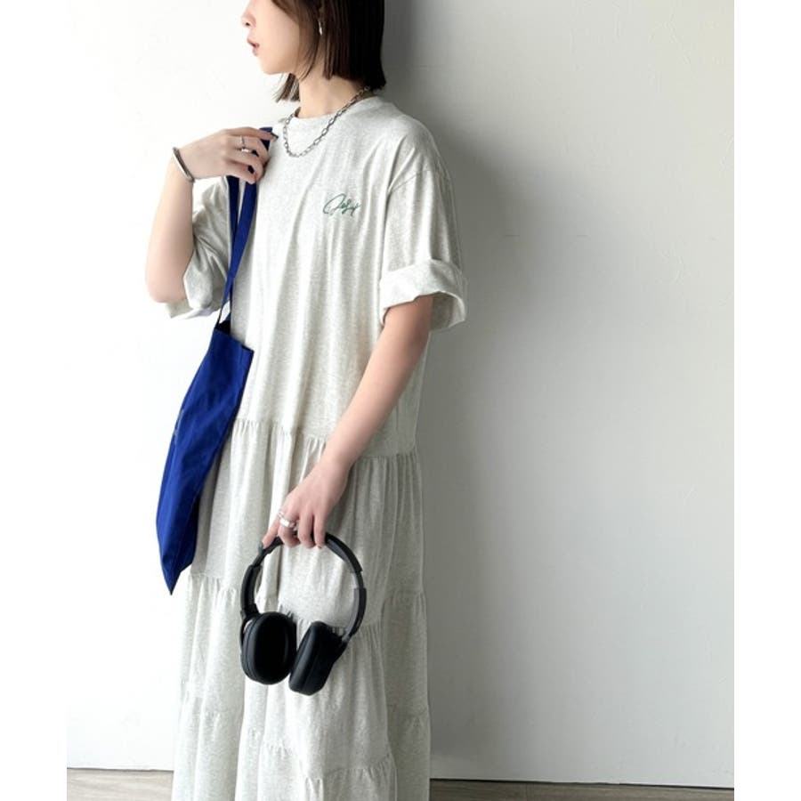 やさしい着心地◎綿100%バックロゴプリントティアードワンピース(ロング丈)