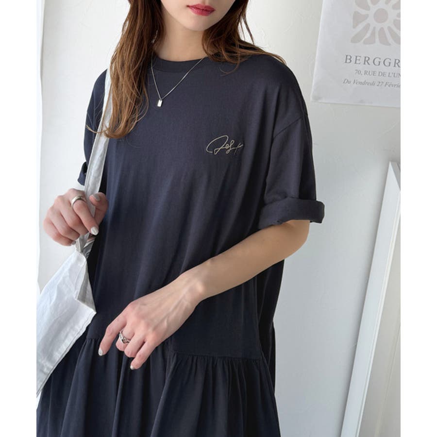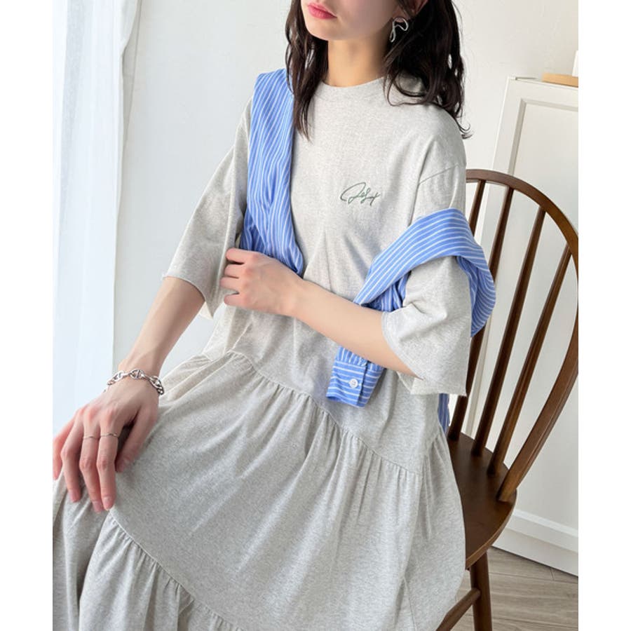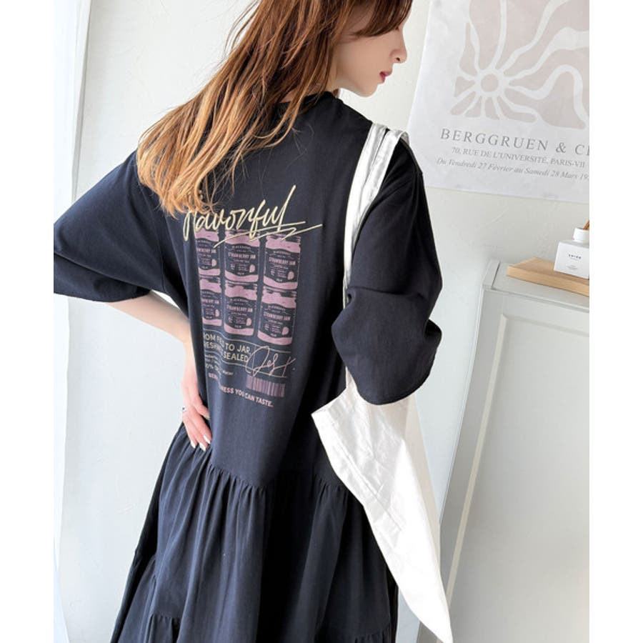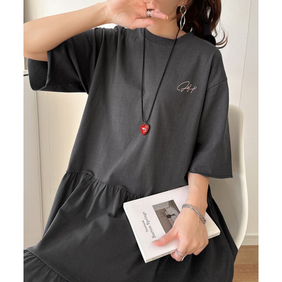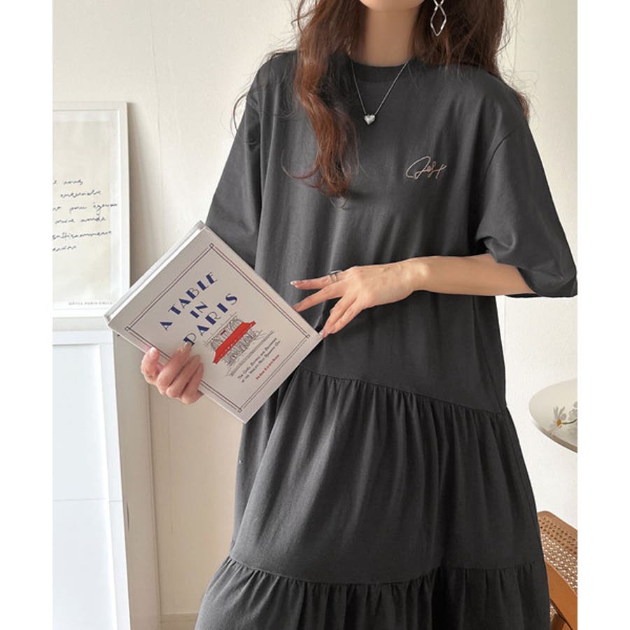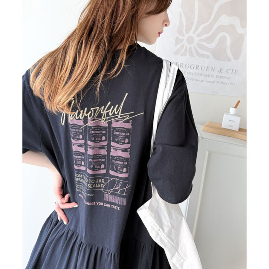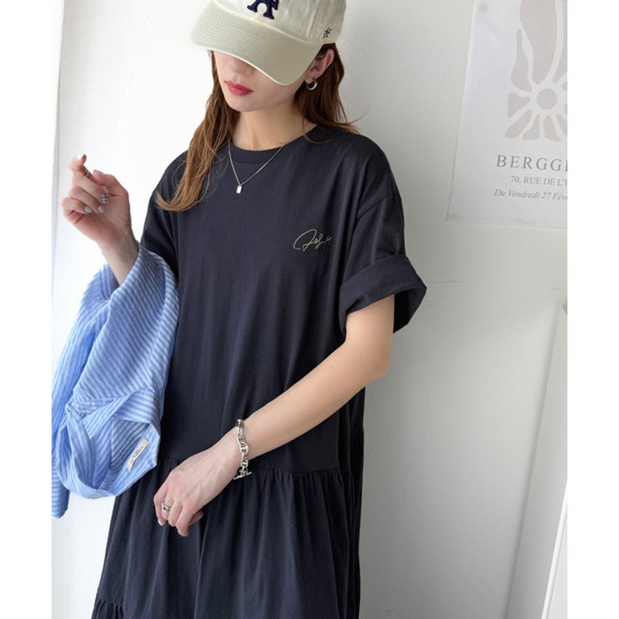 やさしい着心地◎綿100%バックロゴプリントティアードワンピース(ロング丈)