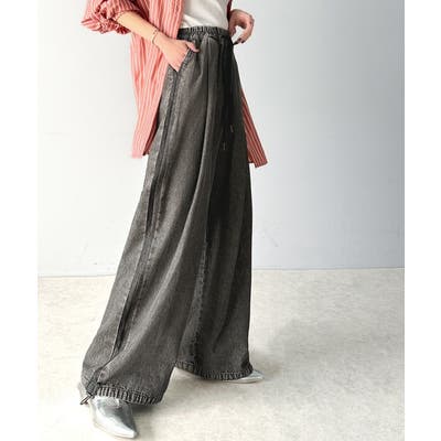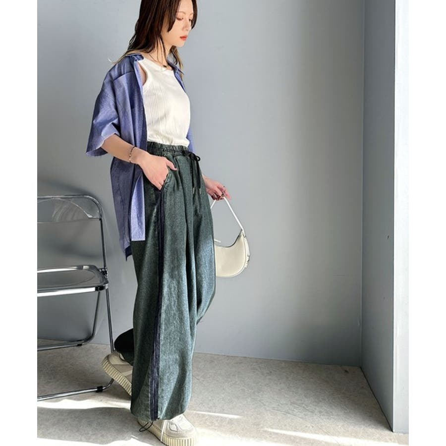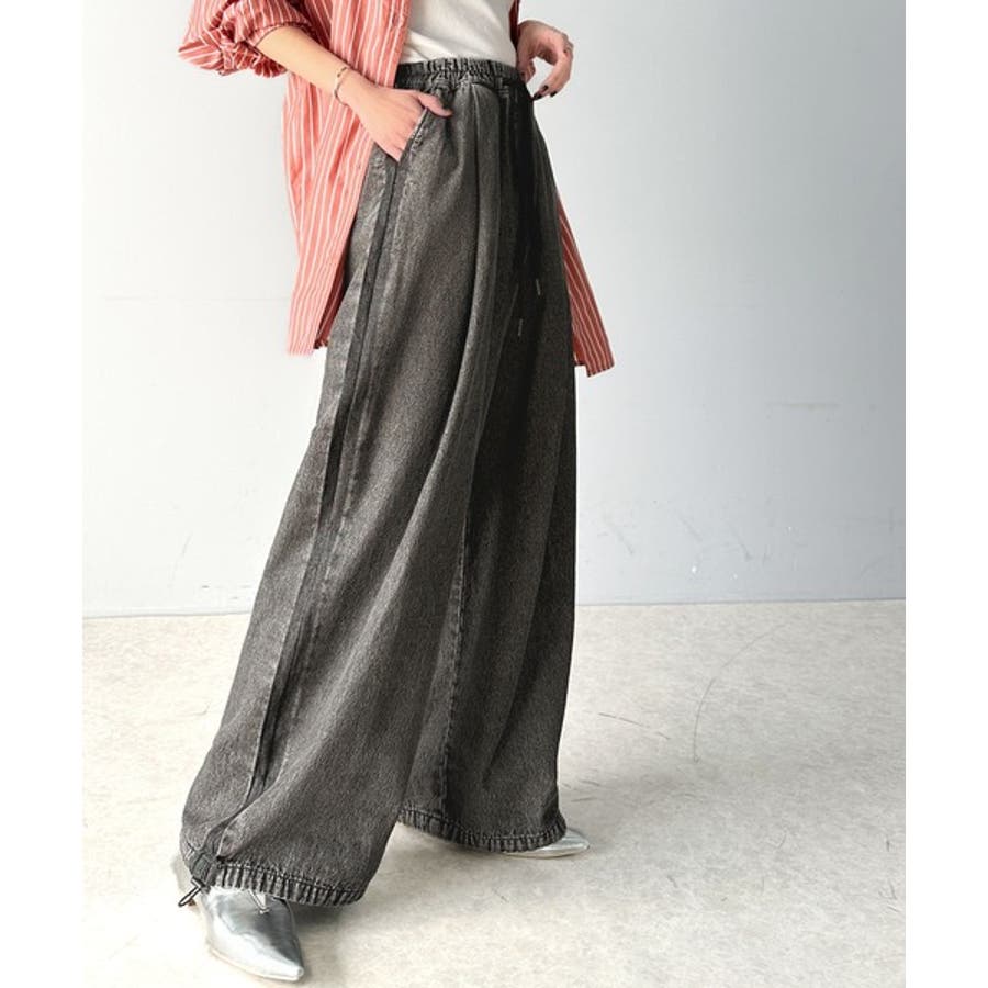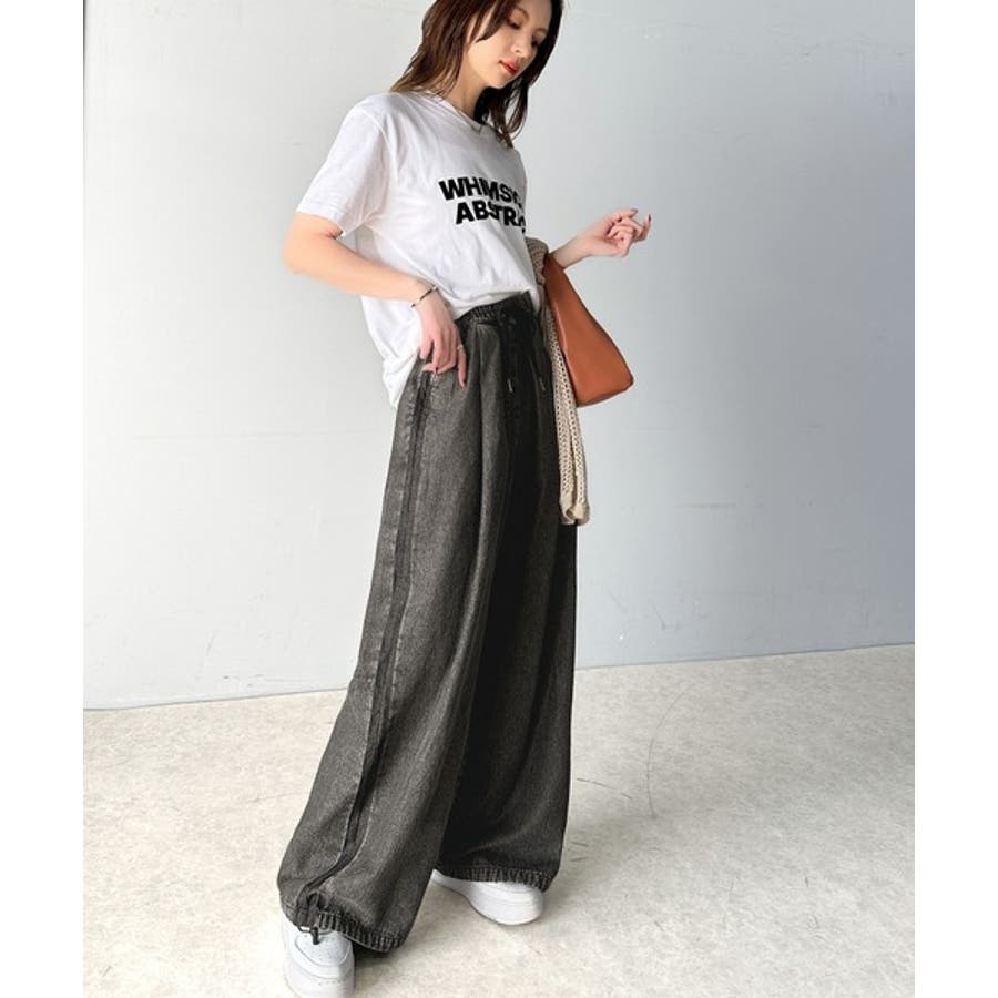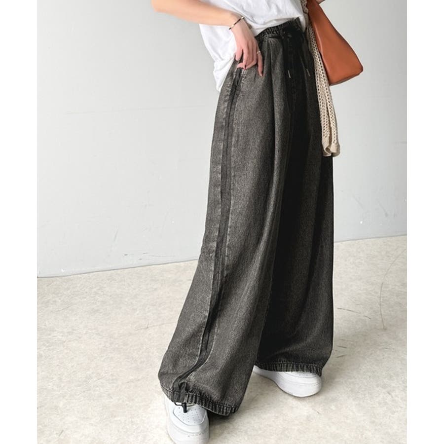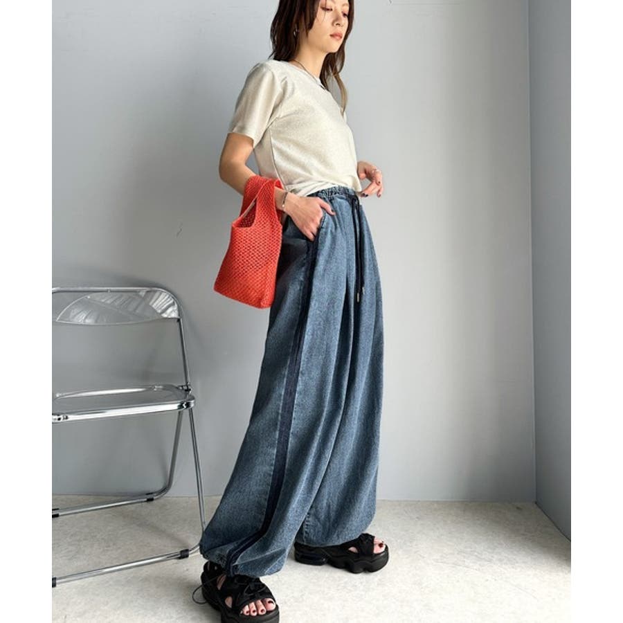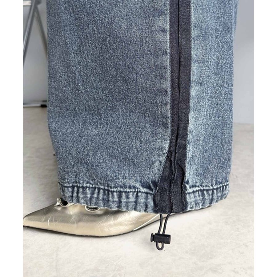 環境に優しいサステナブル素材。綿100%デニム素材サイドラインワイドイージーパン…