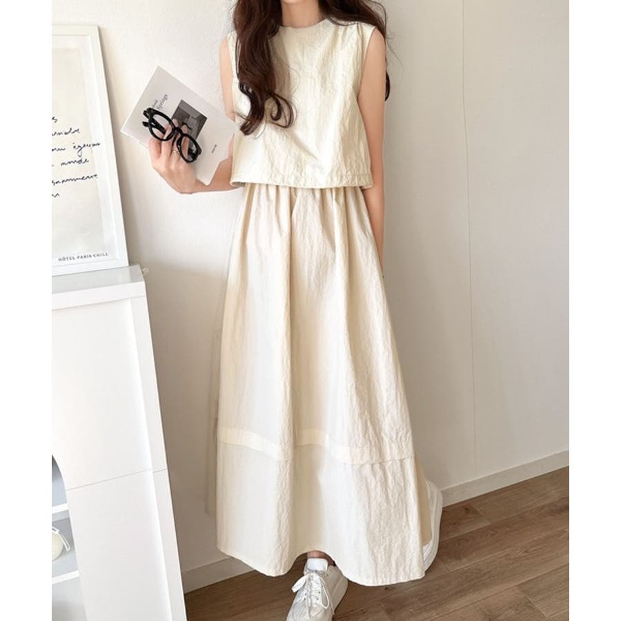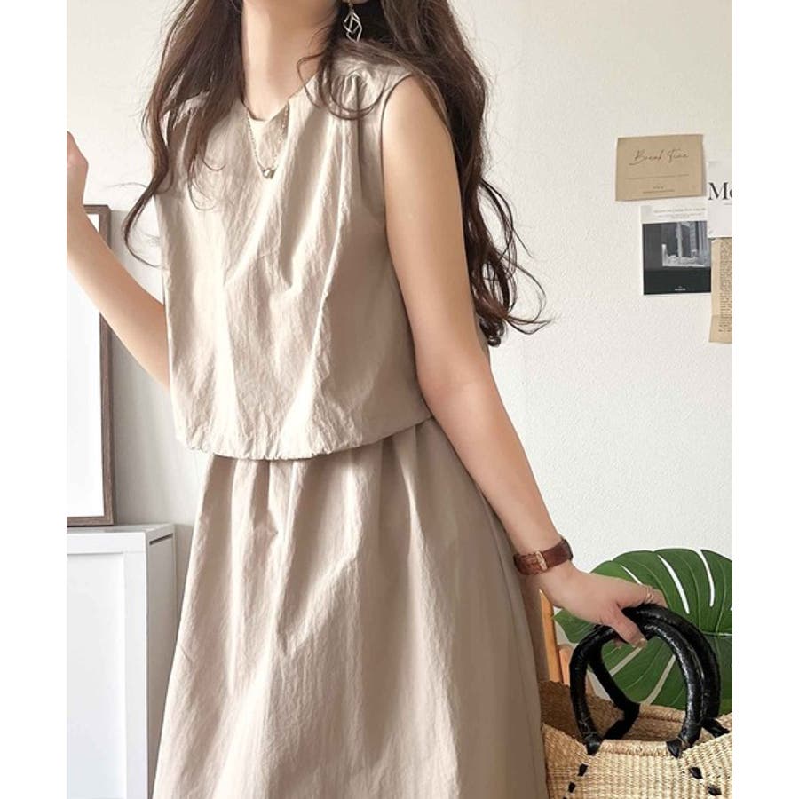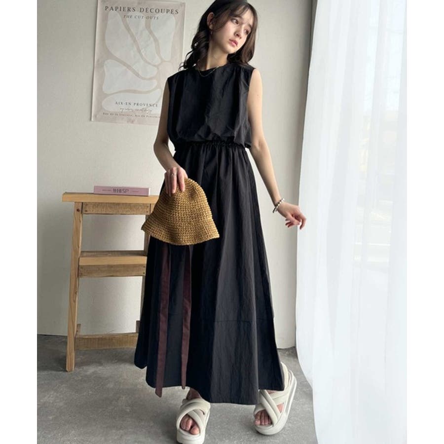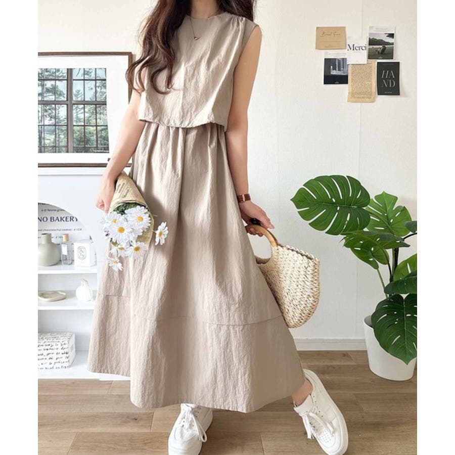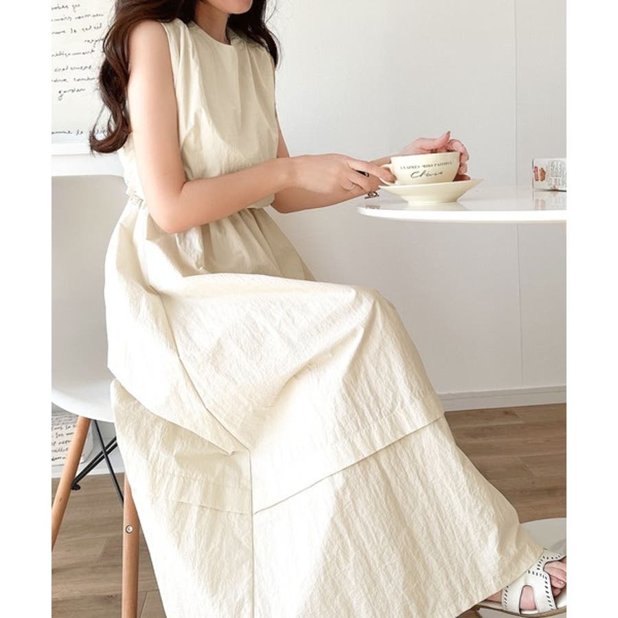 1枚で即お洒落見え。セットアップ風Aラインノースリーブロングワンピース