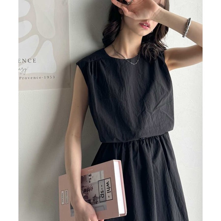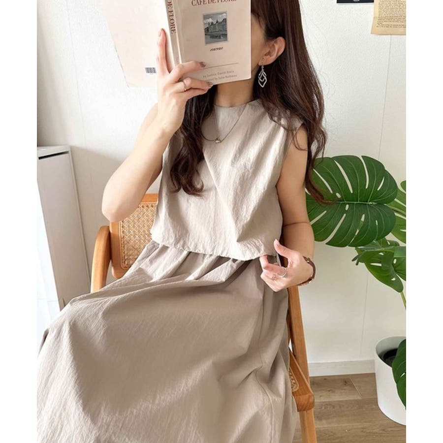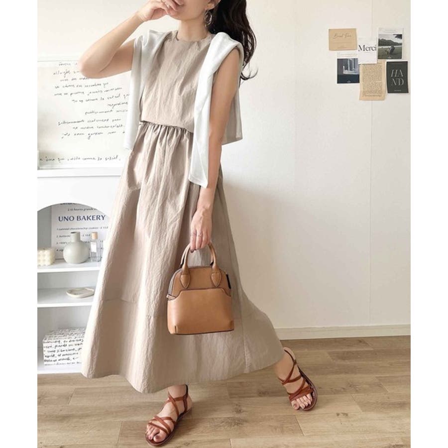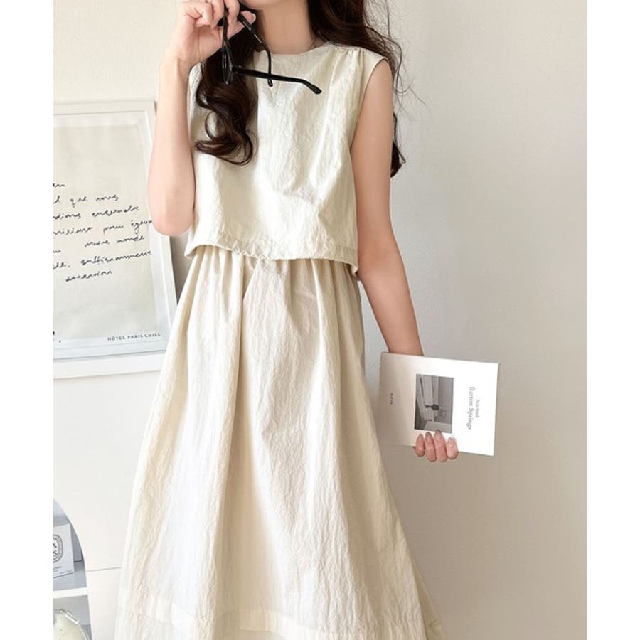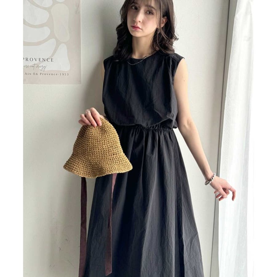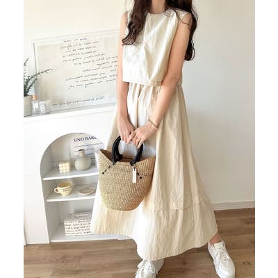 1枚で即お洒落見え。セットアップ風Aラインノースリーブロングワンピース