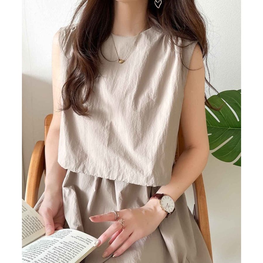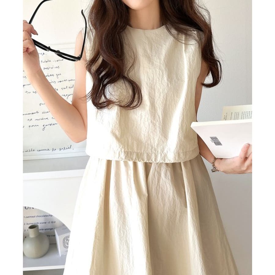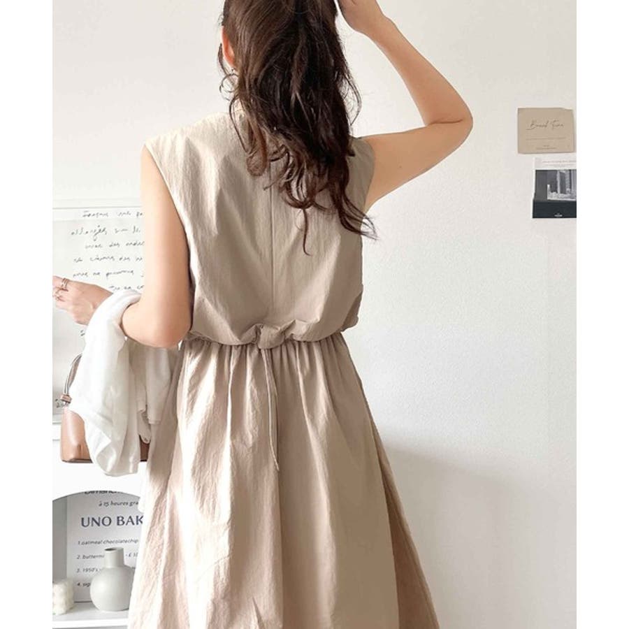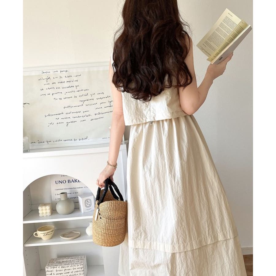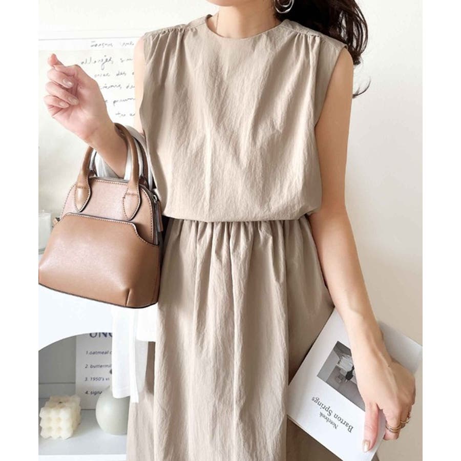 1枚で即お洒落見え。セットアップ風Aラインノースリーブロングワンピース