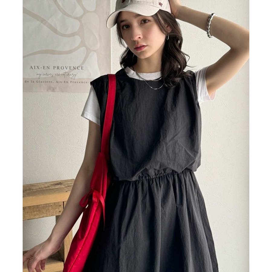 こなれ感たっぷりのセットアップ風ナイロンワンピ