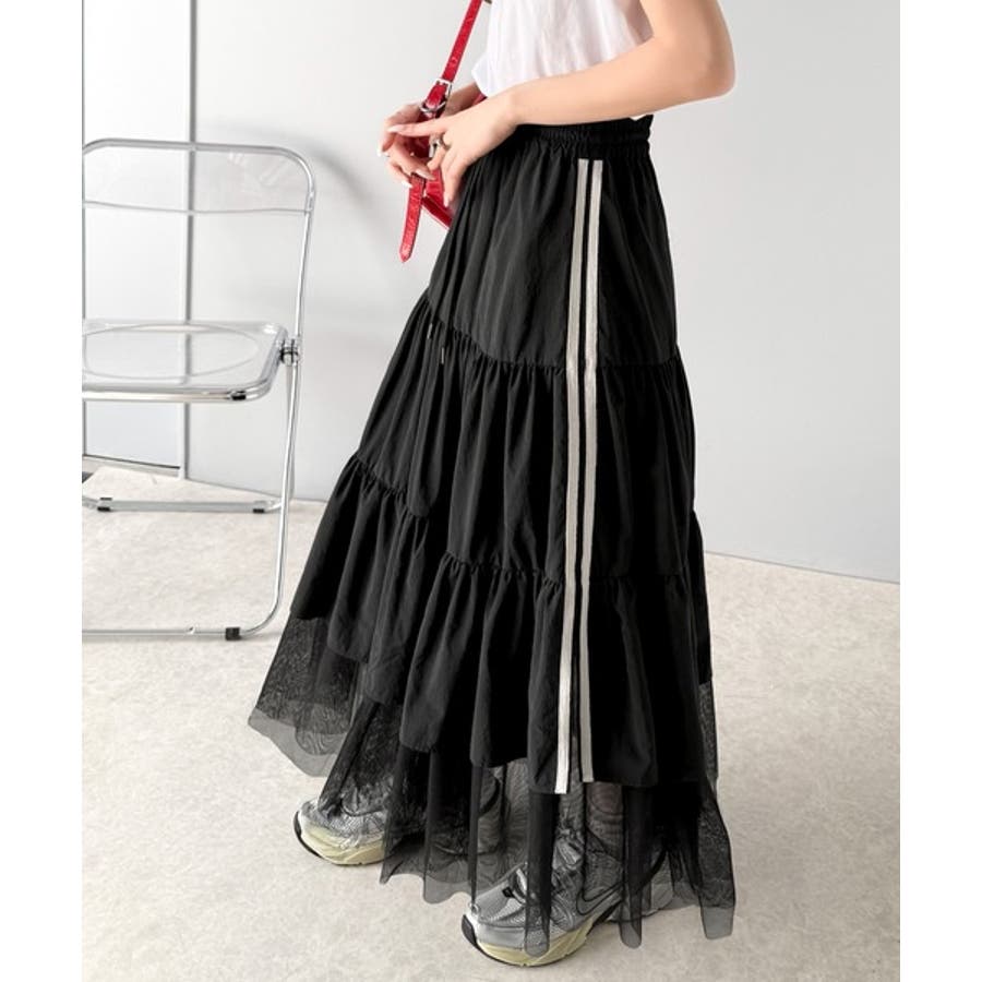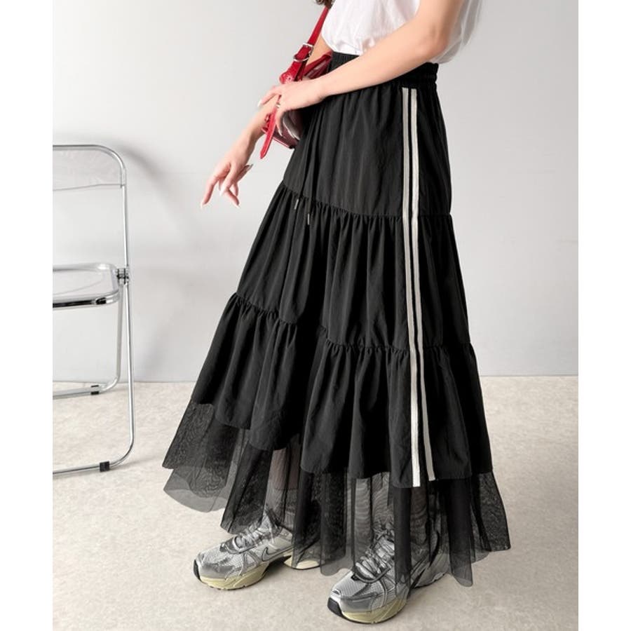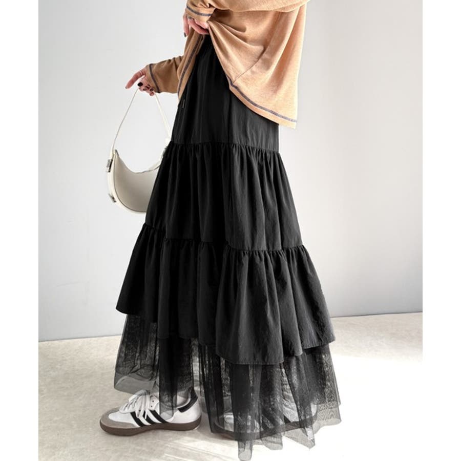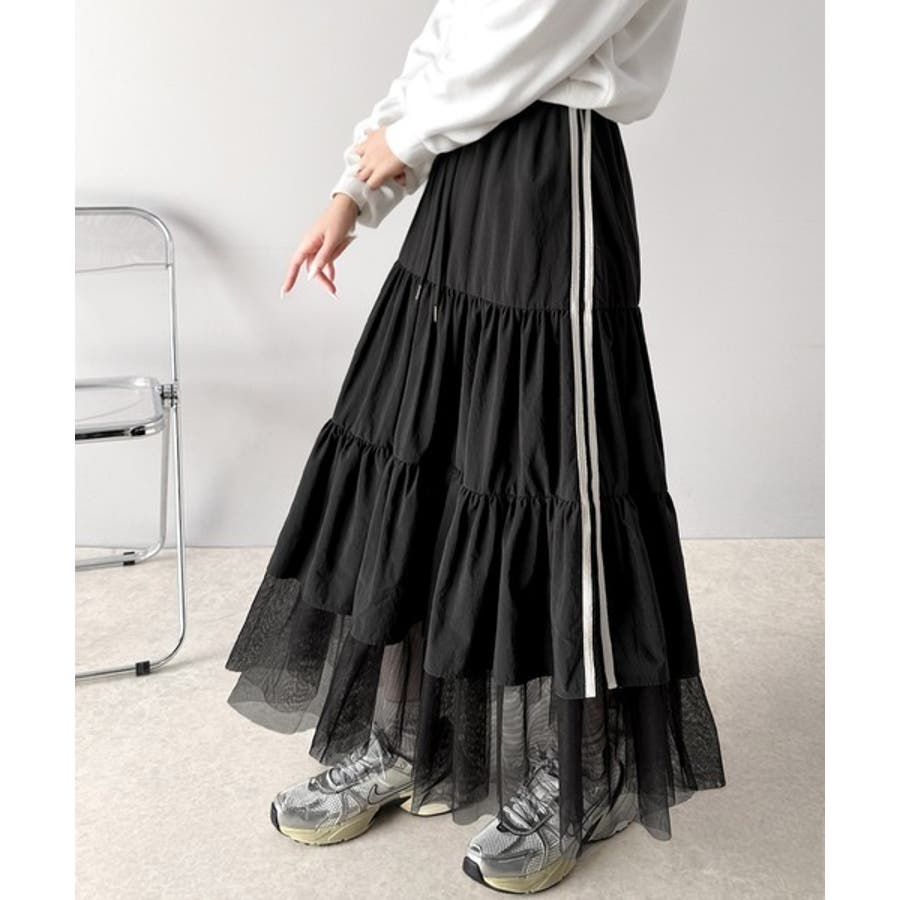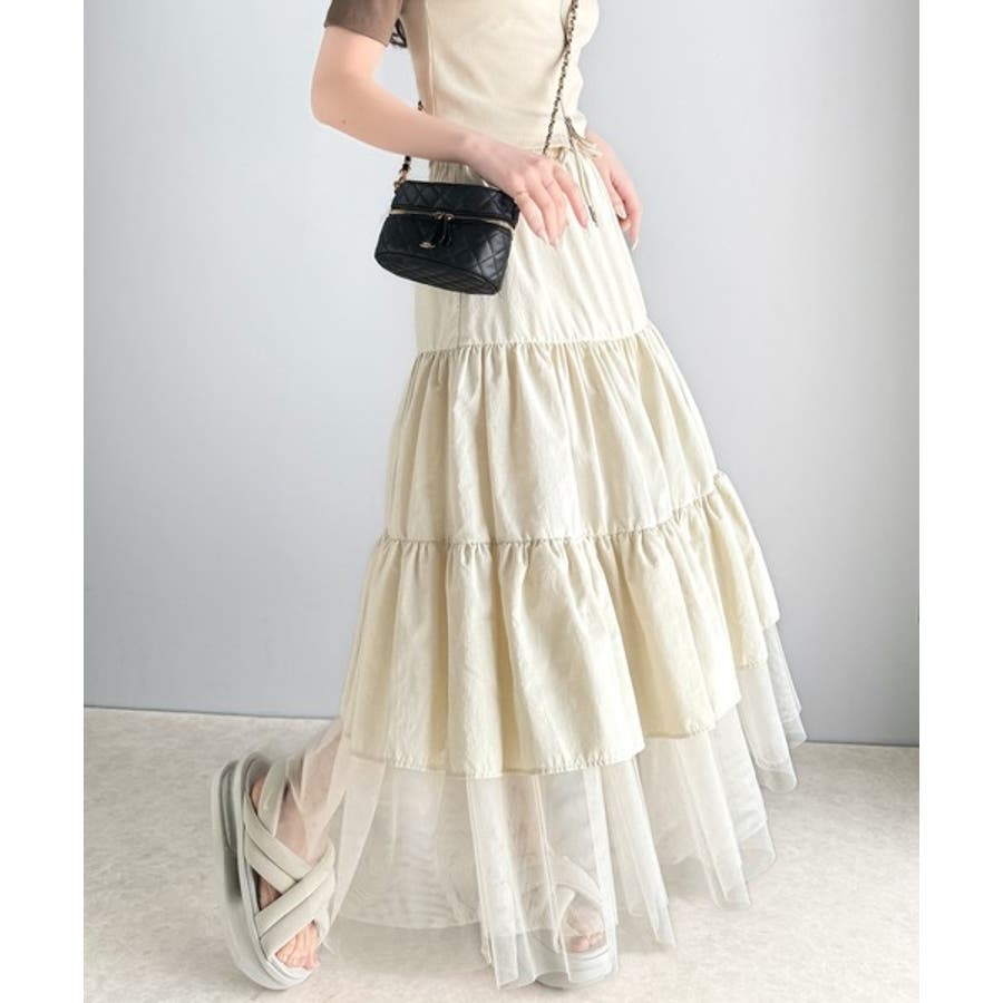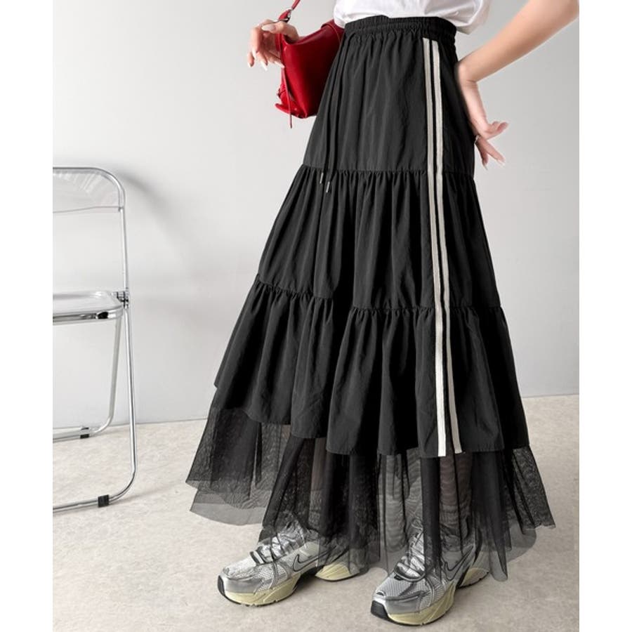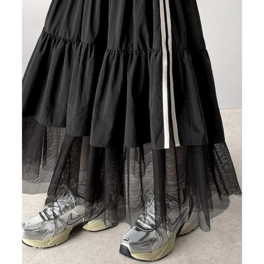 大人の愛されスカート。ナイロンチュールティアード ロングスカート (サイドライン…