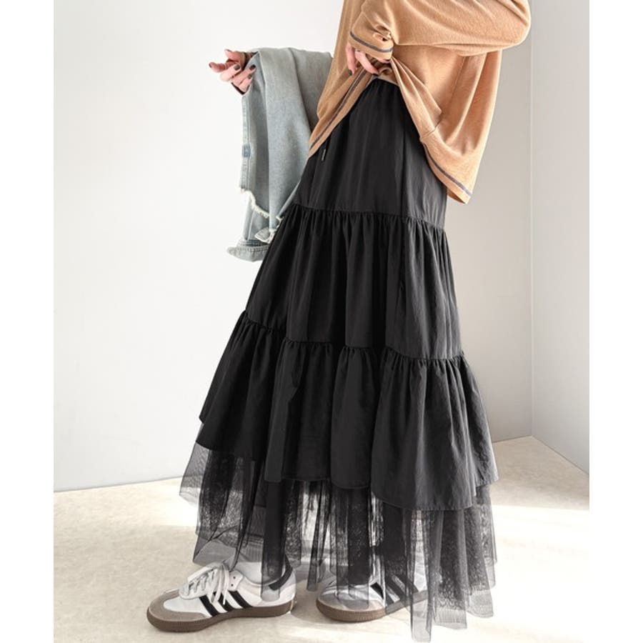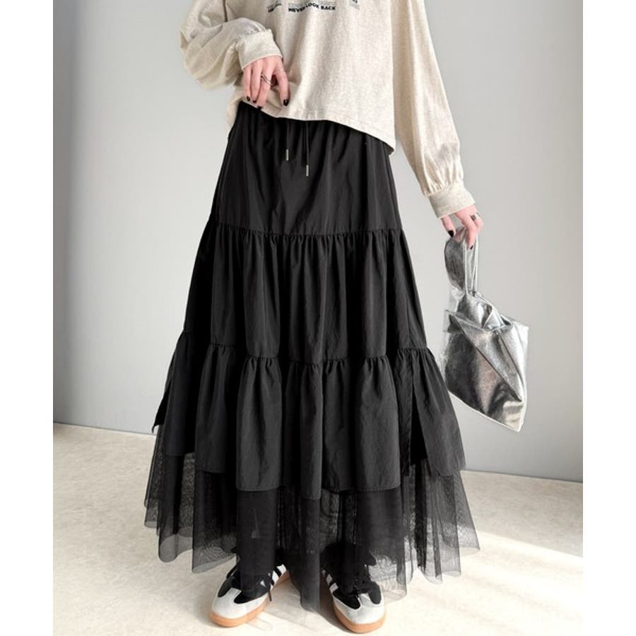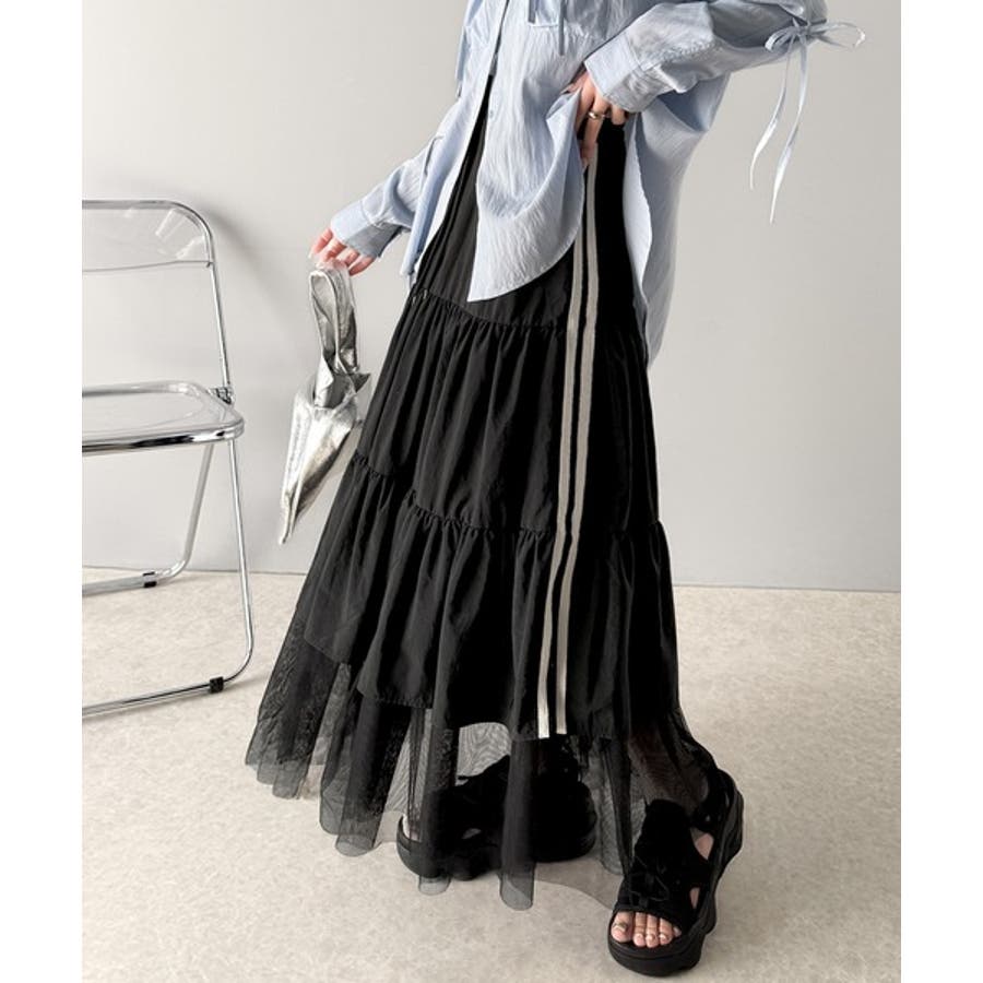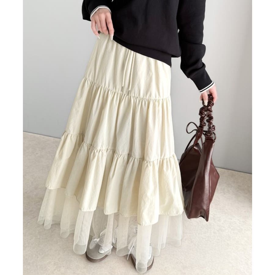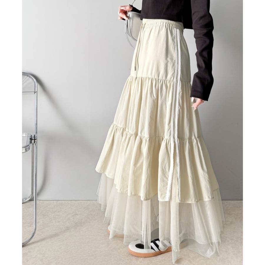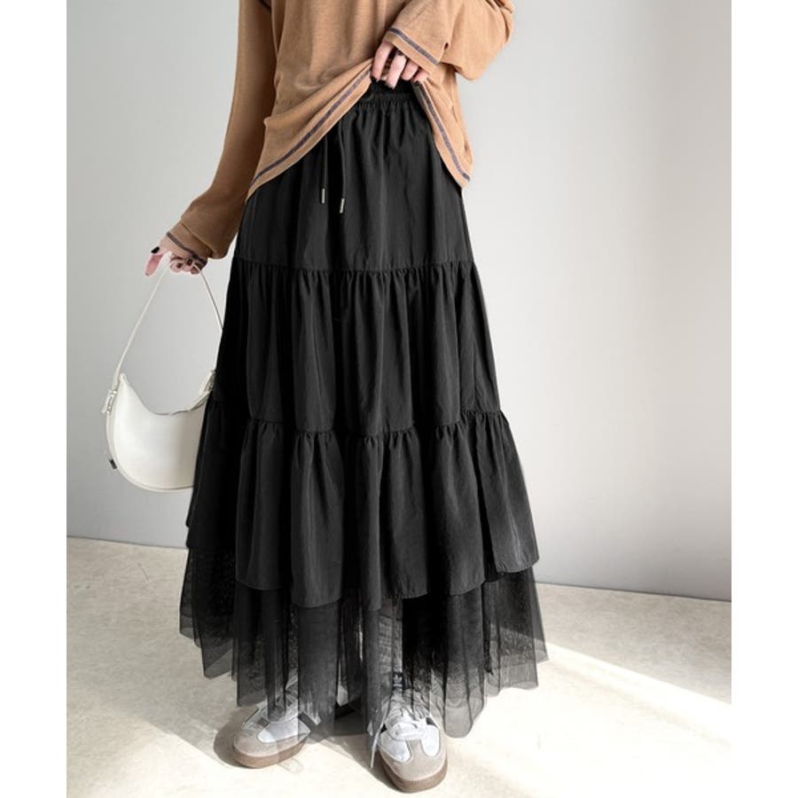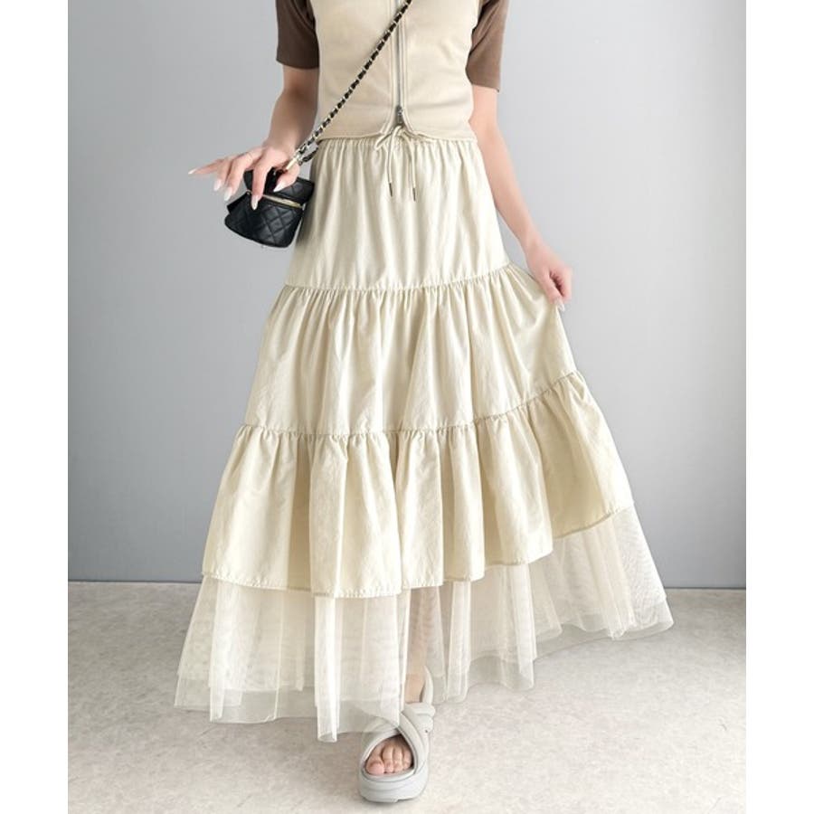 大人の愛されスカート。ナイロンチュールティアード ロングスカート (サイドライン…