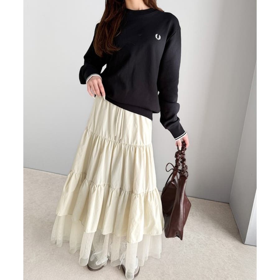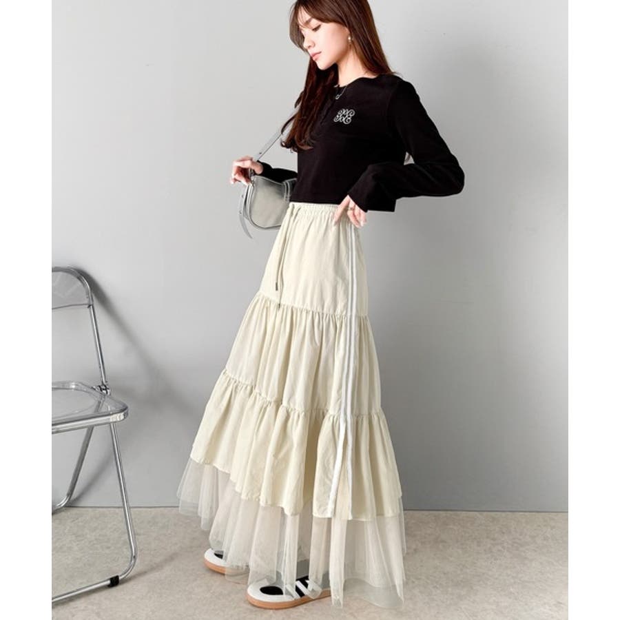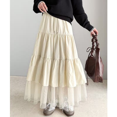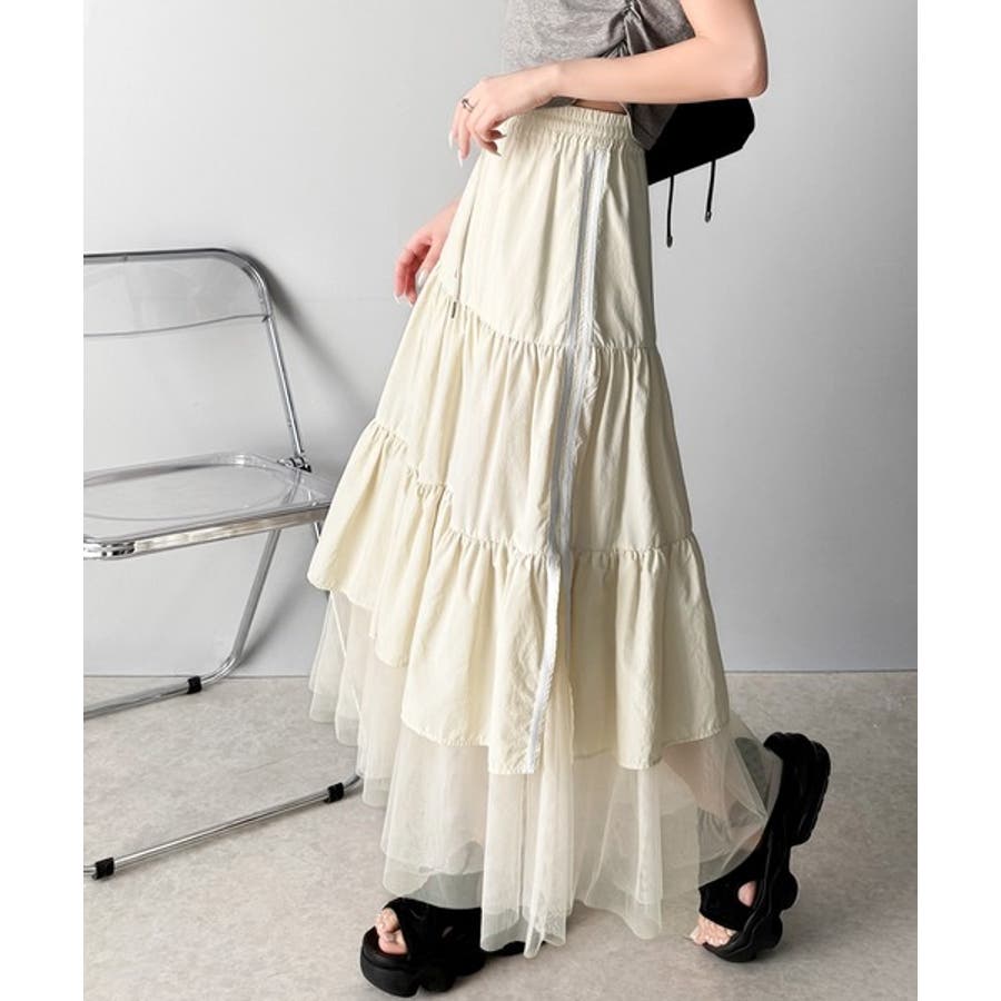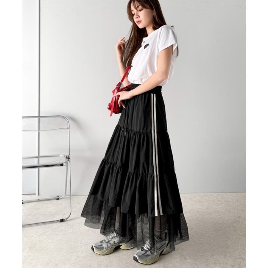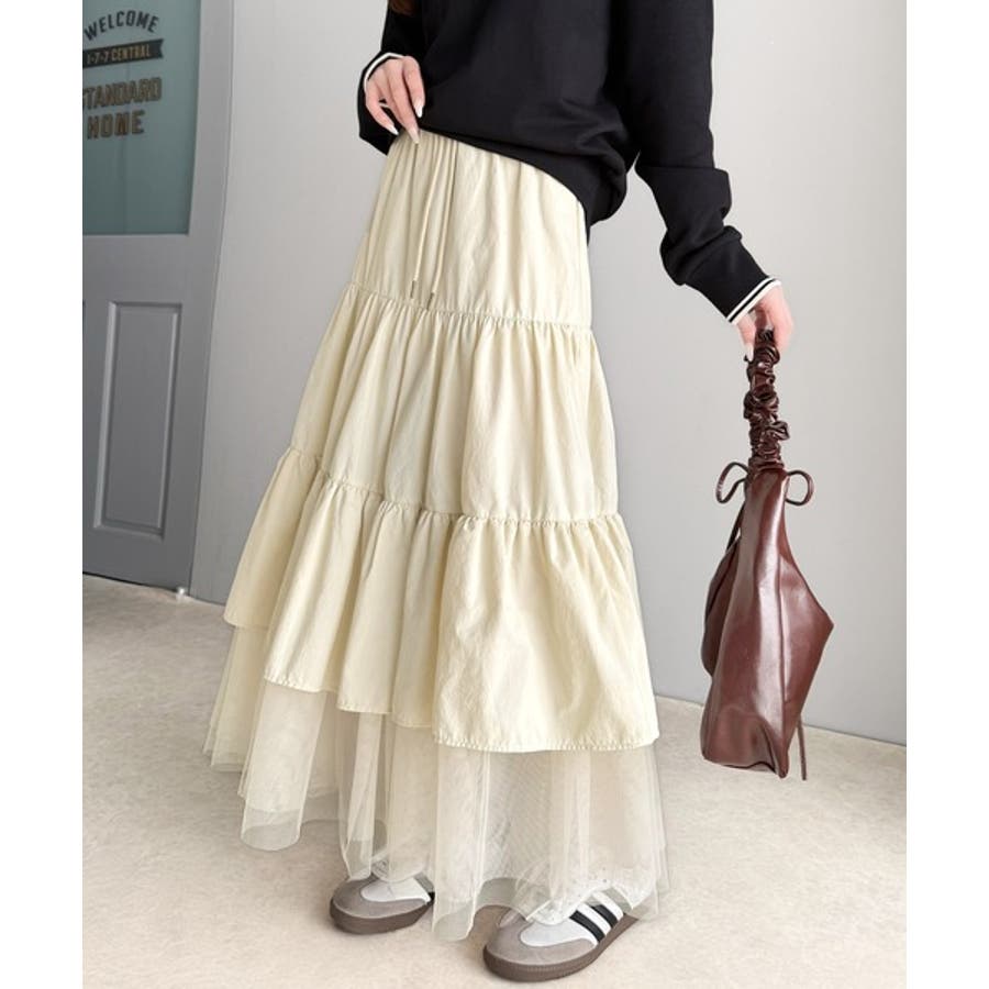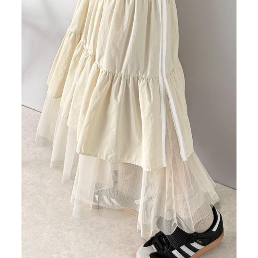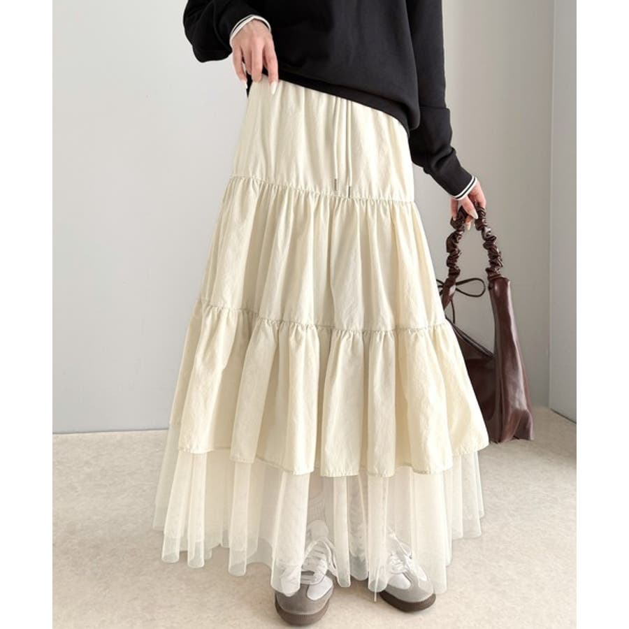 大人の愛されスカート。ナイロンチュールティアード ロングスカート (サイドライン…